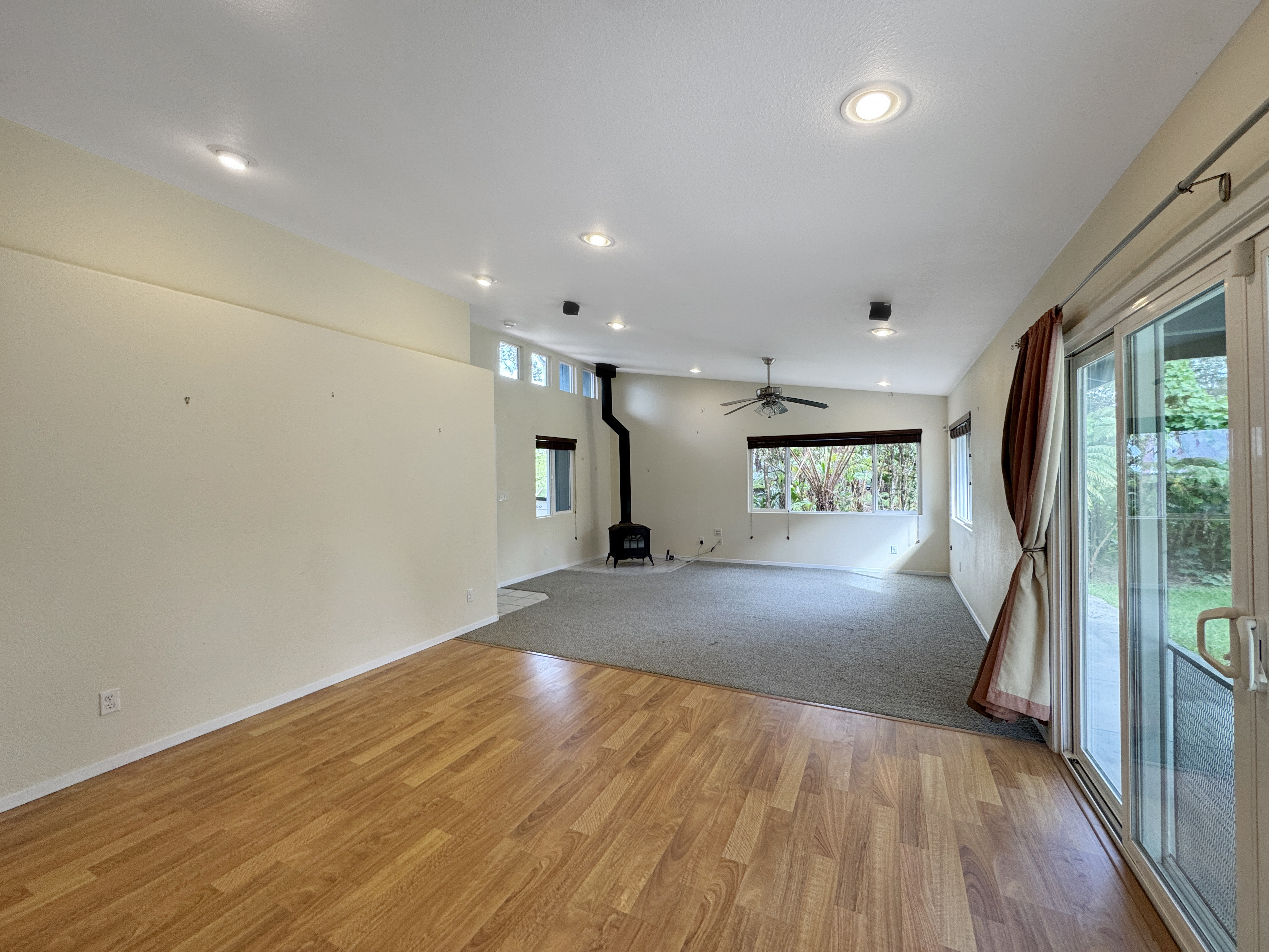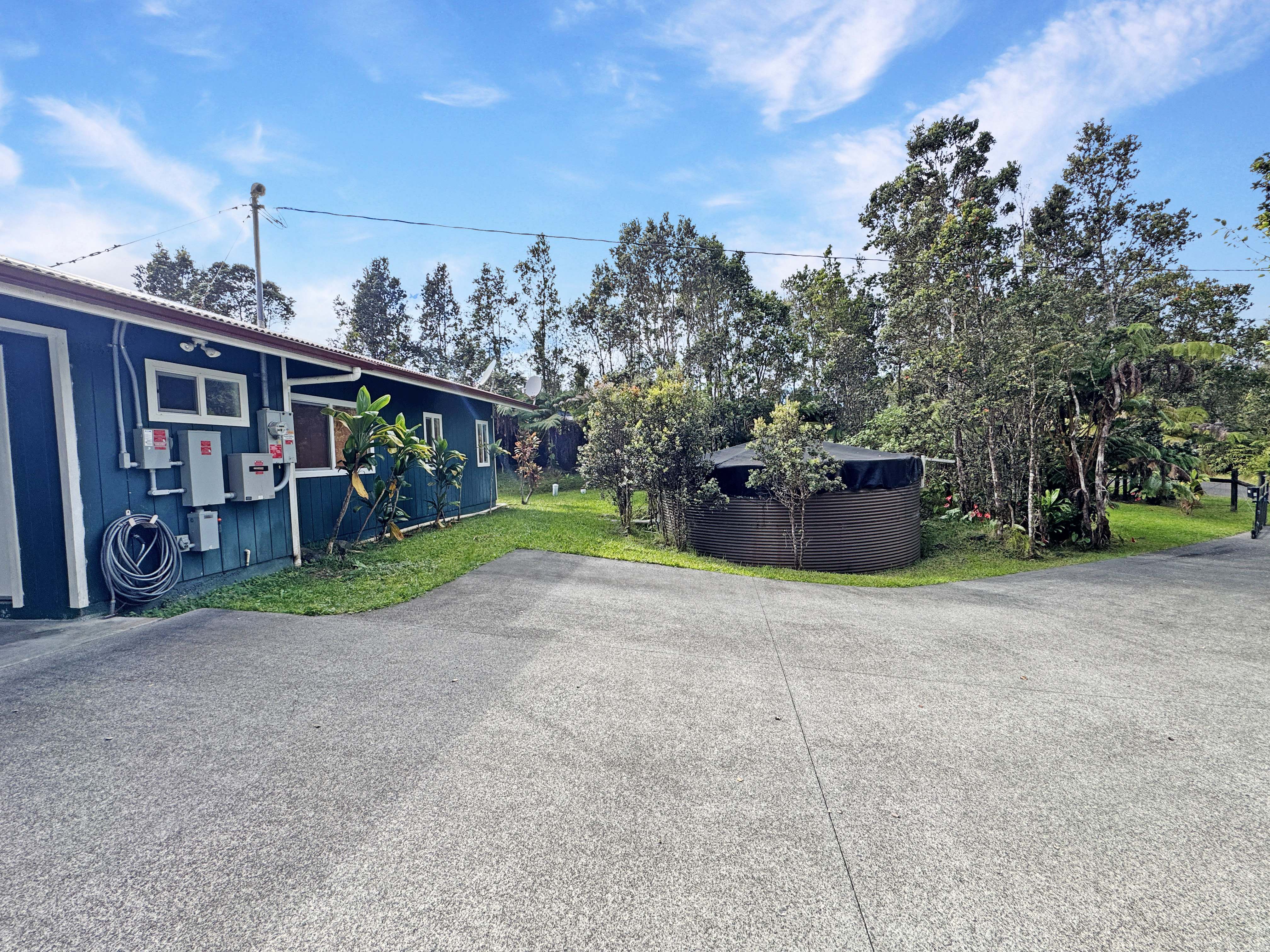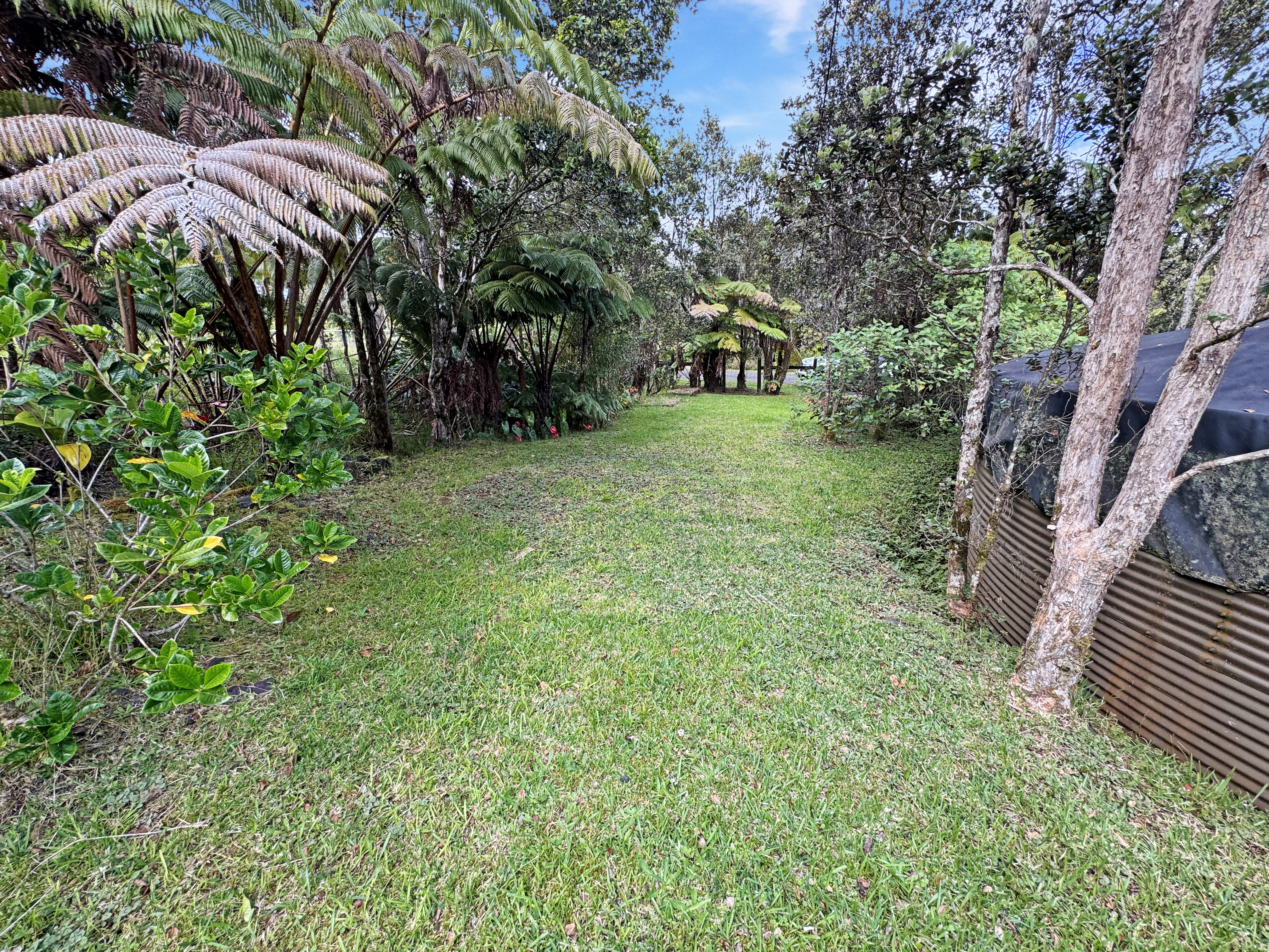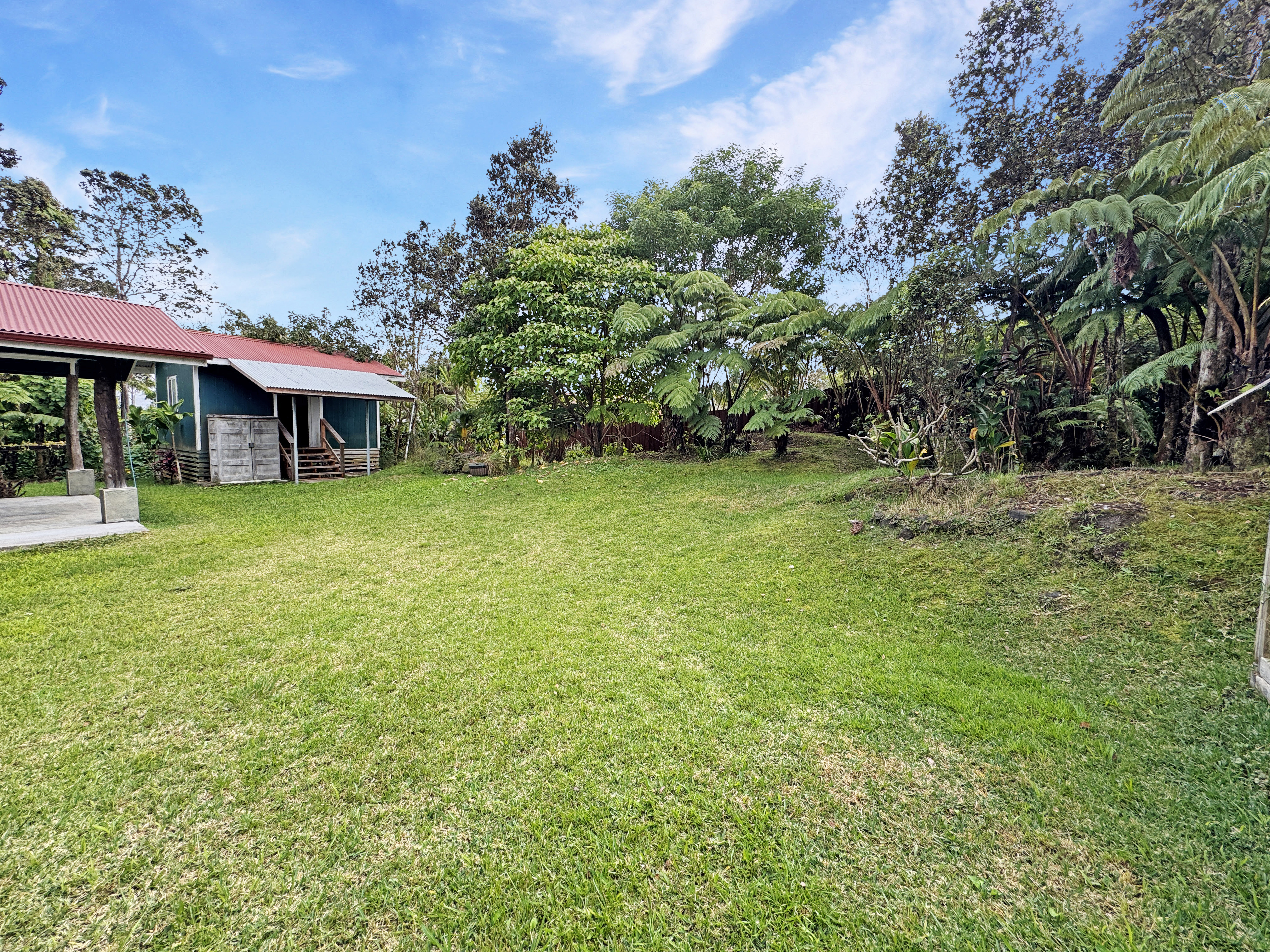 Nestled in the serene, cool rainforest of Royal Hawaiian Estates in Volcano, Hawaii, this charming custom-built 3-bedroom, 2-bathroom home offers the perfect blend of cozy comfort and modern sustainability on a spacious nearly 20,000 sq ft lot. Step inside to discover an inviting open-concept layout featuring a large living room warmed by a classic wood-burning fireplace–ideal for relaxing on misty Volcano evenings–and an expansive kitchen designed for gathering and entertaining. Rich mahogany cabinetry graces both the kitchen and bathrooms, adding warmth and elegance throughout. The generous master suite boasts a large bathroom and a spacious walk-in closet, while one of the additional bedrooms includes convenient pull-down stairs to an attic with abundant, easy-to-access storage space. Practical features include a UV water filtration system for pure, clean water, a robust 21-panel solar system to keep energy costs low in this off-grid-friendly paradise, and an installed alarm system for added peace of mind. Outside, the fully fenced property with an electric gate ensures privacy and security. The grounds are meticulously landscaped with lush native Hawaiian plants, including ?ohi?a trees, hapu'u fern, and a variety of other plants and trees. At the back, an enclosed but unfinished studio unit presents exciting potential as additional living space, a guest quarters, or a dedicated workshop. Just minutes from Hawaii Volcanoes National Park, Volcano Village amenities, and the cool, elevated climate that makes everyday living feel like a retreat–this custom home is a rare gem in one of the Big Island's most serene locations. Information herein deemed reliable but not guaranteed. Buyer and buyers agent to do their own due diligence on all pertinent facts.