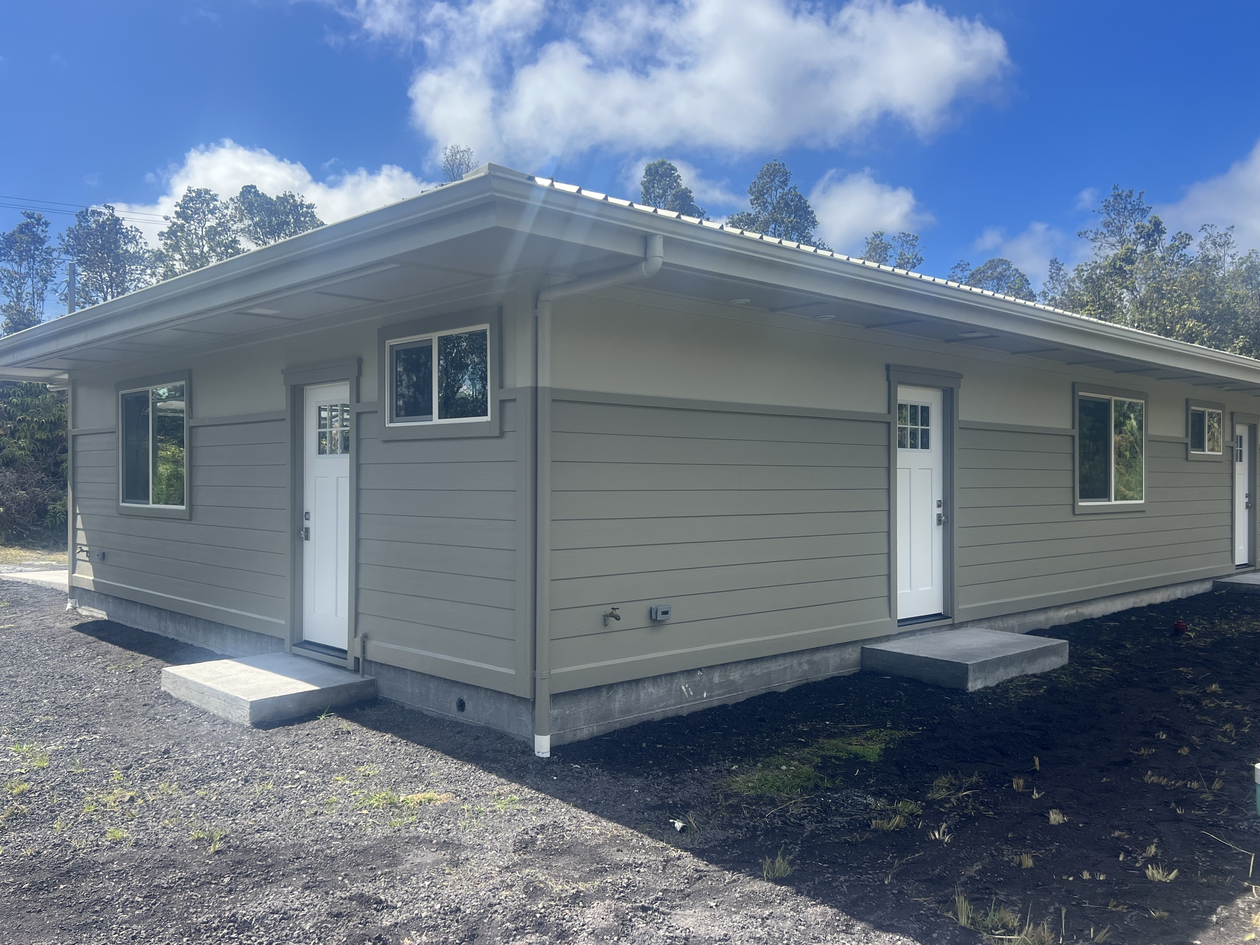 Custom built home conveniently located in a cooler climate. Just minutes from the quaint town of Volcano with dining, national park and art centers. Just off the highway with popular boar statue on property. Land has been ripped and rolled with elevated house pad and excellent drainage. Exquisitely designed home for the discerning home buyer. Water tank is on a cement slab. Exterior cement board siding and soffit. Roof is framed with cantilever attic trusses which overhangs do not block windows and create a large attic space. Interior has custom shelving throughout all of the closets. All trims are hardwood including windows. Upgraded designs in kitchen and bathrooms with quartz counter tops. Convenient attic ladder for attic space with 3/4” plywood floor for durability. LED adjustable lights throughout house. Wall mounted motor for garage door.