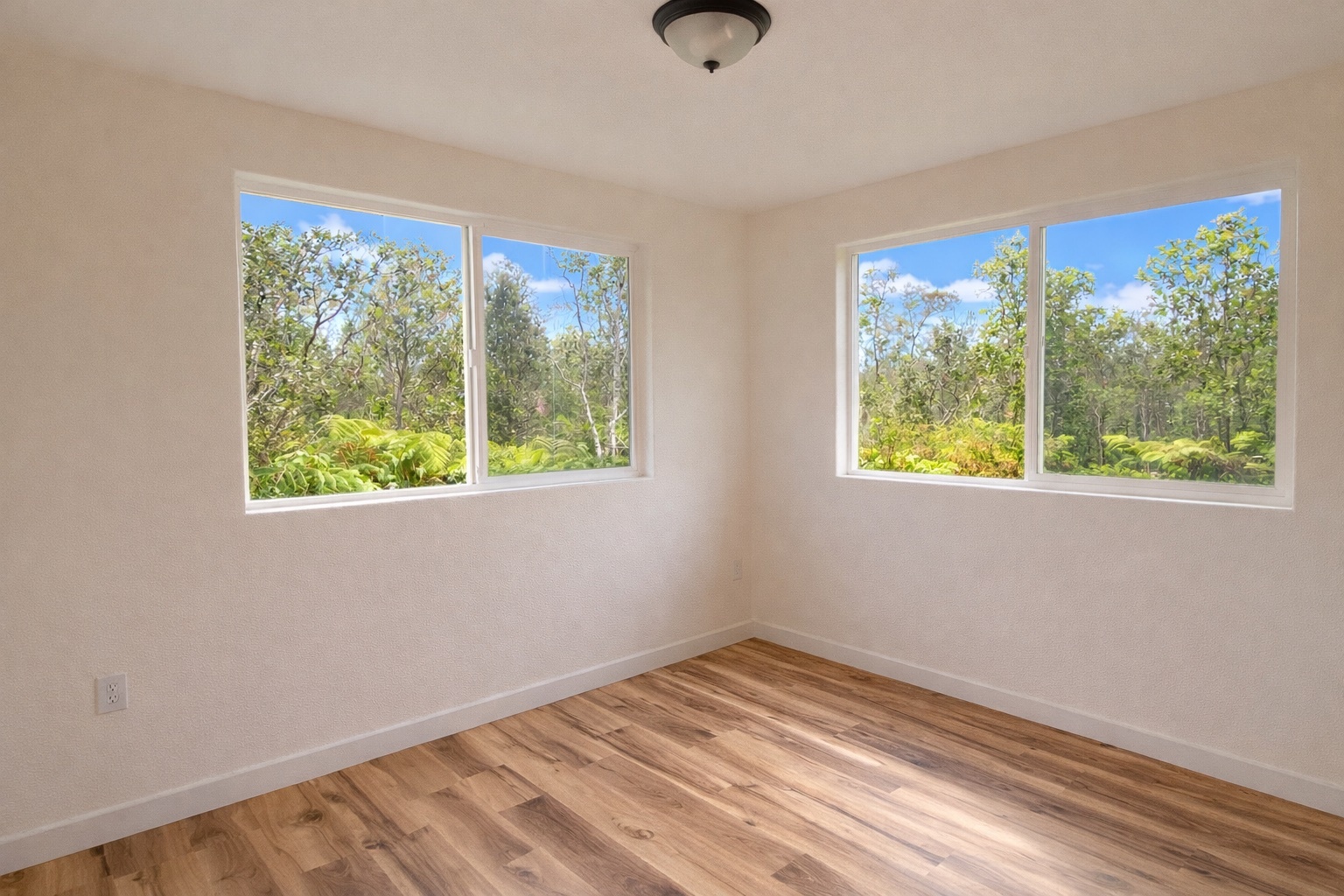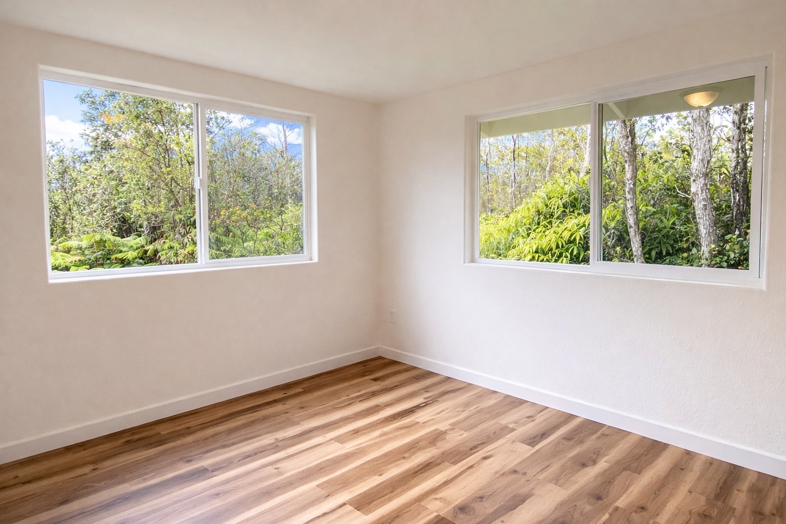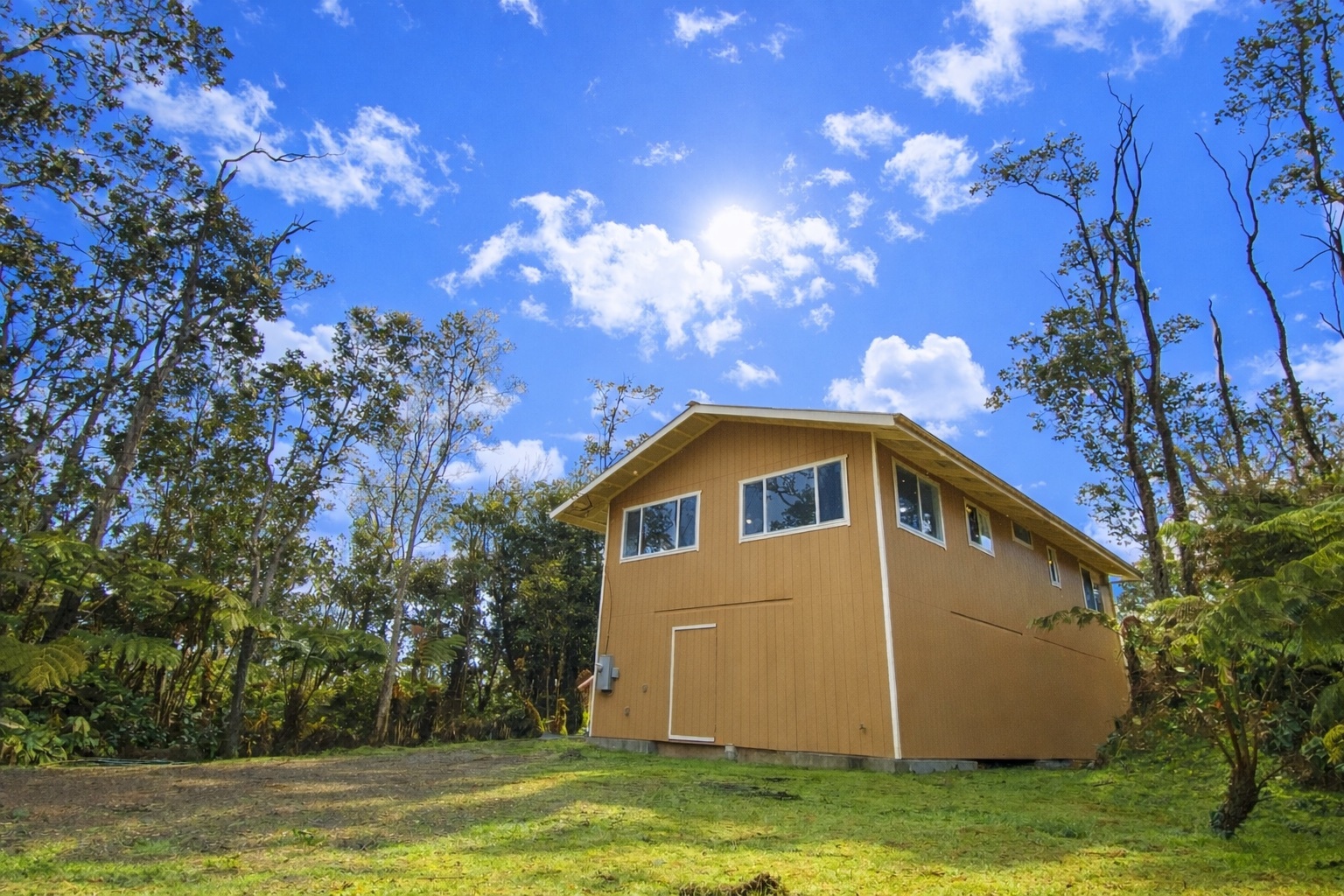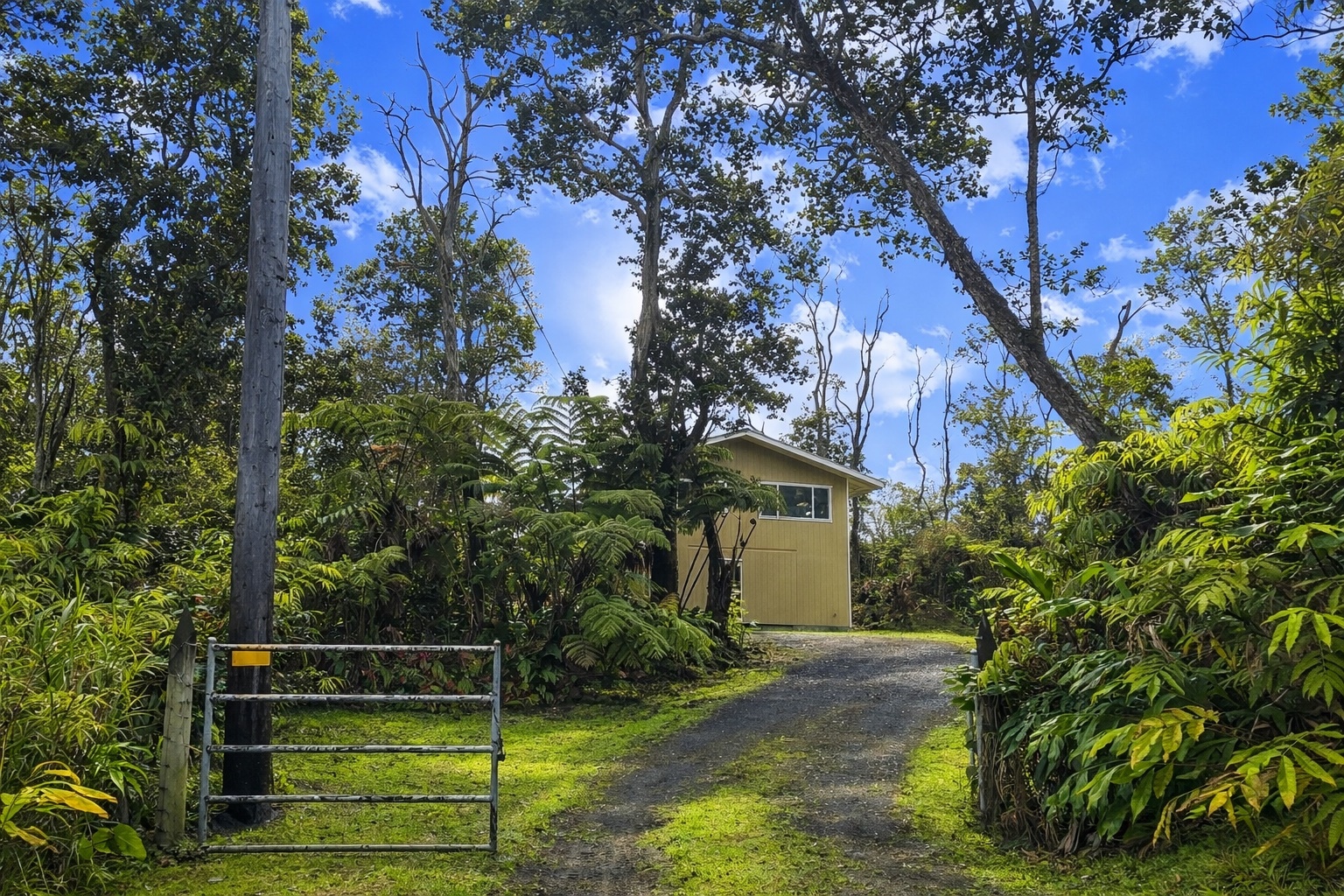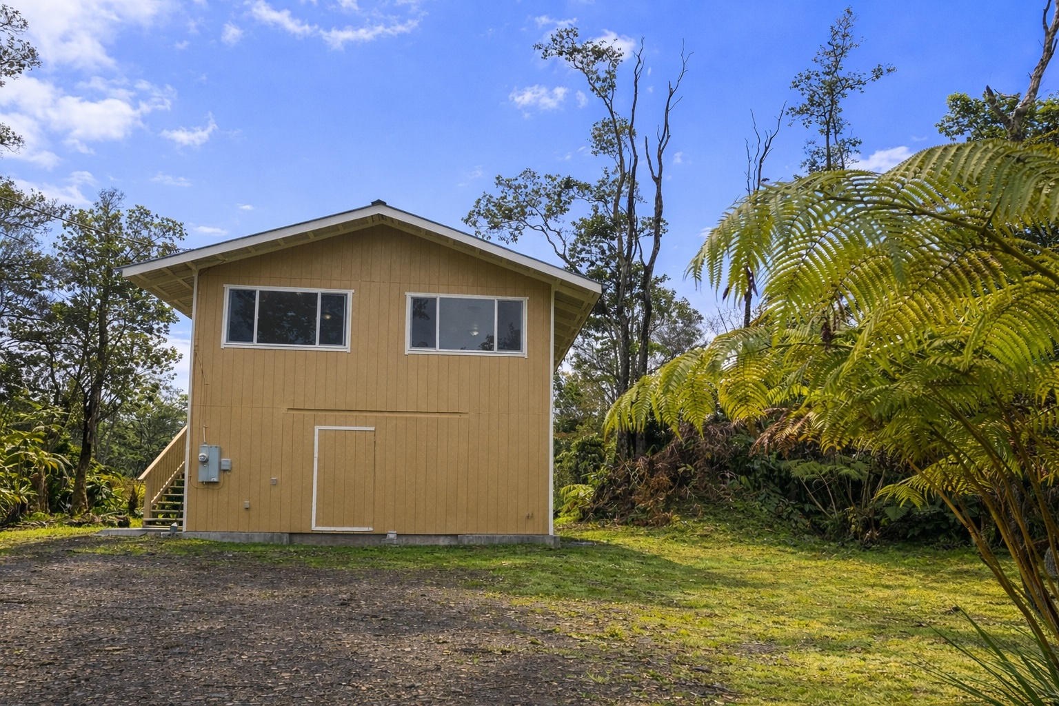 Large 2-story home priced to sell! *2,208sf under roof.* Top floor includes 3 bedrooms, 2 full bathrooms, kitchen and living area, and the ground level is currently a blank slate and could easily become any space your heart desires! *Property is fully fenced with gated driveway.* Recently renovated with fresh paint, new floors, new cabinets, new bathroom vanities, and some new tile in both bathrooms. Brand new kitchen appliances. Newer catchment tank. The home currently offers beautiful views of native Ohia forest from the top floor. The home is not currently visible from the road offering privacy. Royal Hawaiian Estates offers paved county roads, no HOA and no CC&Rs.