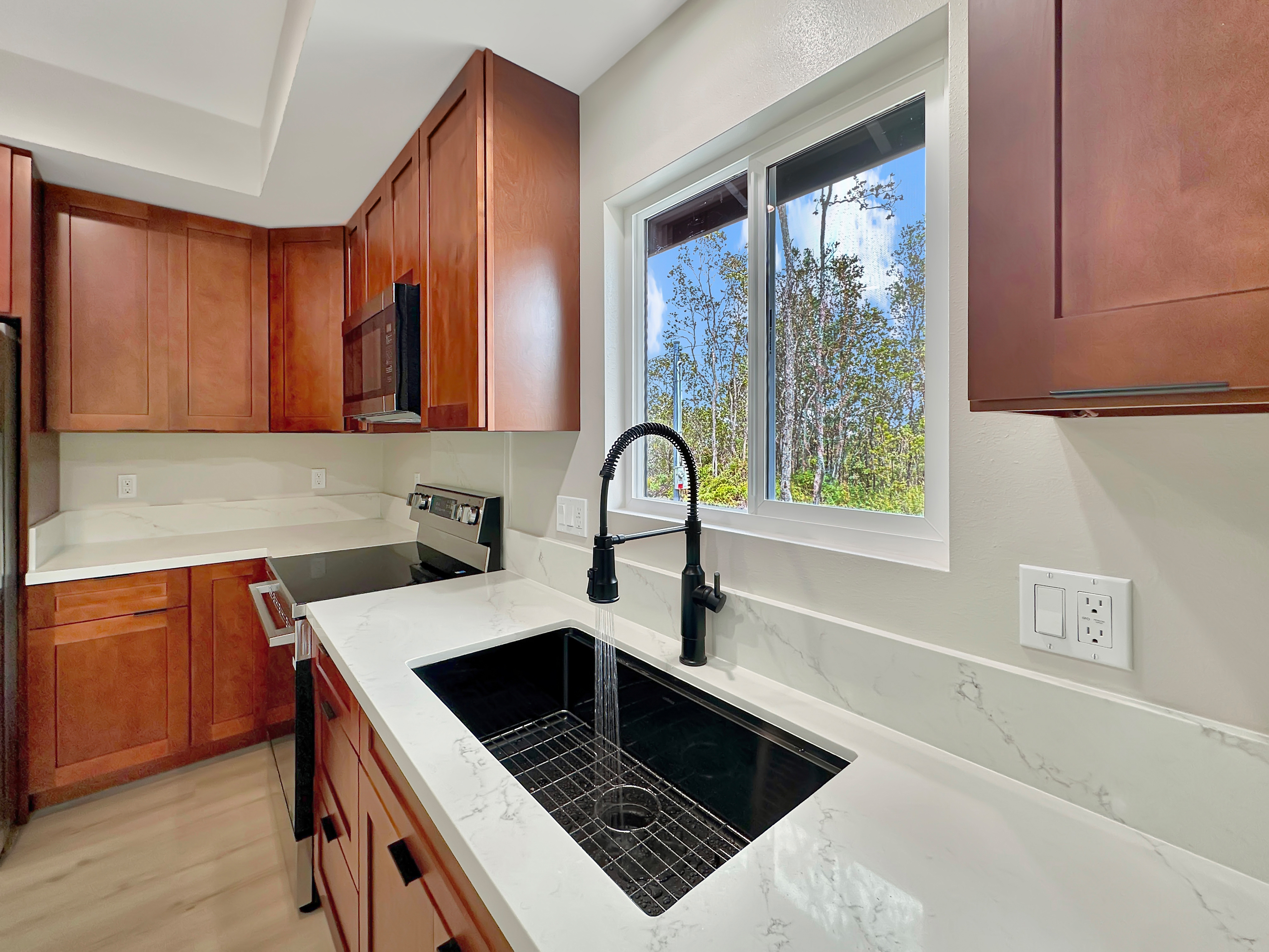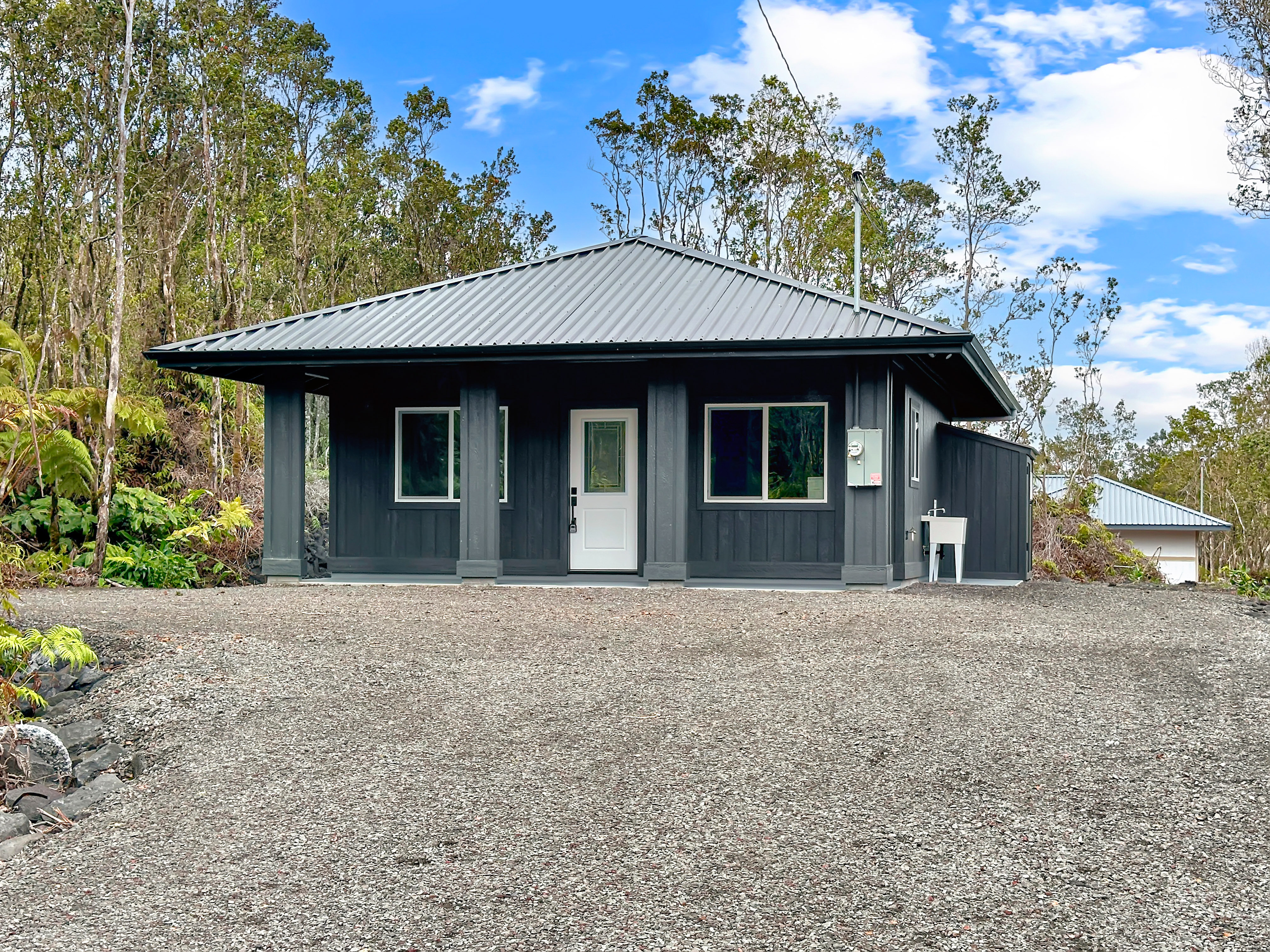 Welcome to 11-3264 Anuhea St. a thoughtfully designed 1-bedroom, 1-bath home built from the popular HPM - Pilikai model. Located in Royal Hawaiian Estates, this property offers the added benefit of county-maintained roads, making ownership even more appealing. Inside, the home features 9-foot ceilings that create an open, airy feel, along with stainless steel appliances for a clean, modern finish. Thoughtful upgrades include recessed lighting with both normal and “night mode” settings, a backlit shower niche, under-cabinet lighting, and a UV filtration system for added convenience and comfort. Surrounded by Volcano’s cool climate and natural beauty, this inviting home is ideal as a full-time residence, weekend retreat, or investment opportunity. Information herein deemed reliable but not guaranteed. Buyer and buyers agent to do their own due diligence on all pertinent facts.