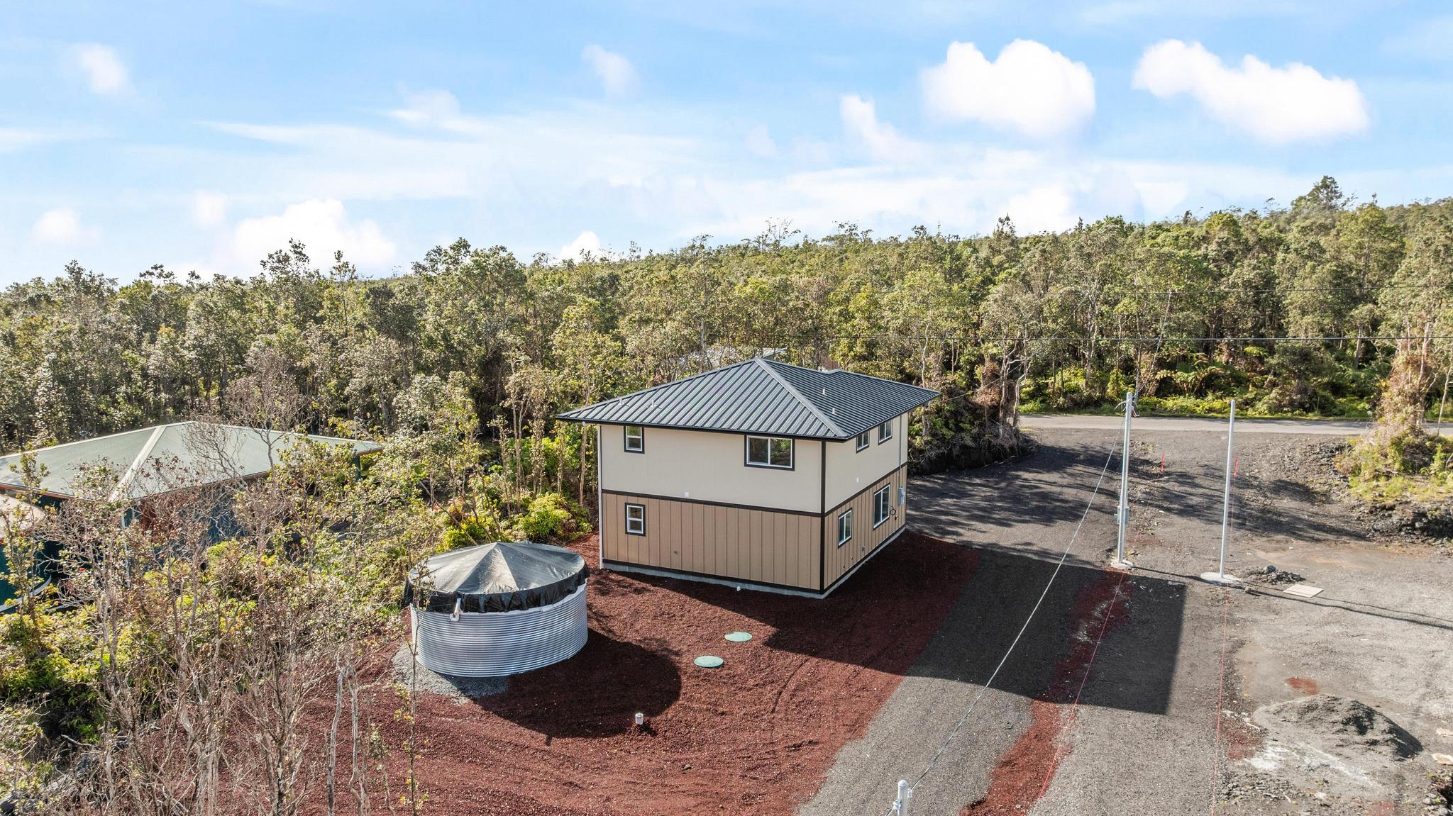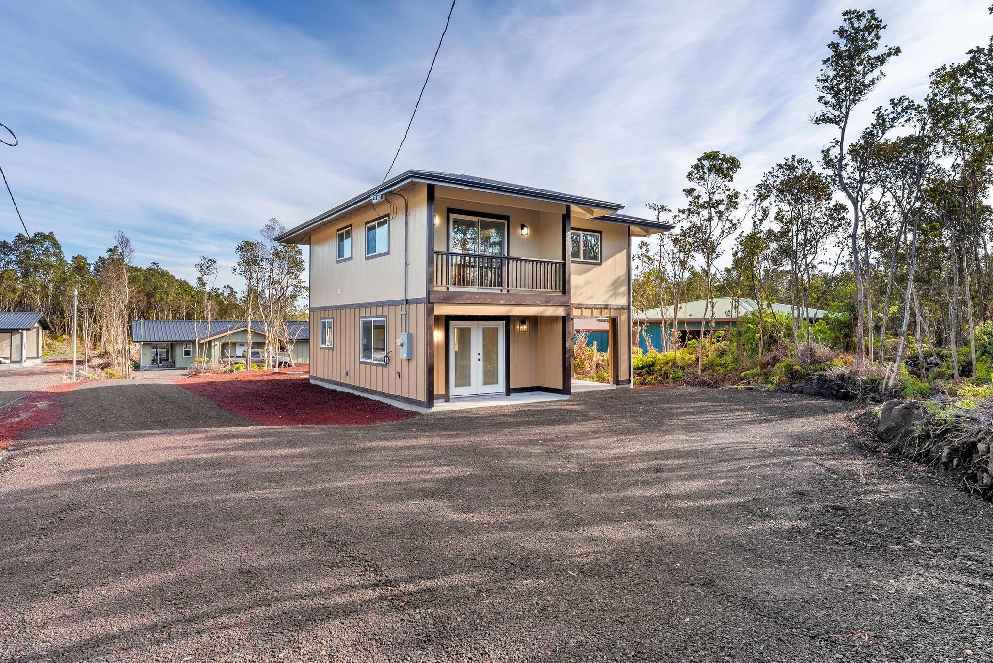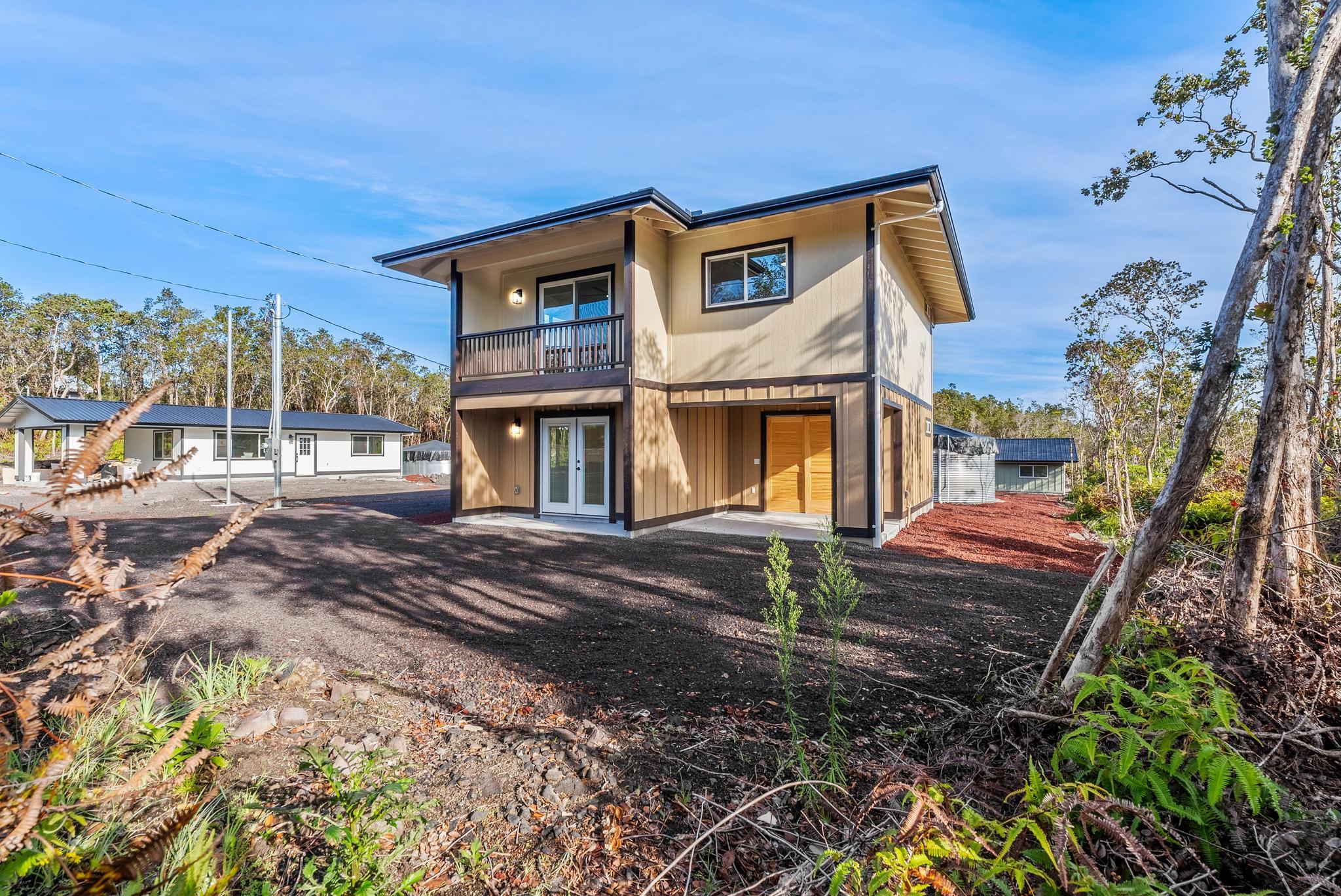 Welcome to Royal Hawaiian Estates, a rising subdivision in Volcano on the Big Island of Hawaii, known for its cool climate, lush landscape, and growing appeal for buyers seeking space and value. This brand-new 2 story Volcano home for sale is smartly designed to maximize every inch of its footprint while preserving generous outdoor space on an approximate 10,000 sq ft lot, ideal for outdoor living, gardening, pets, or future improvements. Built up rather than out, this 3 bedroom, 2 bath home offers approximately 1,200 sq ft of interior living space under roof, providing a modern, efficient layout that feels larger than its size. All three bedrooms are located upstairs, creating separation and privacy from the main living areas below. The upper-level bathroom features a spacious vanity and a walk-in shower, and the bedrooms work well for family, guests, a home office, or a creative studio. Downstairs, the open concept living, dining, and kitchen areas are bright and inviting, enhanced by natural light and Volcano’s refreshing, cooler elevation. The kitchen showcases stylish cabinetry, durable quartz countertops, and a central island that anchors the space, perfect for cooking, casual dining, and entertaining. A second full bathroom with a tub/shower combo and generous vanity adds everyday convenience, while an under stair storage nook provides extra space for pantry items, outdoor gear, or household essentials. The compact carport offers practical covered parking with potential to expand or customize in the future. With its efficient floor plan, low maintenance design, and ample yard space, this property is an excellent option for a primary residence, second home, or investment property in Volcano, Hawaii. If you’ve been searching for a Volcano home with a cooler climate, modern construction, and room to enjoy the outdoors, this Royal Hawaiian Estates listing is a must see