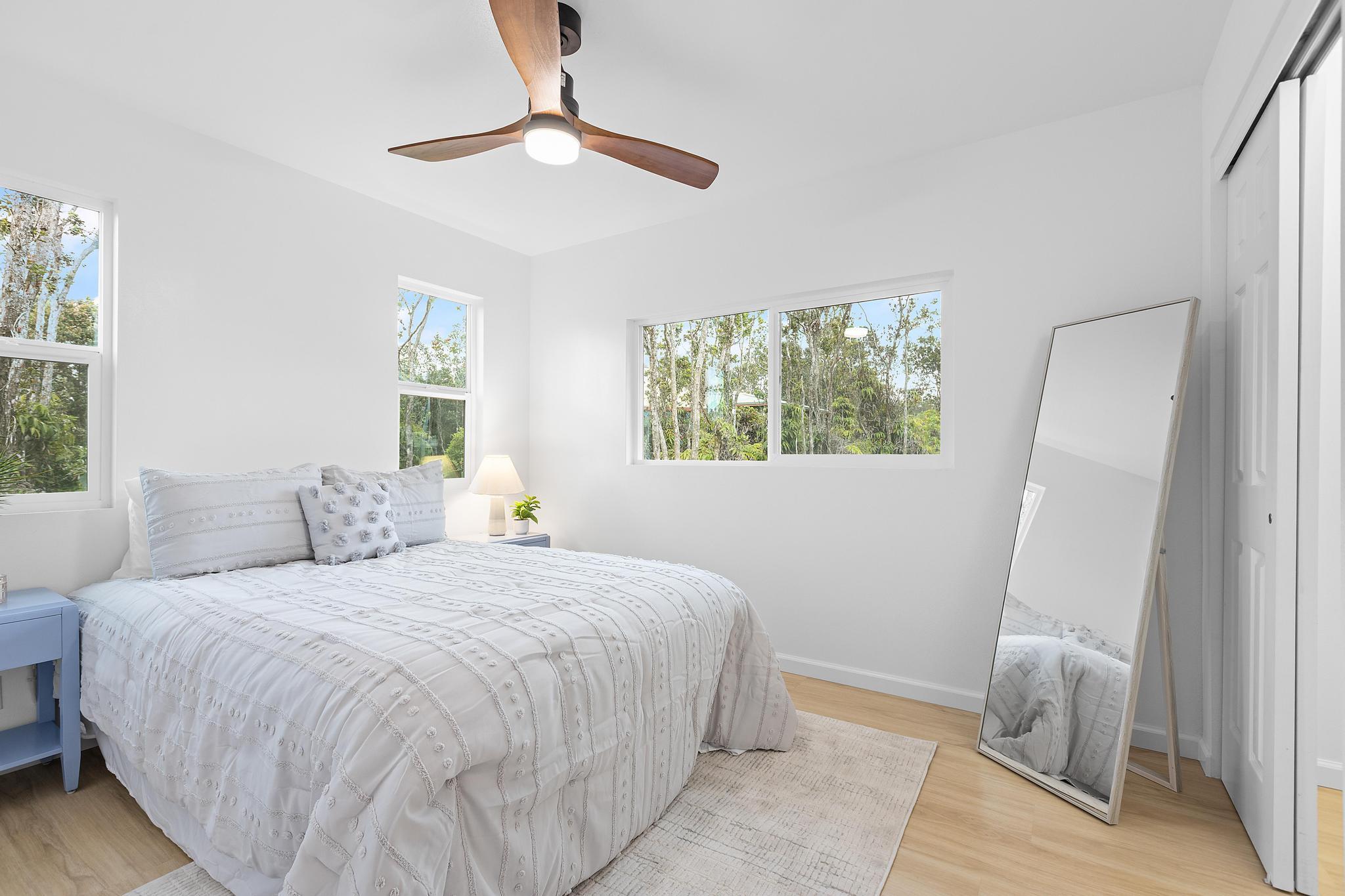 Welcome to your slice of paradise in Volcano, Hawaii! The spacious living area boasts vaulted ceilings and large windows that invite natural light into the space. The thoughtfully designed kitchen includes a central island with a sink overlooking the living space, brand-new appliances, generous cabinetry, and a pantry–ideal for both everyday living and entertaining. The primary bedroom offers your own personal retreat, with a bathroom designed for convenience and style, an open tile shower & dual sink. Two additional bedrooms offer comfort and versatility, perfect for guests, home office or hobbies. Outside, create your own vision for the back & front yard. Located in Volcano, you're less than 5 miles away from the world-renowned Hawaii Volcanoes National Park, offering endless opportunities for exploration and adventure. Current real property tax is for land only, house not yet assessed for taxes.