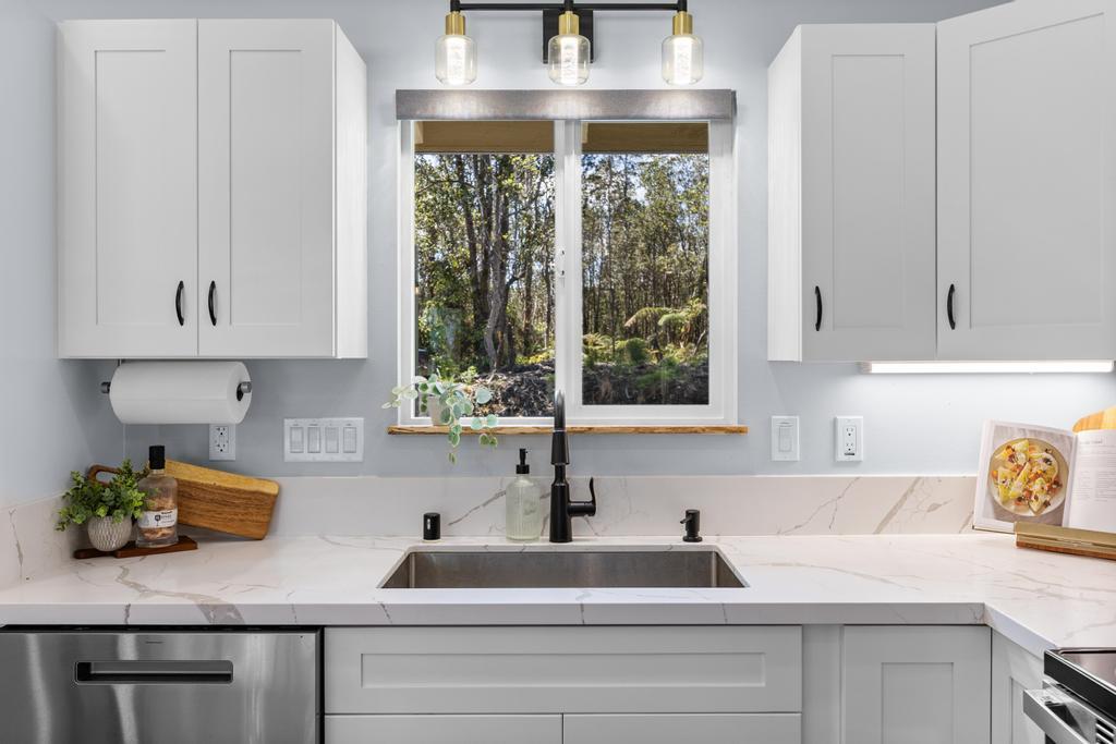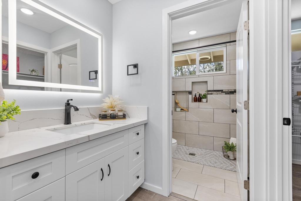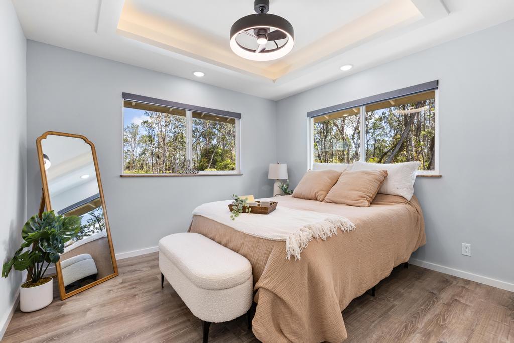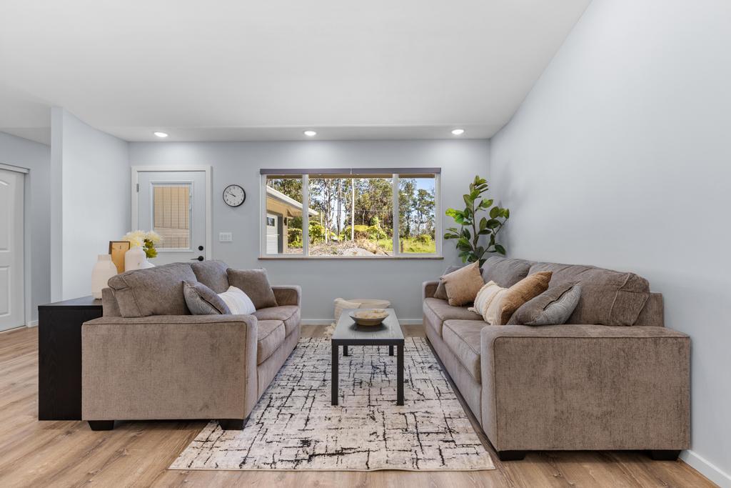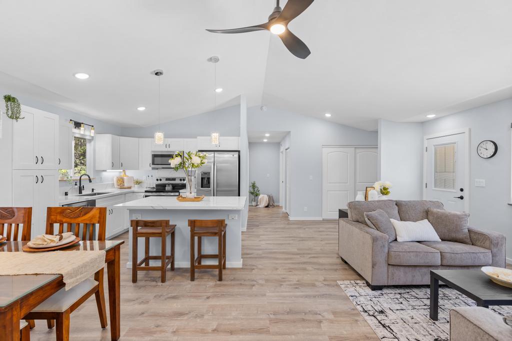 ***Seller is offering a $10,000 Concession towards the buyers closing costs*** This thoughtfully designed custom home combines quality craftsmanship with everyday comfort, situated on a generous 15,625 sq ft lot offering both space and flexibility. Unlike many properties in Royal Hawaiian Estates, this is not a shared flag lot and is ideally positioned on a quiet dead-end street for added privacy and minimal traffic. Inside, vaulted tray ceilings paired with soft recessed lighting create a bright, open feel. The home features a desirable split floor plan, with the primary suite privately located on one end, complete with a spacious en-suite bathroom and walk-in closet. The kitchen is appointed with granite countertops, quality cabinetry, and a functional layout suited for both everyday living and entertaining. Additional interior upgrades include mango wood window accents, upgraded blinds, and ample closet space throughout. Both bathrooms are enhanced with modern smart mirrors featuring defog and nightlight functions, along with a heated towel rack for added comfort. Sliding tinted glass doors lead to a spacious outdoor area, complemented by a concrete driveway and wraparound sidewalks for seamless access. The covered patio features a durable aluminum roof and a low-maintenance artificial turf area, ideal for relaxing or hosting. Additional highlights include a newly installed washer and dryer and an oversized 18-foot garage door, offering added convenience and flexible storage options. Click on the video icon or copy and paste to watch a walk through https://show.tours/v/CJsSbxk