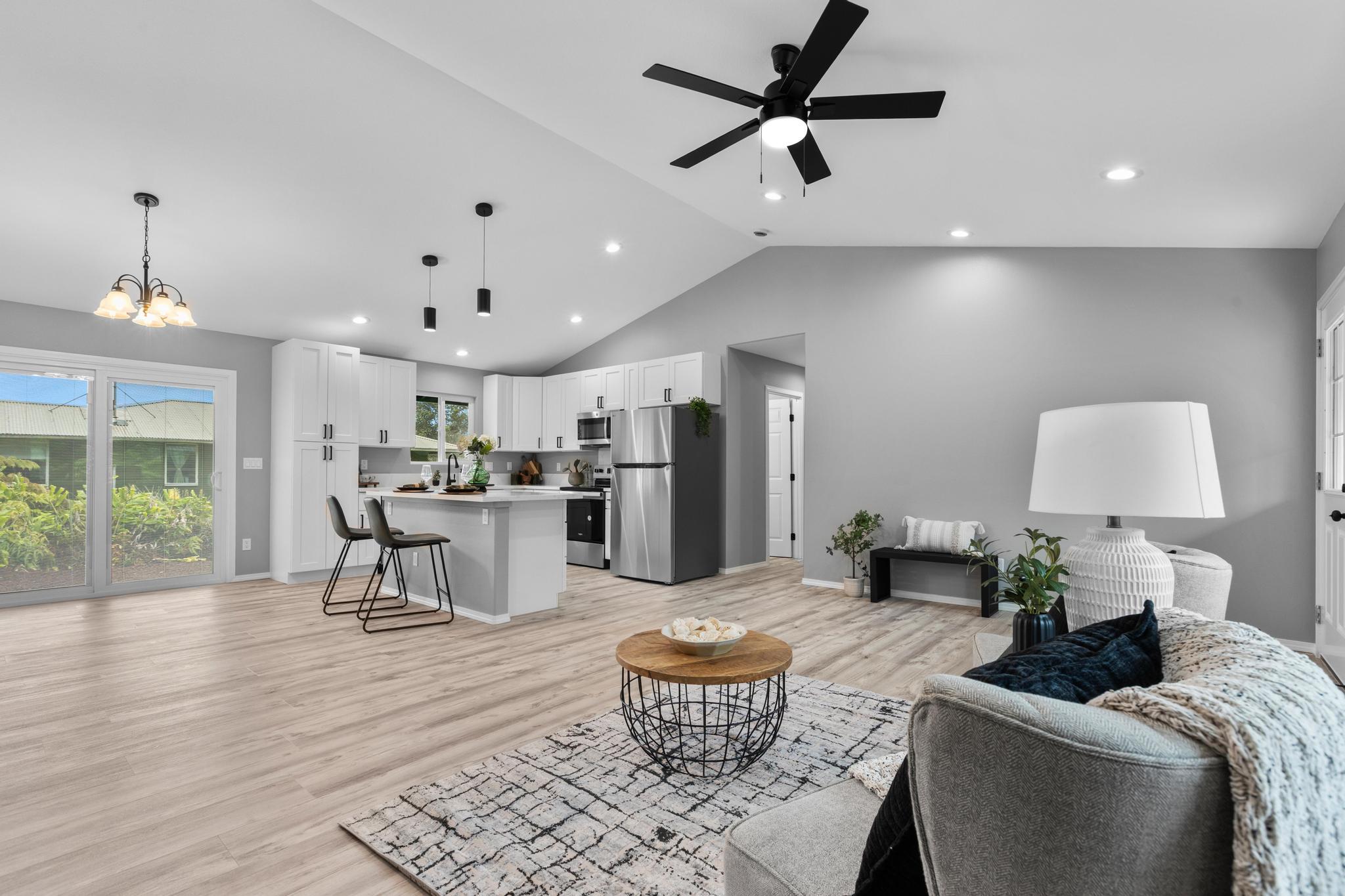 Welcome to this newly built 3-bedroom, 3-bath home offering modern comfort and thoughtful design in the serene Royal Hawaiian Estates subdivision. Located just minutes from Volcano National Park and Volcano Village, this property provides a peaceful retreat with cool climate living and no HOA or road maintenance fees.