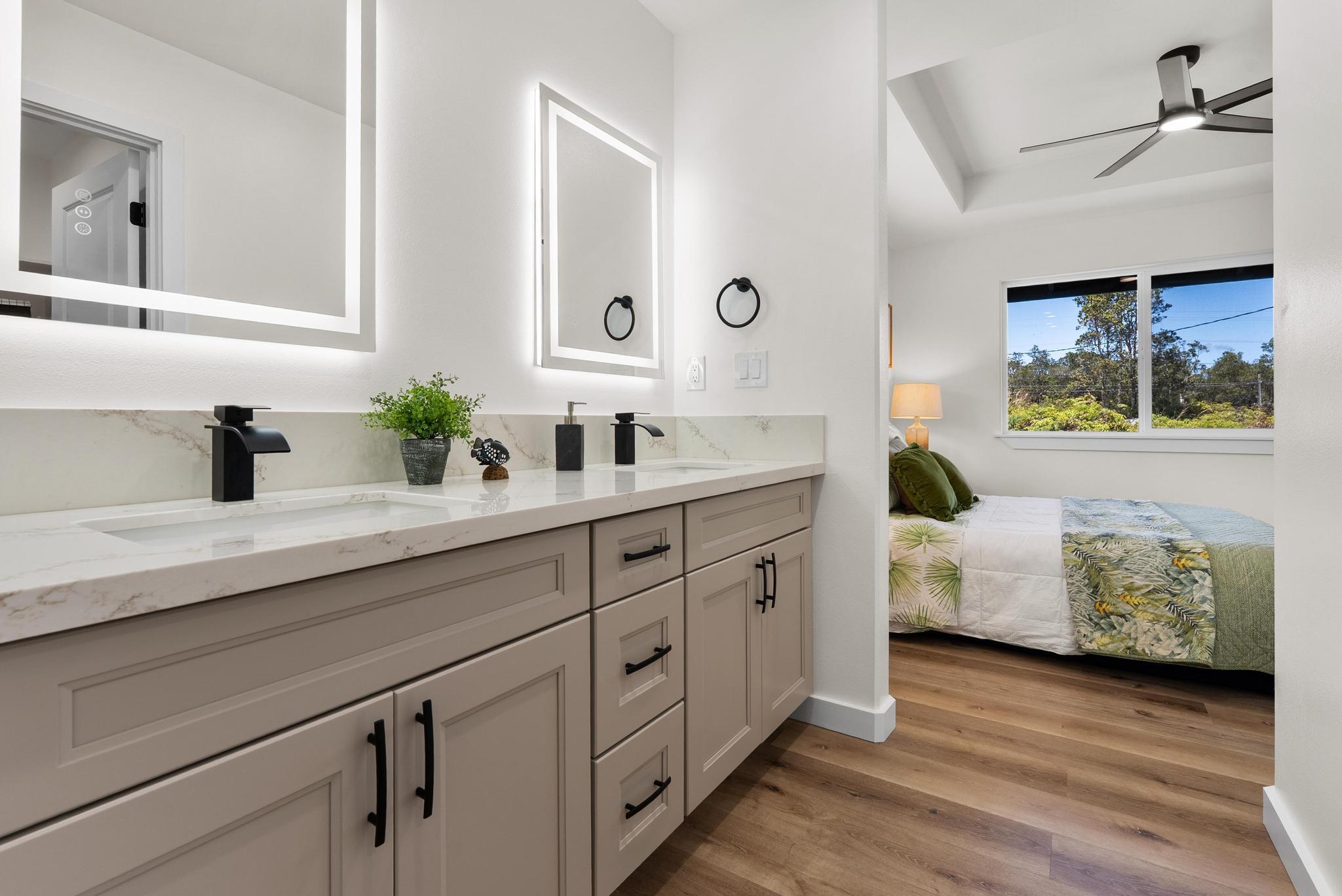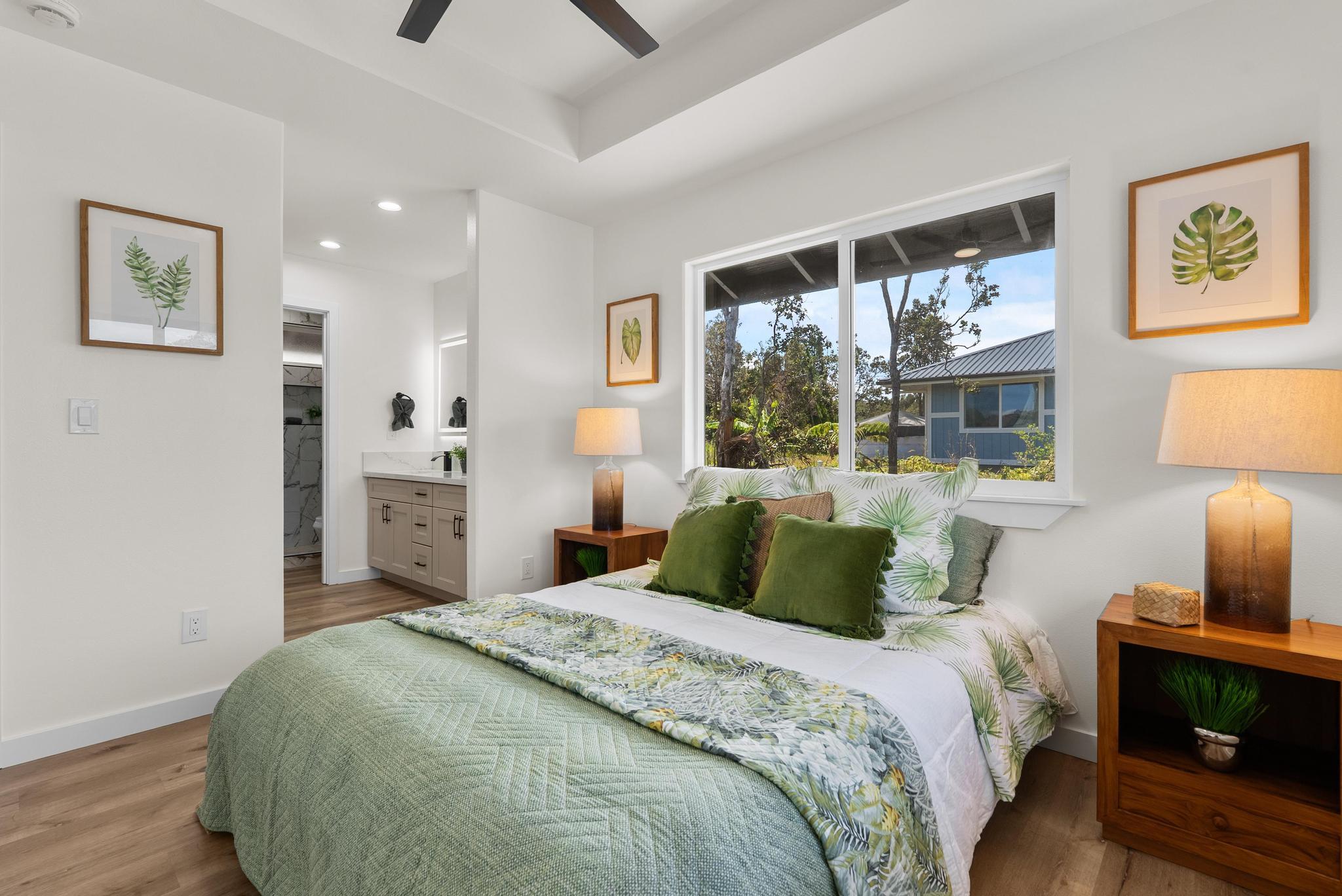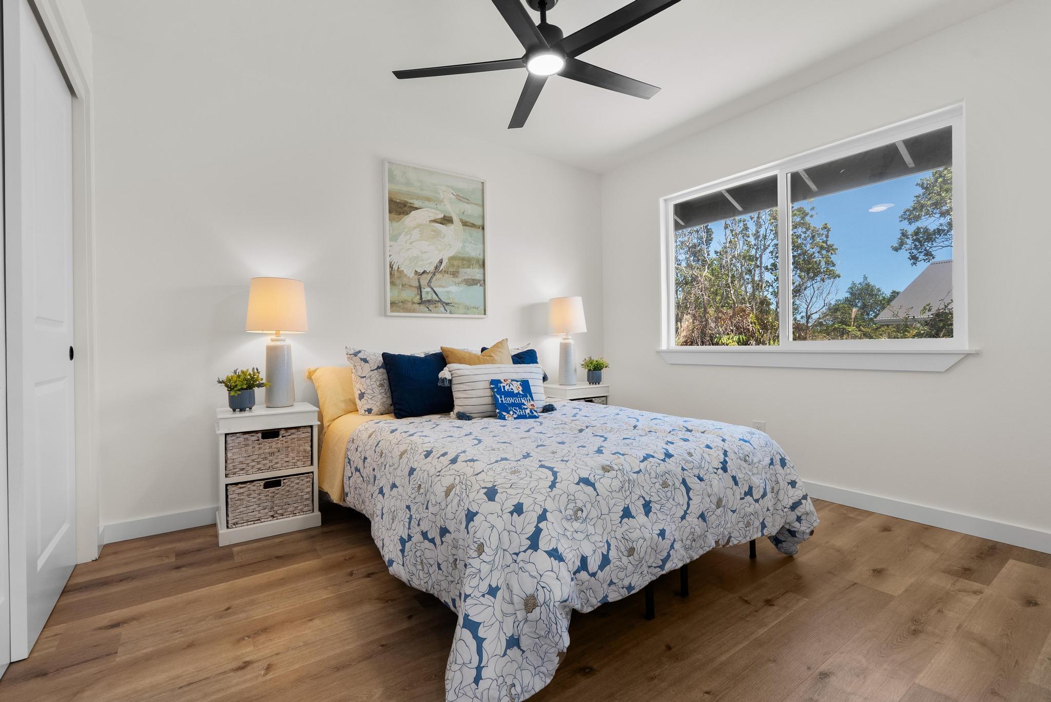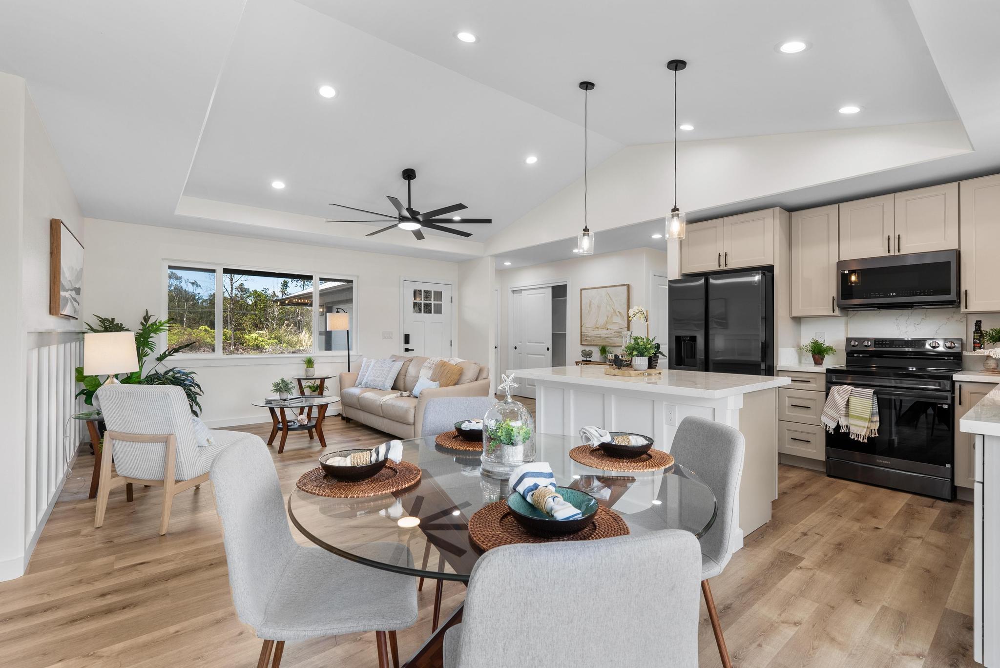 Tucked within the peaceful Royal Hawaiian Estates subdivision, this Volcano home combines comfort, privacy, and the kind of quality that stands out. Set on a generous 24,459 sq ft lot, the property sits privately at the back of a flag lot with a newly paved full-length asphalt driveway stretching from the road all the way to an enclosed 2 car garage a truly unique feature in this neighborhood. Step inside and you’ll find a warm, inviting layout designed for easy living. The split floor plan provides space and privacy, while the primary suite offers a large walk-in closet and spacious bathroom. Raised ceilings open the bedrooms, adding light and airiness to match Volcanos cool, peaceful setting. Located in desirable Lava Zone 3, this home offers peace of mind while keeping you close to the heart of Volcano Village. Just minutes away are local favorites like Kilauea Lodge, Thai Thai Bistro & Bar, and other local eateries, plus the convenience of True Value General Store for everyday essentials. Close to the main road yet tucked just far enough for privacy, this home perfectly blends upcountry charm with modern comfort topped off by a driveway that truly makes a statement.