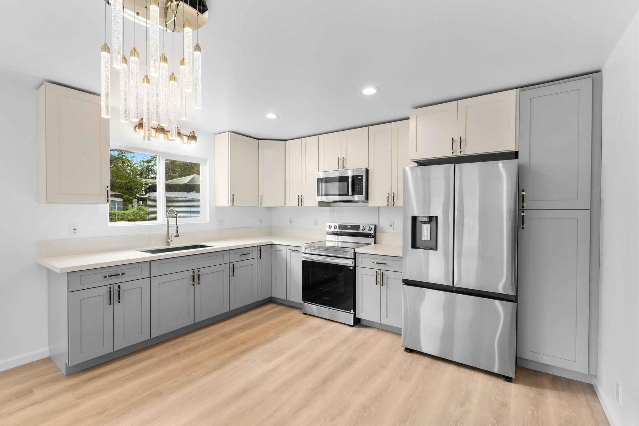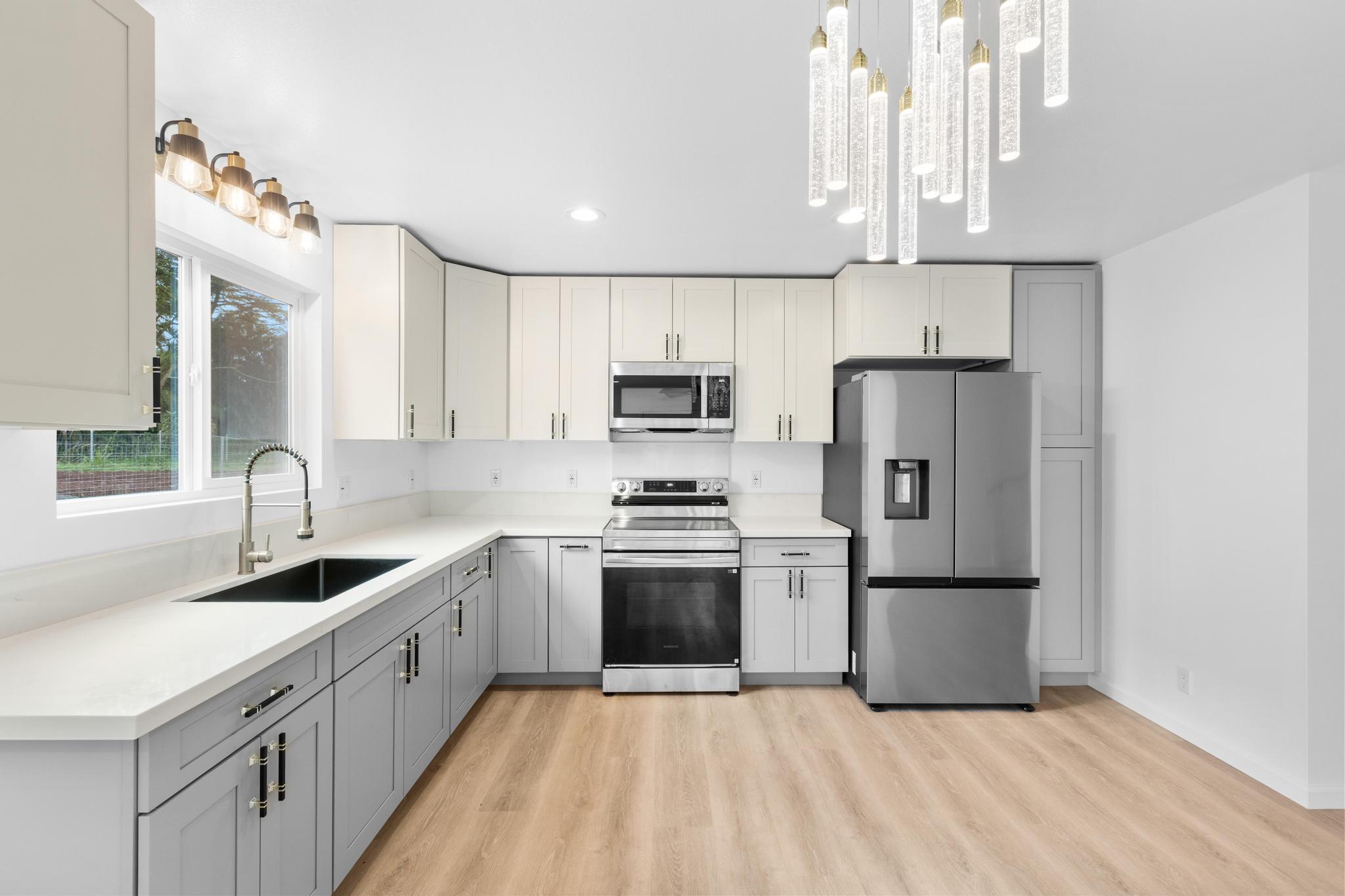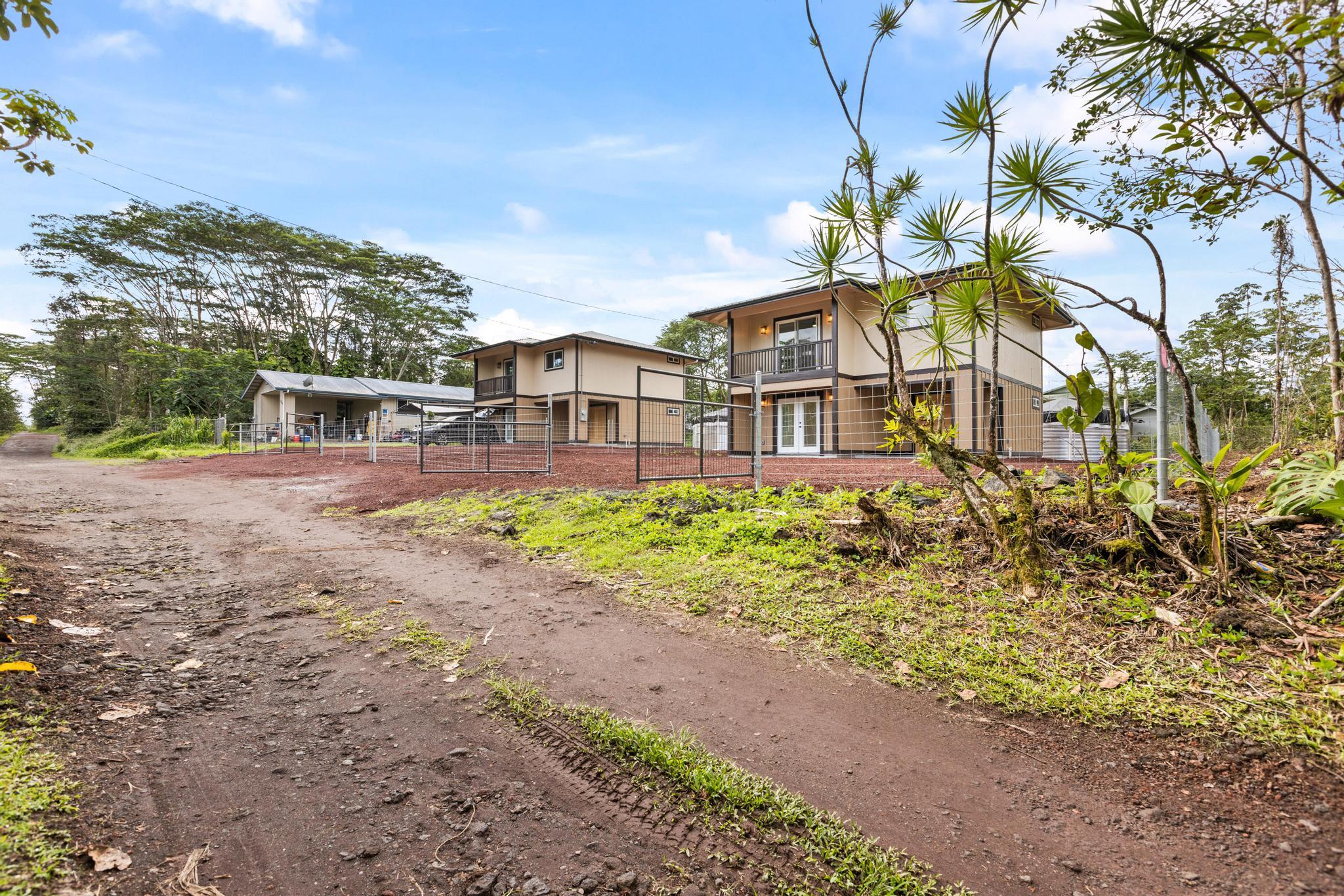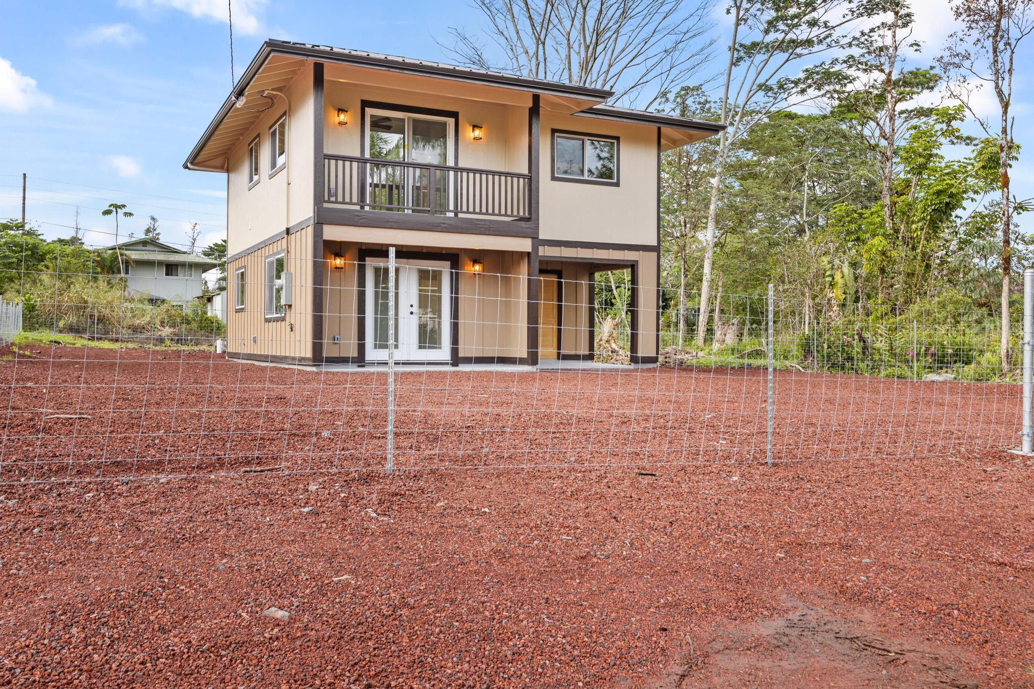 Welcome to Tiki Gardens Subdivision! Conveniently located just across from Ainaloa along the main boulevard, this area is quickly becoming one of Puna’s most desirable communities for new construction and potential for future appreciation. This brand new two story home combines smart design with big value, offering an excellent opportunity for those ready to transition from renting to owning, those seeking a first home or even a savvy investor. With thoughtful planning and efficient use of space, this 3 bedroom, 2 bath home provides modern living at an attainable price point the perfect entry into homeownership on the Big Island. Built up, not out, this home was designed with purpose to maximize comfort on a fully fenced and gated 8,100 sqft. lot. Upstairs hosts all three bedrooms, creating separation from the main living area and allowing for privacy, functionality, and a great lifestyle flow. The upper level bathroom features a large vanity and walk-in shower, while the spacious bedrooms make for comfortable for family and guests. Downstairs, the open-concept kitchen shines with beautiful cabinetry, durable quartz countertops, and a touch of island charm. The adjoining living and dining areas offer natural light and airflow, along with a second bathroom featuring a tub-and-shower combo and generous vanity. A convenient under-stair closet adds extra storage or creative potential. The carport is compact yet practical, offering functionality today with room to expand or enclose in the future. With over 1,200 sq. ft. of interior living area, this home offers low-maintenance living and flexibility for the future. Tiki Gardens offers easy access to shopping, dining, and schools, and is just a 20-minute drive to Hilo. Neighboring communities like Ainaloa and Hawaiian Paradise Park have already experienced growth making this home an excellent opportunity to start building equity through ownership in a growing subdivision. Reasonably priced, functional.