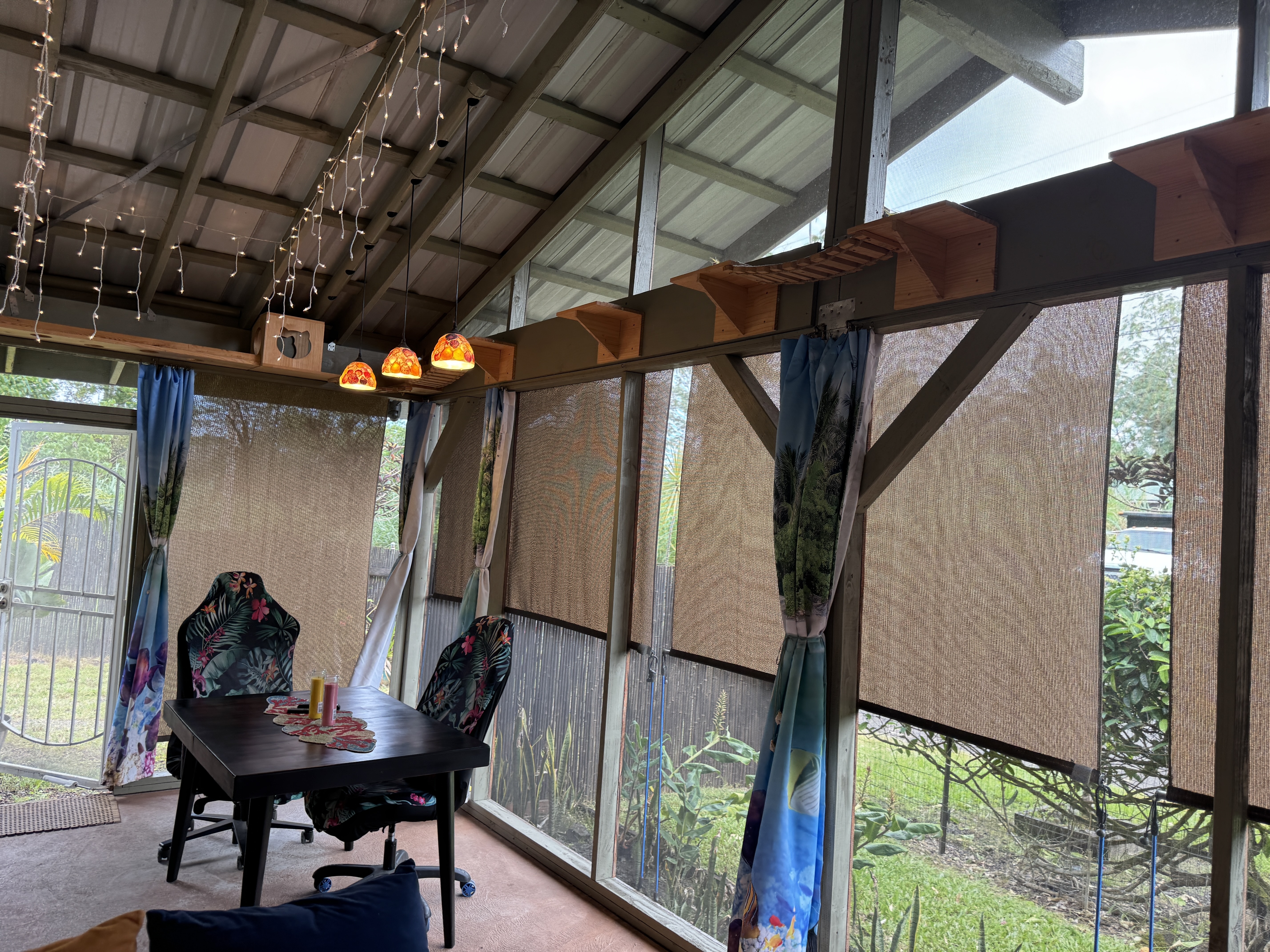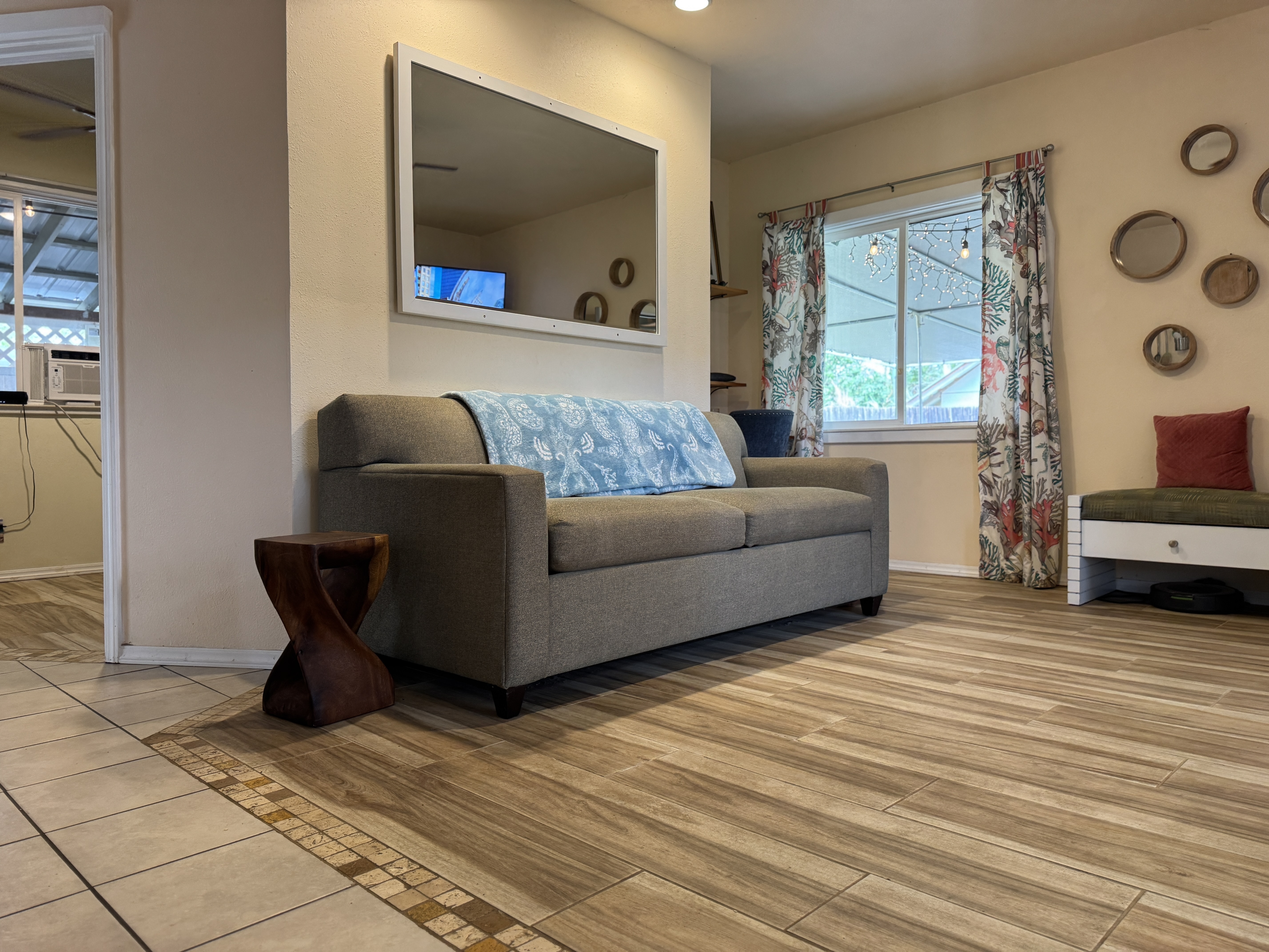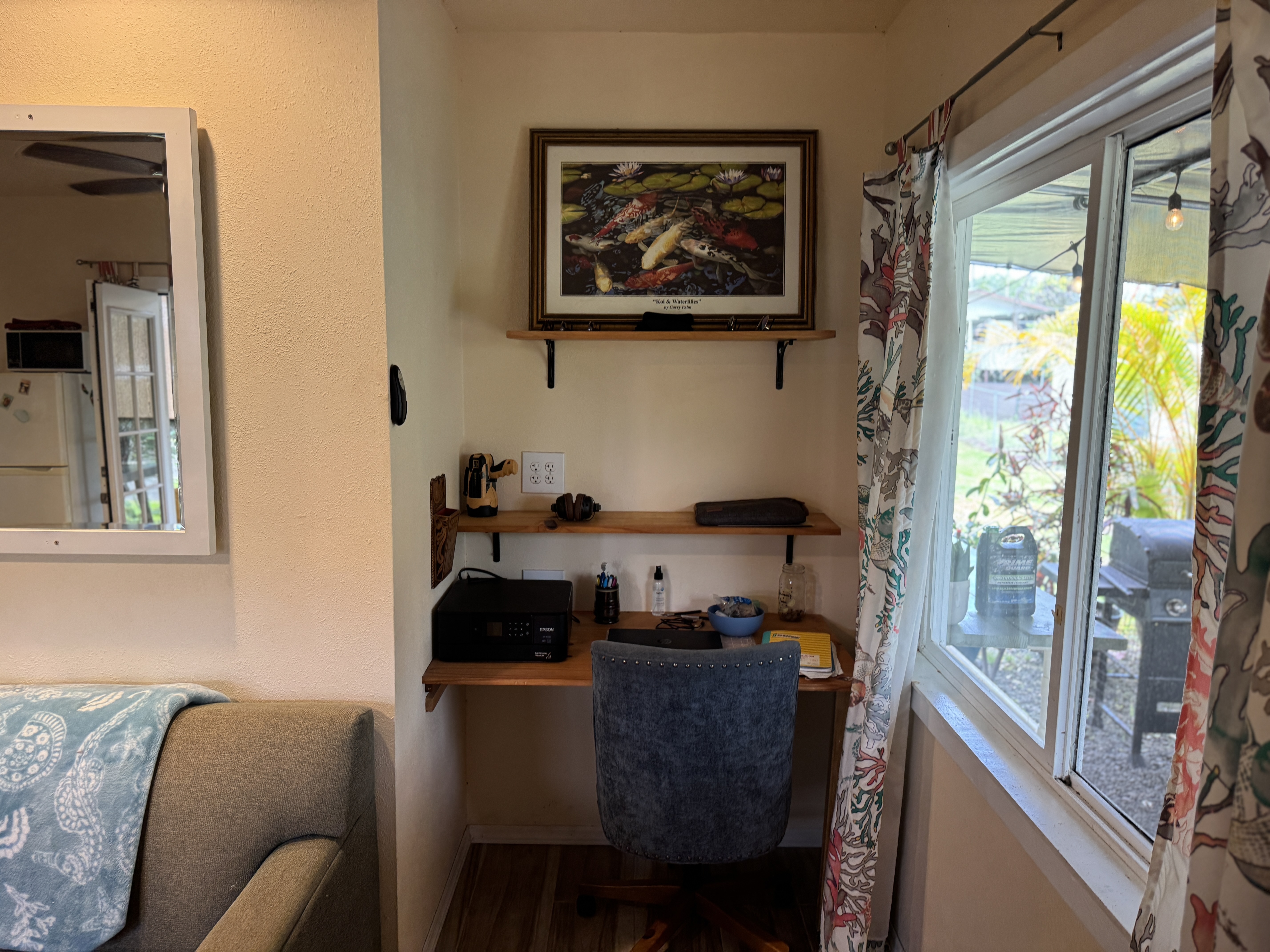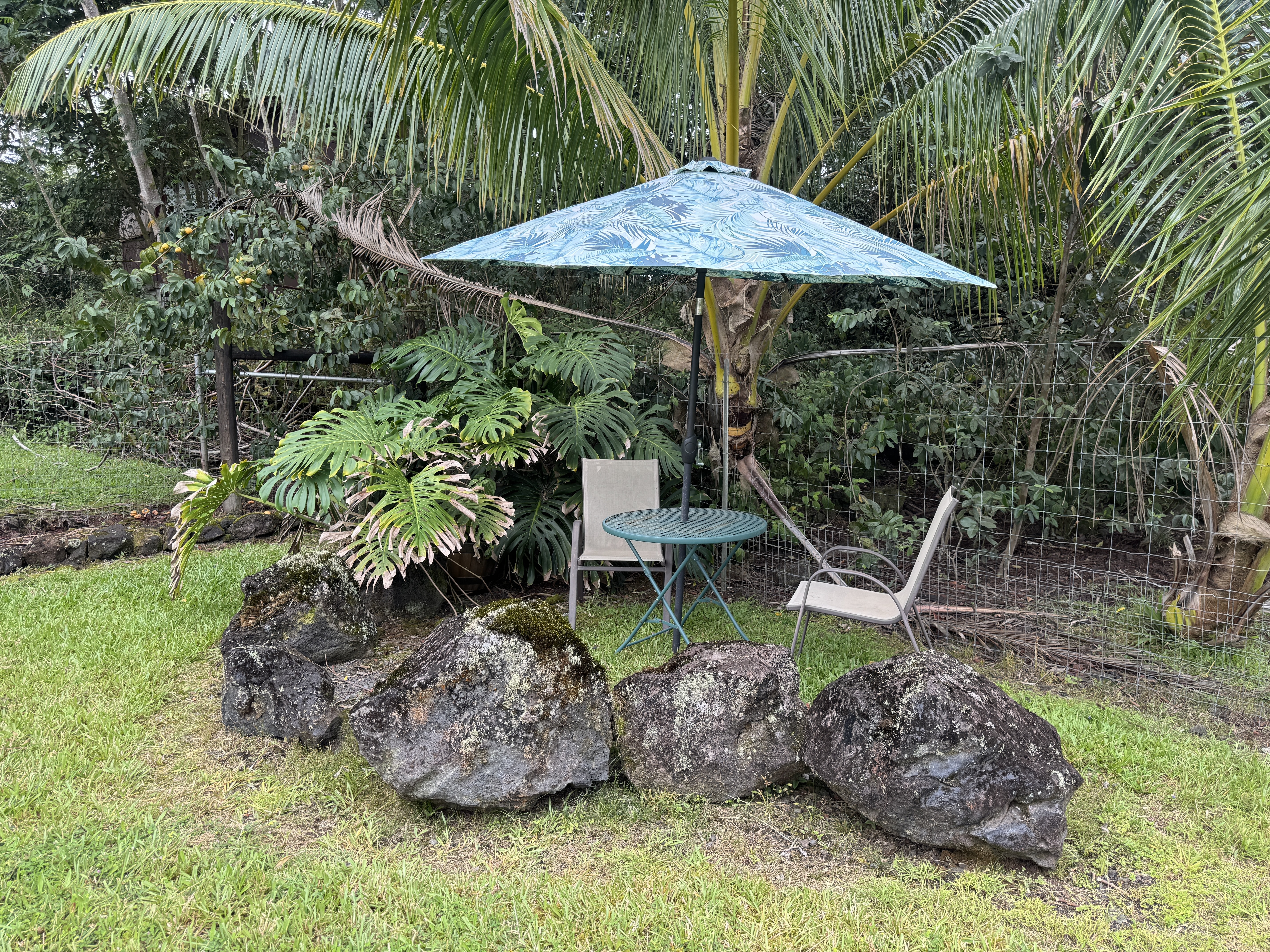 Nestled just off Ainaloa Boulevard, this charming 1-bedroom, 1-bath home offers the perfect blend of comfort, creativity, and serenity. Thoughtfully refurbished with peace in mind, the cozy layout flows from an enclosed sitting area into the inviting dining and kitchen spaces.