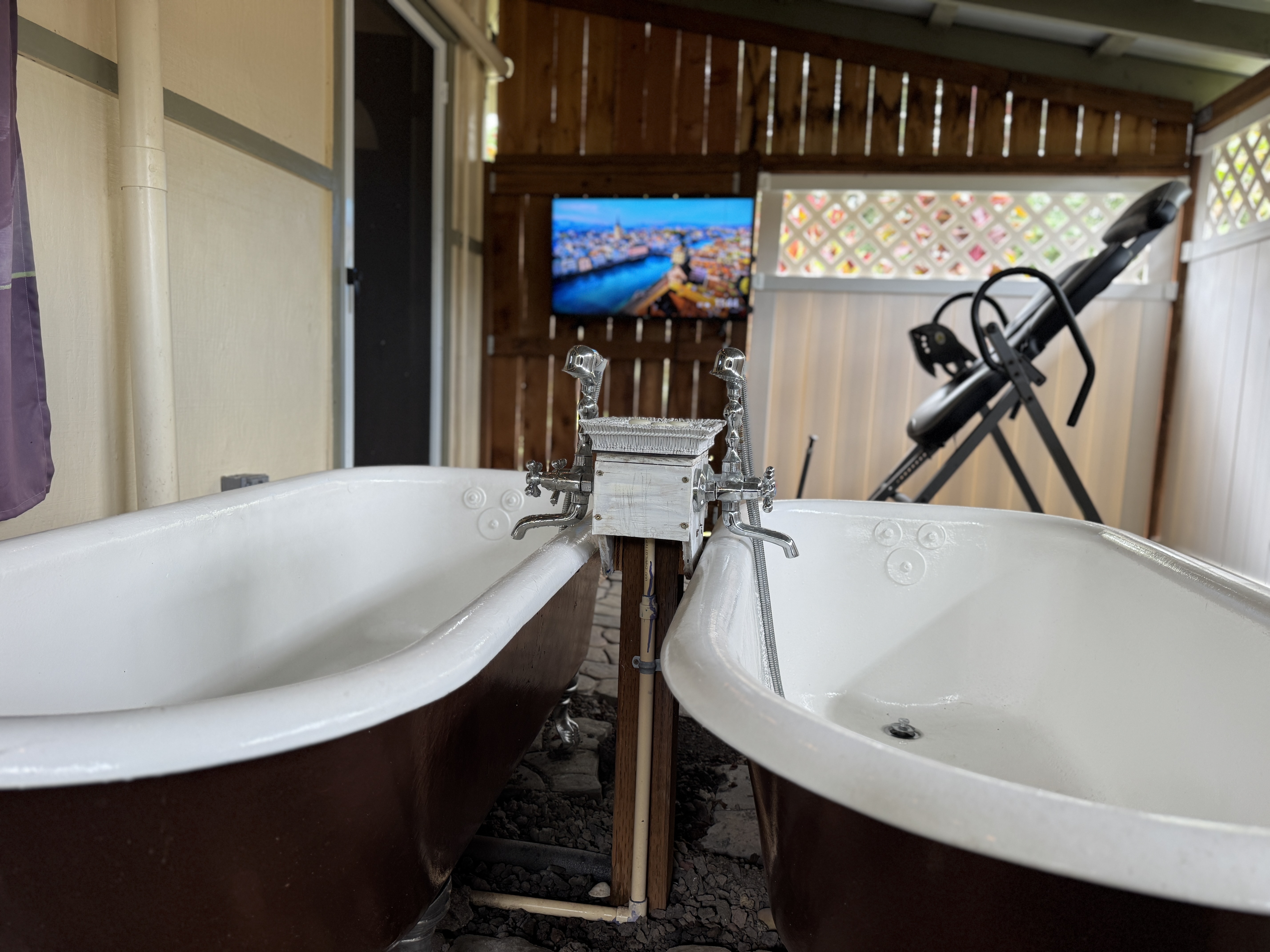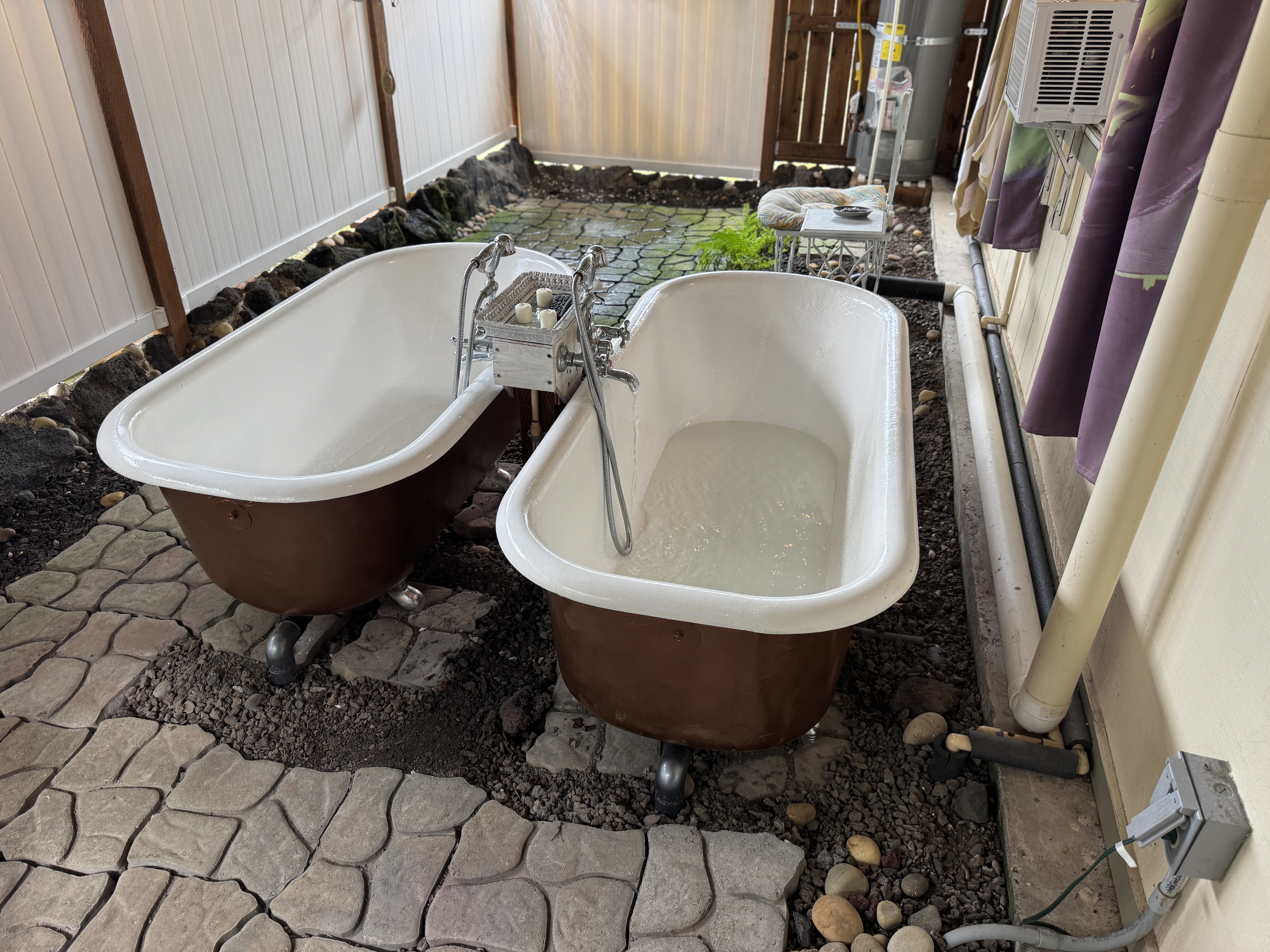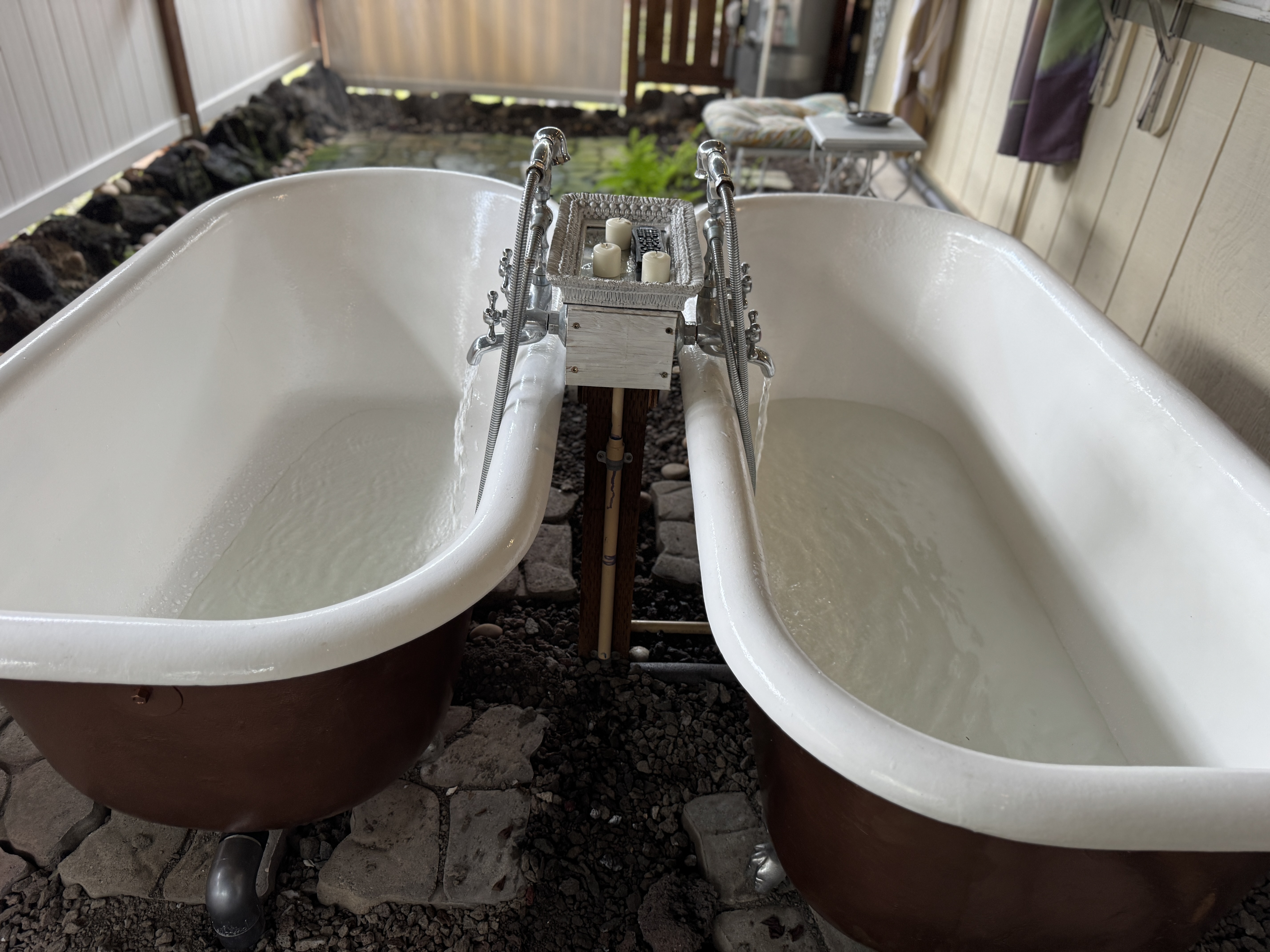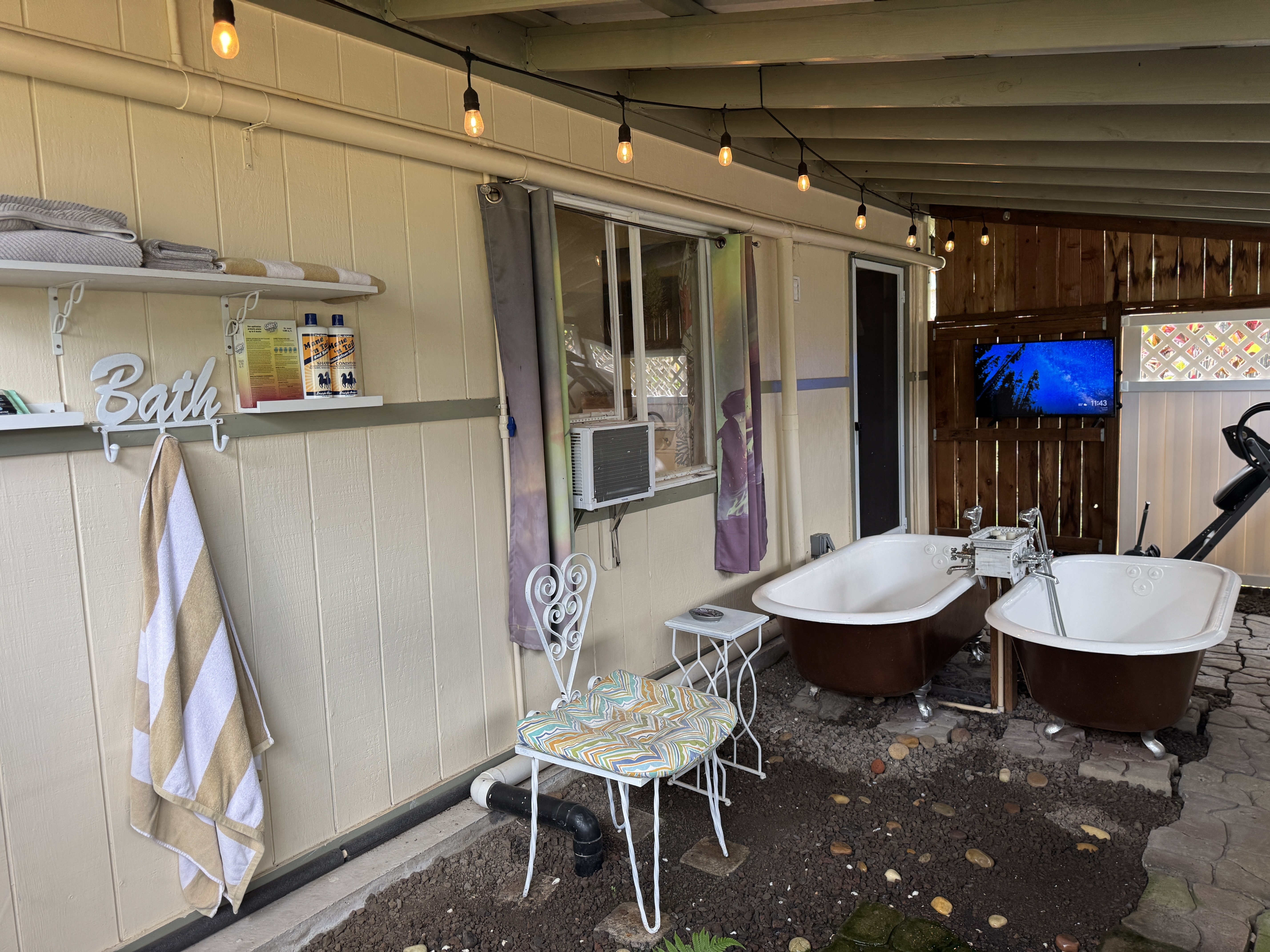Right off the bedroom, you’ll discover a spacious, spa-inspired bathroom with a unique open-air feel – complete with dual showers and two deep soaking tubs that were specially shipped from the West Coast. It’s a one-of-a-kind retreat designed for relaxation and rejuvenation.