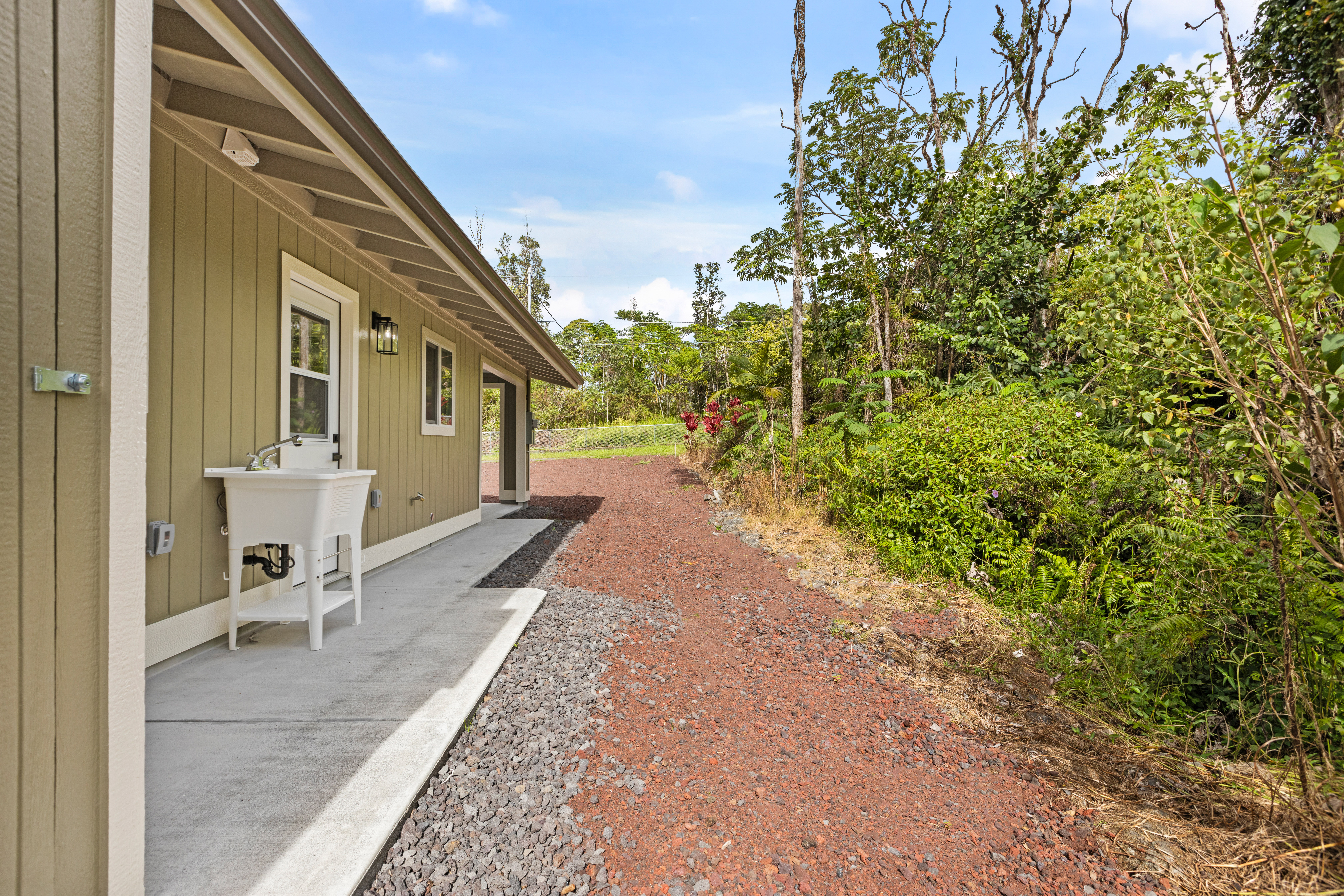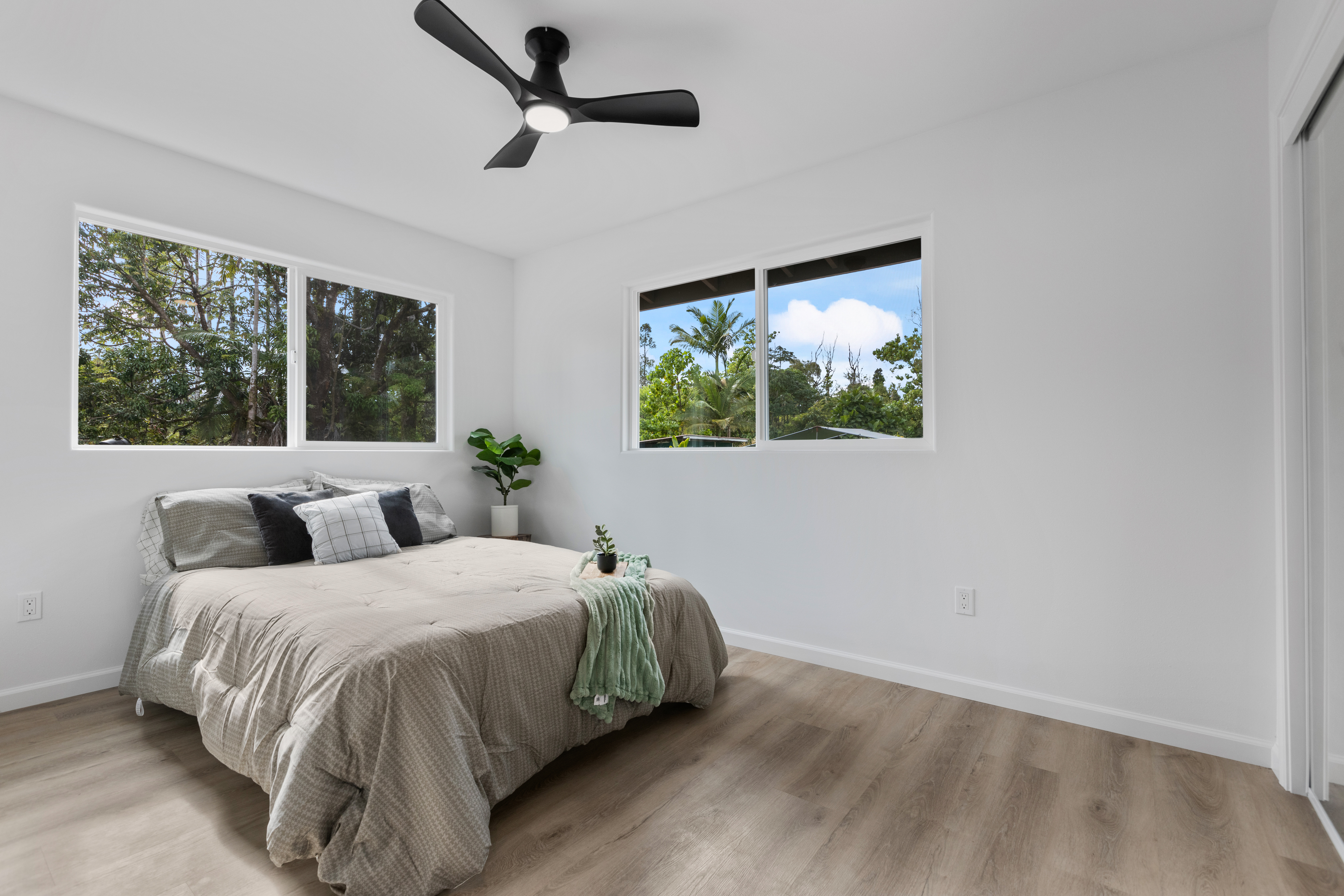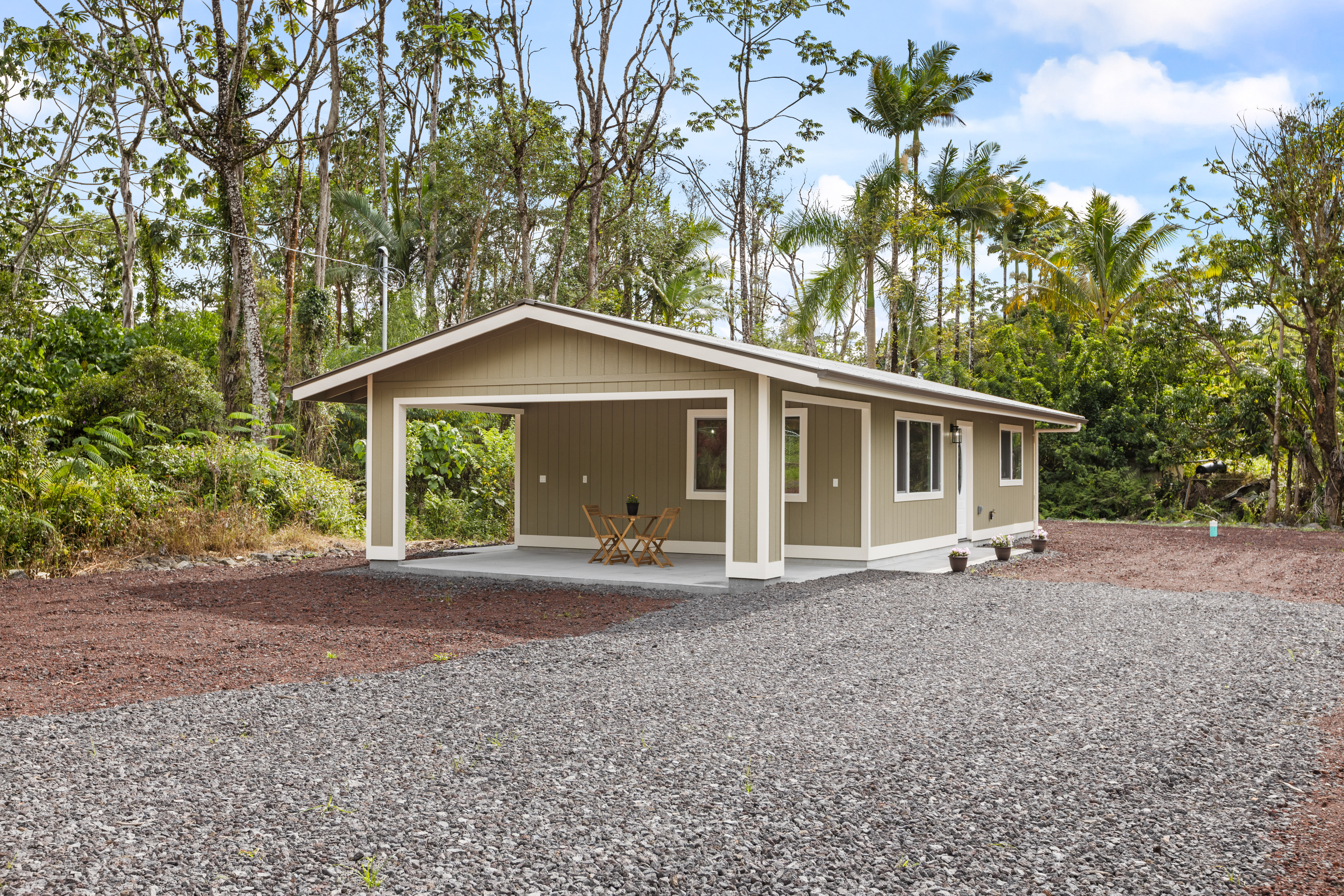 Welcome to 16-1976 Aloha Ct, a beautifully designed 2-bedroom, 1-bathroom home nestled in the heart of the Ainaloa Subdivision. This newly built residence blends island charm with sleek modern finishes, offering comfort, style, and functionality all in one. Step inside to discover an open-concept living space featuring clean lines, luxury vinyl plank flooring, and abundant natural light. The modern kitchen is thoughtfully equipped with elegant countertops, stainless steel appliances, and contemporary cabinetry–perfect for entertaining or casual island living. Both bedrooms are well-proportioned and designed with comfort in mind, while the bathroom boasts high-end fixtures and a stylish, tiled shower. Outside, you'll find a quiet, private yard with endless potential to create your own tropical oasis. Located on a paved road, this property offers a serene escape while still being conveniently close to Pahoa town, shopping, dining, and the stunning natural beauty of the Big Island.