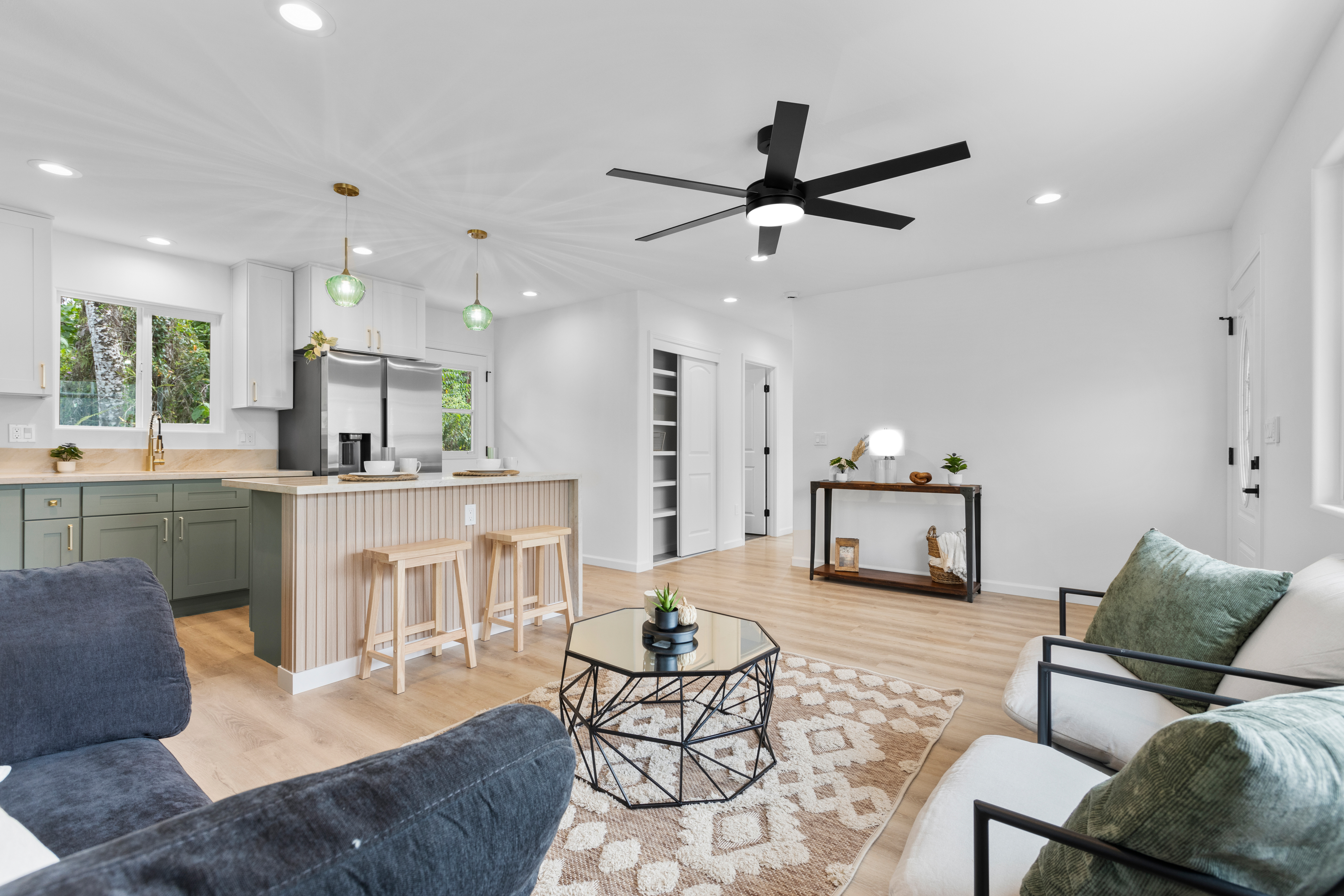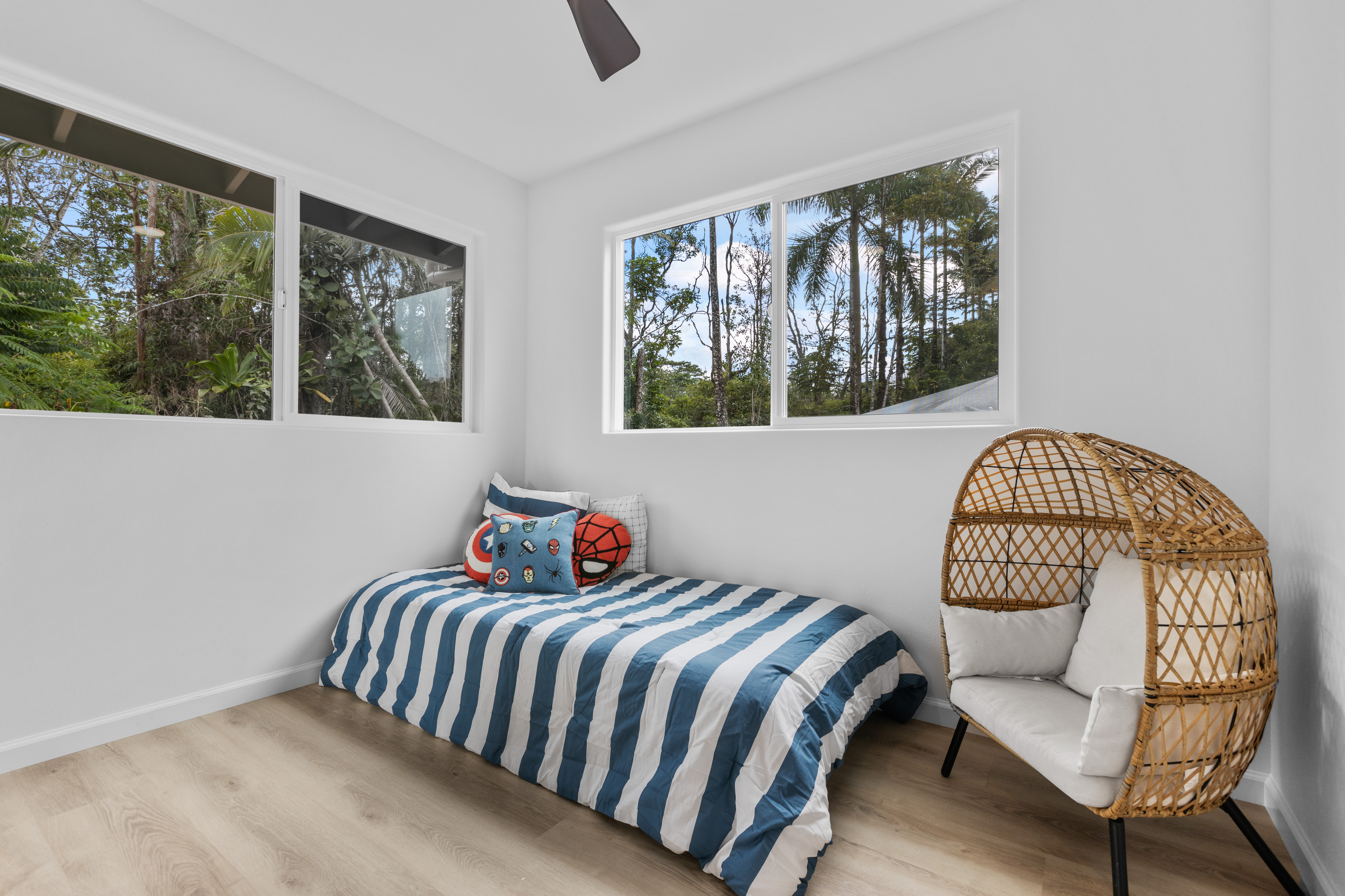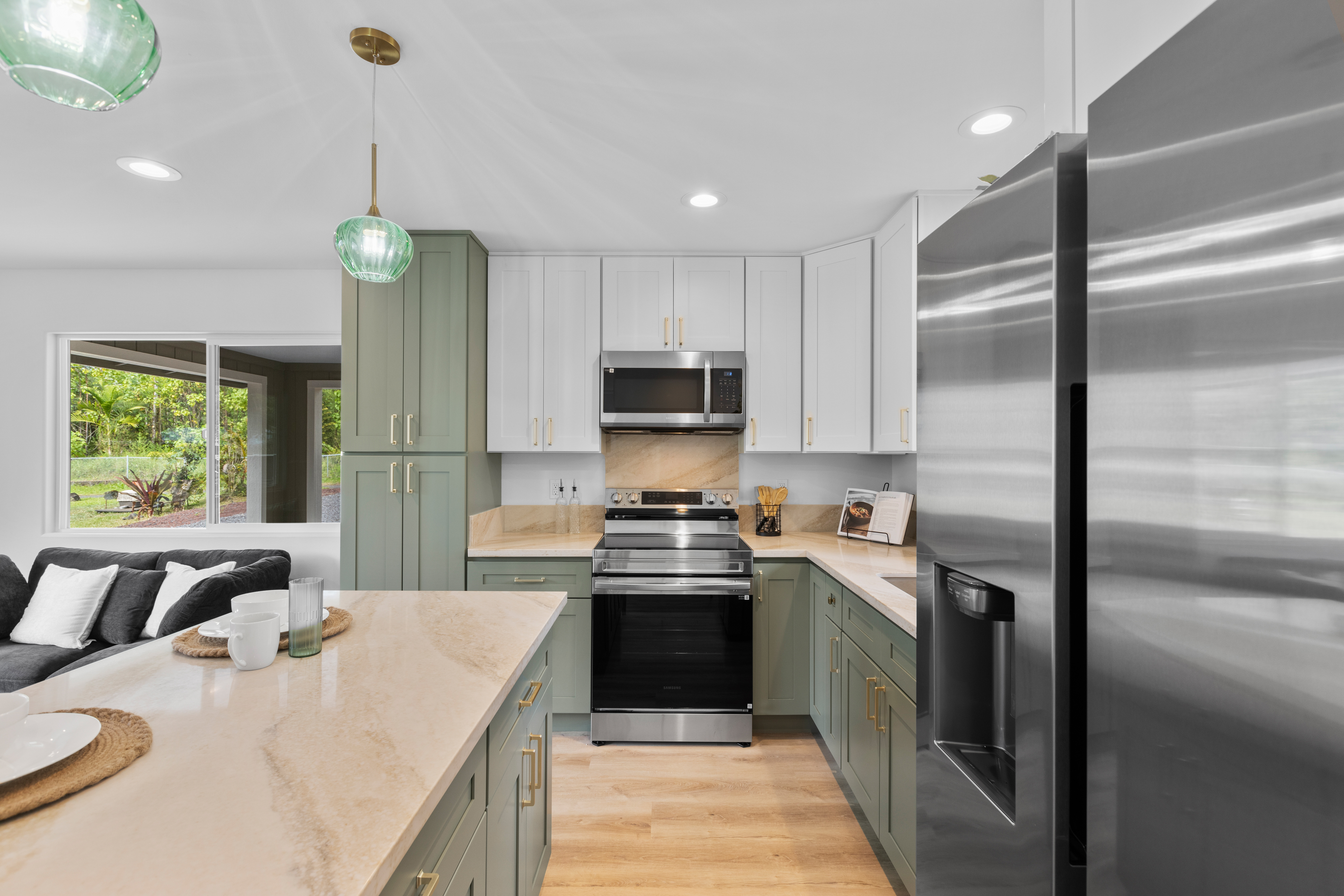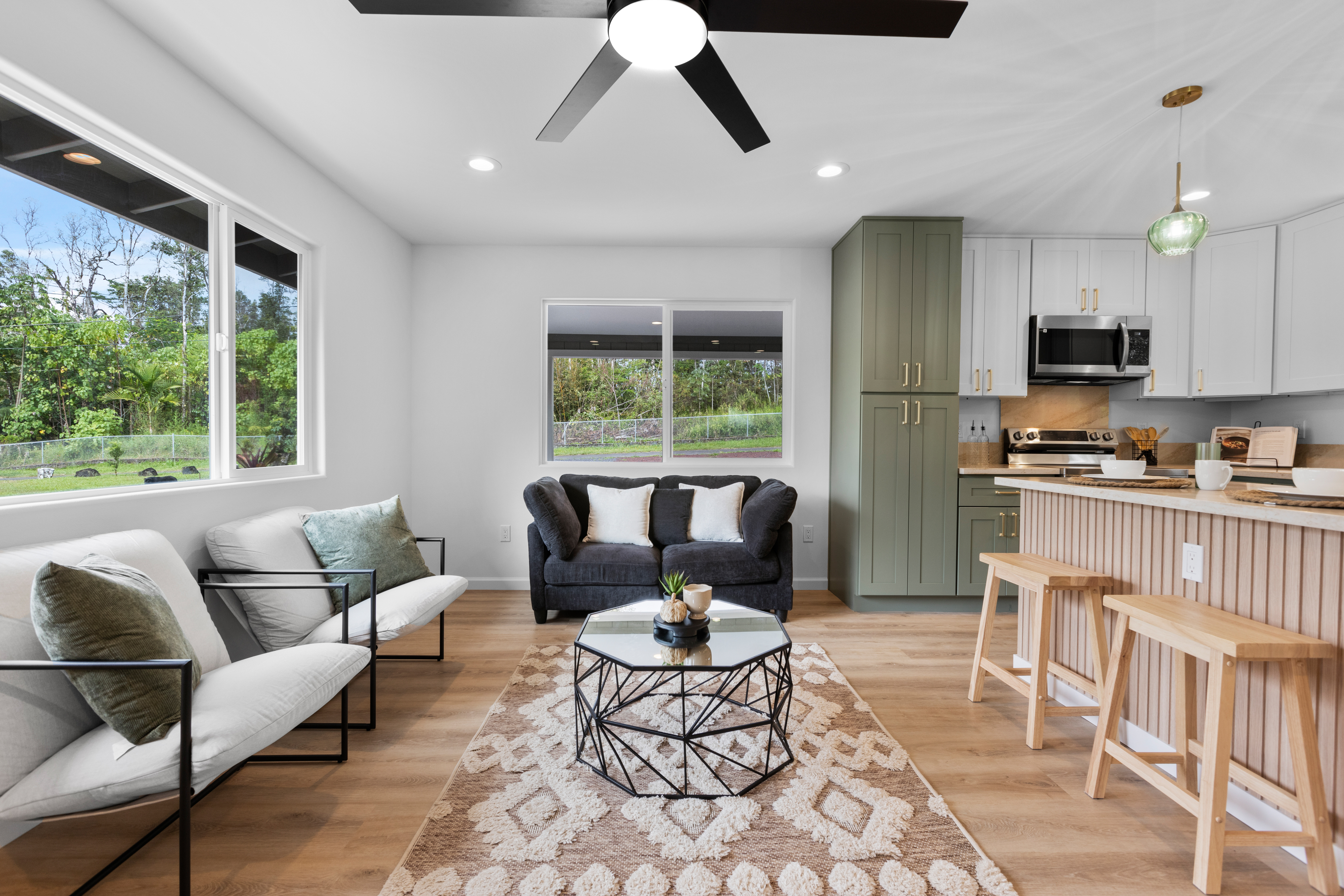 Welcome to 16-1976 Aloha Ct, a beautifully designed 2-bedroom, 1-bathroom home nestled in the heart of the Ainaloa Subdivision. This newly built residence blends island charm with sleek modern finishes, offering comfort, style, and functionality all in one. Step inside to discover an open-concept living space featuring clean lines, luxury vinyl plank flooring, and abundant natural light. The modern kitchen is thoughtfully equipped with elegant countertops, stainless steel appliances, and contemporary cabinetry–perfect for entertaining or casual island living. Both bedrooms are well-proportioned and designed with comfort in mind, while the bathroom boasts high-end fixtures and a stylish, tiled shower. Outside, you'll find a quiet, private yard with endless potential to create your own tropical oasis. Located on a paved road, this property offers a serene escape while still being conveniently close to Pahoa town, shopping, dining, and the stunning natural beauty of the Big Island.