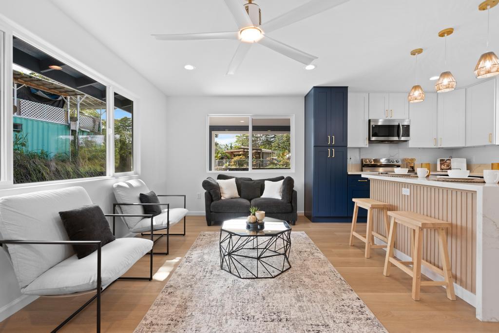 Outside, the property offers the tranquility of a quickly developing neighborhood while maintaining convenient access to Pahoa town, shopping, dining, and local amenities.