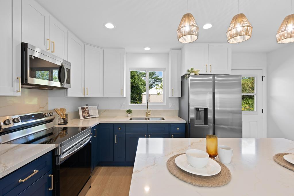 Step inside to an inviting open-concept living and kitchen area, perfect for both relaxation and entertaining. The kitchen is a standout feature, showcasing sleek quartz countertops, including a gorgeous waterfall-edge island that serves as a central gathering point. Modern fixtures, clean lines, and thoughtful layout make this space feel bright, functional, and refined.