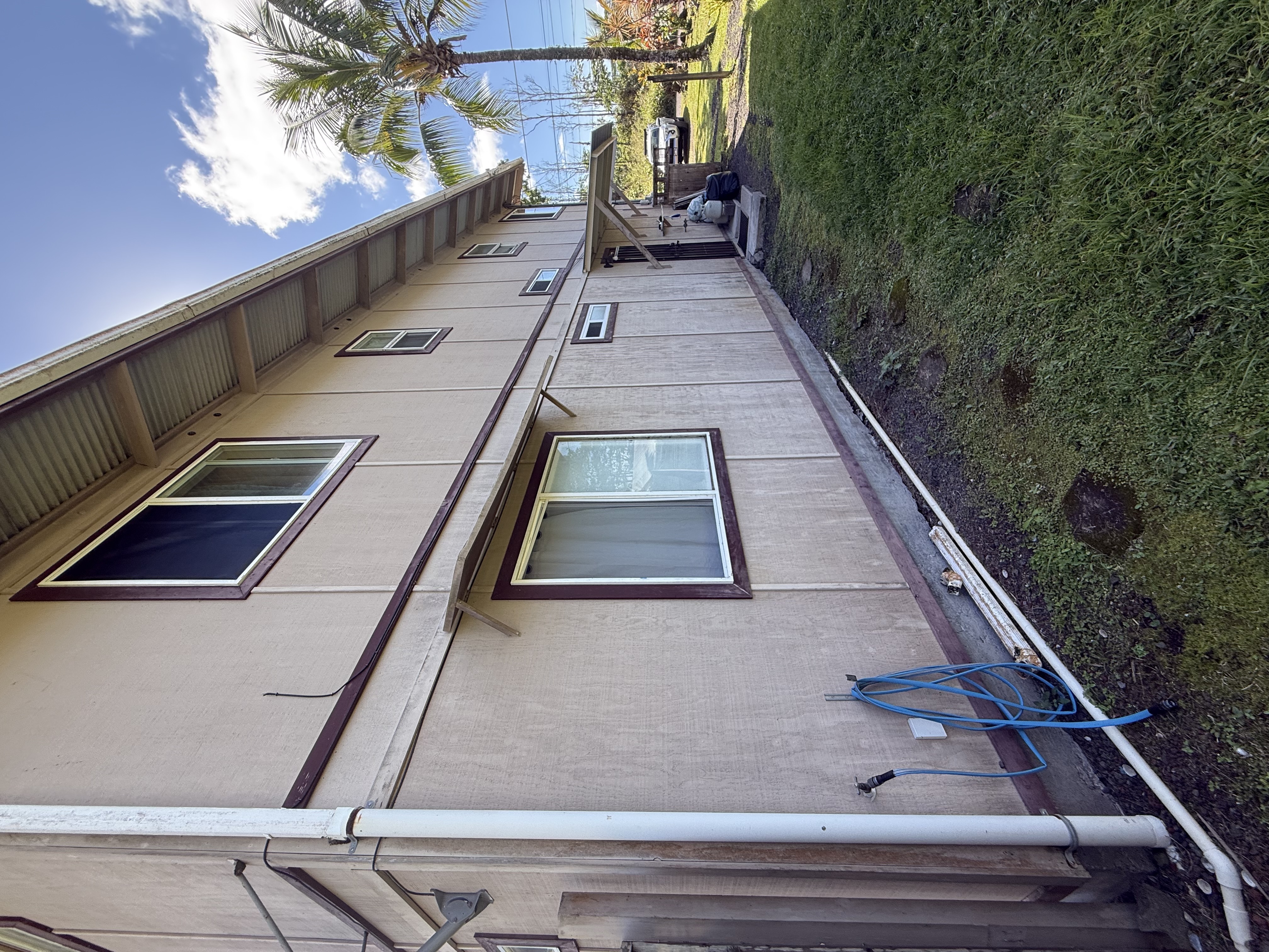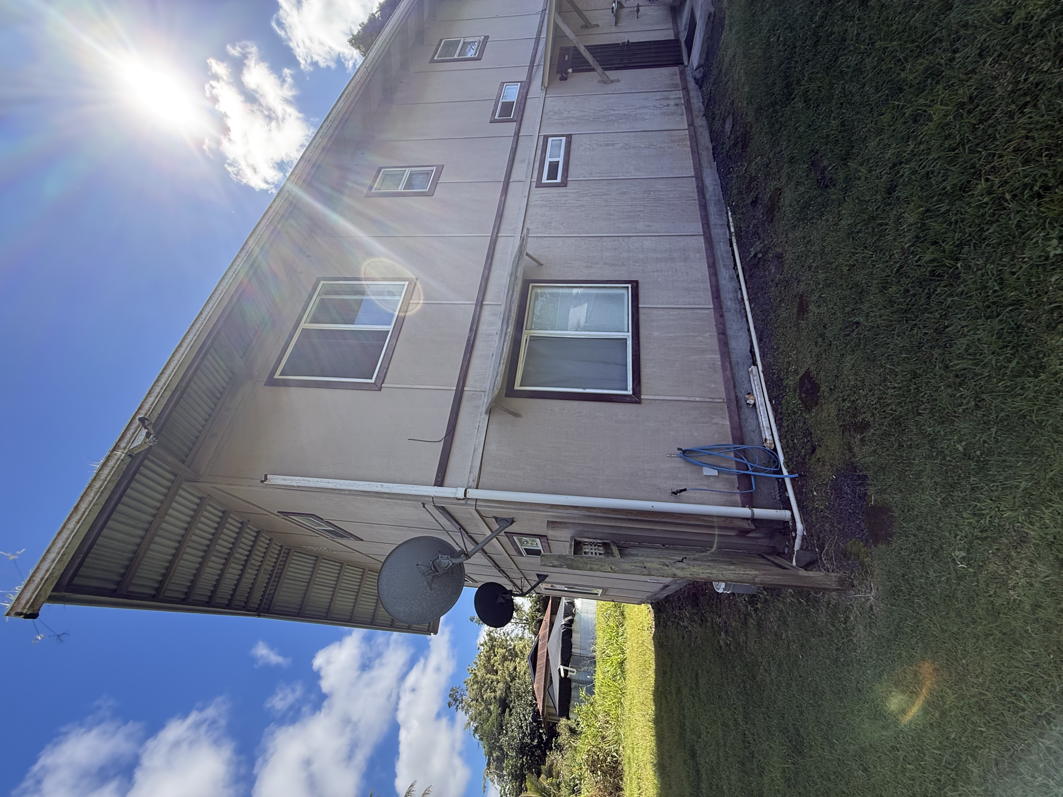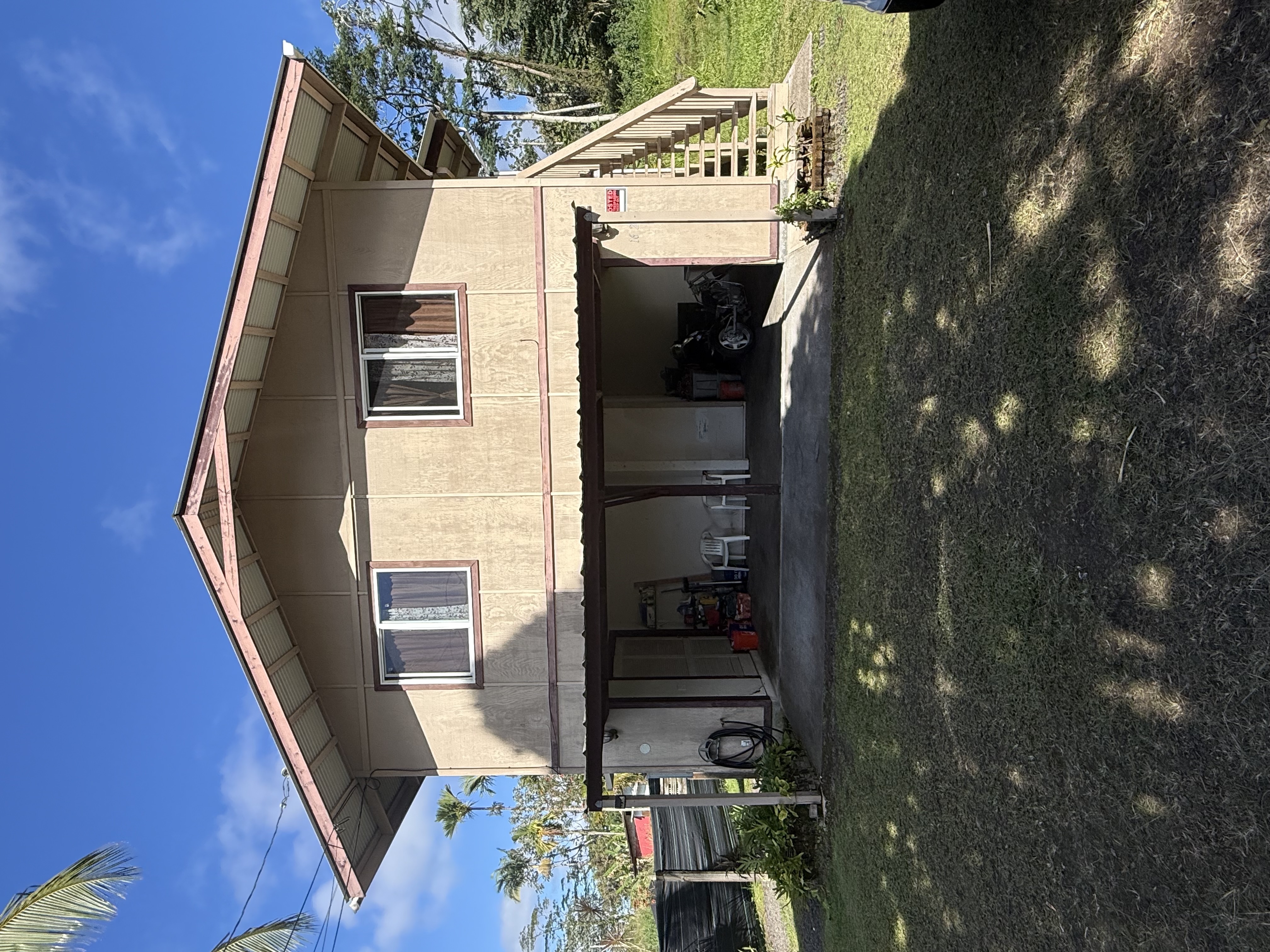 Located on a quiet road along King Kamehameha Blvd in Pahoa, this property offers flexibility for investors. The upstairs features 3 bedrooms and 2 bathrooms. The downstairs unit has a separate entrance and includes 2 bedrooms, 1 bathroom, and a kitchen. Both units are currently rented on month-to-month leases. Enjoy a spacious yard with a gazebo. Buyer and buyer’s agent to verify all information through their own due diligence.