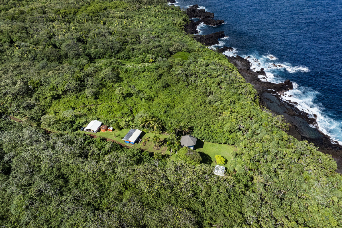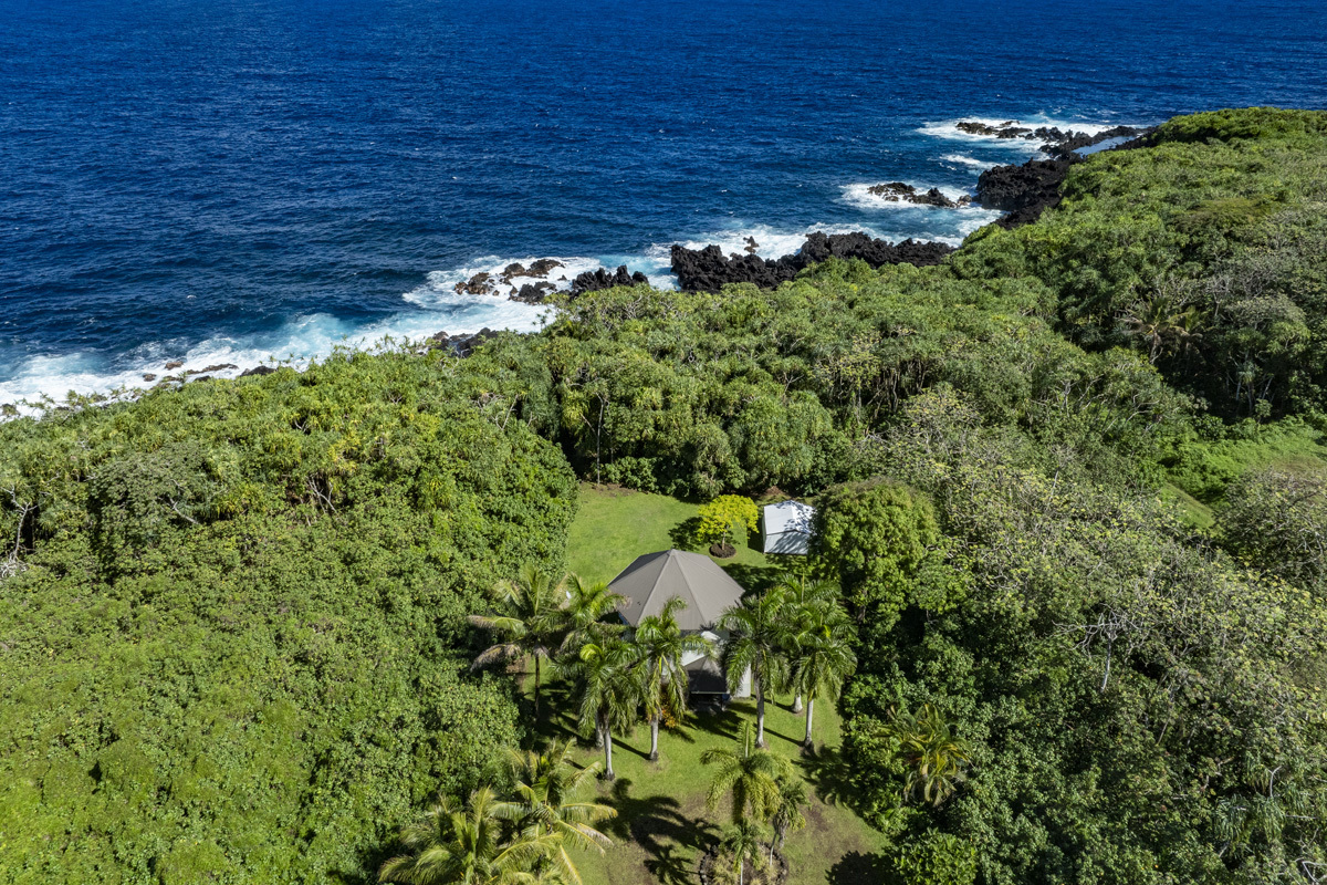 E komo mai and welcome home to island style living. Be self-sufficient! The enamor of the pools, the bobbing Honu, and the midnight song of the passing whales are calling you here in Waa Waa. Come play in this oceanfront 2.93 Acres of Hawaiian Paradise, a retreat with an inviting serenity. The 1852 SF main home is a custom-designed, Thai inspired, 3-story hexagonal wonder. It features a first floor open area with bamboo floors, living and kitchen areas, half bath and storage with a laundry nook. This home blends elegance with sustainability via a stairway crafted in imported Champak wood, hardwood flooring upstairs, and monkeypod and mango wood kitchen countertops. Relax on the bright 2nd floor in the private bedroom, including a full ensuite bath. The 3rd floor opens to a broad circular room that is perfect for a work space, office, yoga or dance area, all covered in a wide domed ceiling. The property is fully off-grid, powered by a capable photovoltaic system supported by a backup generator. Water is supplied via a 10,000-gallon rainwater catchment system. The `Ohana is a separate 704 SF steel-framed home that includes 1 bedroom, 1 bath, a kitchenette, and its own privacy, perfect for guests. One of the larger oceanside lots in Waa Waa, this haven begins with a winding driveway lined with palms, lush ornamentals, and tropical fruit trees. Park-like lawns lead to a wild path through a Hau and Hala jungle to the 12 acre Beach Reserve lot and coastal tide pools. A private ocean overlook with a mango wood bench and table provides an awesome perch to enjoy sunrises and vibrant coastal views. For showings please allow 48 hours notice for the owner-occupants. Refer to MLS# 728172.