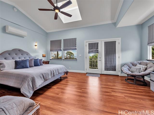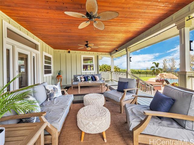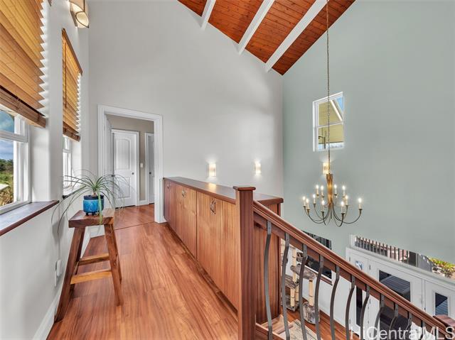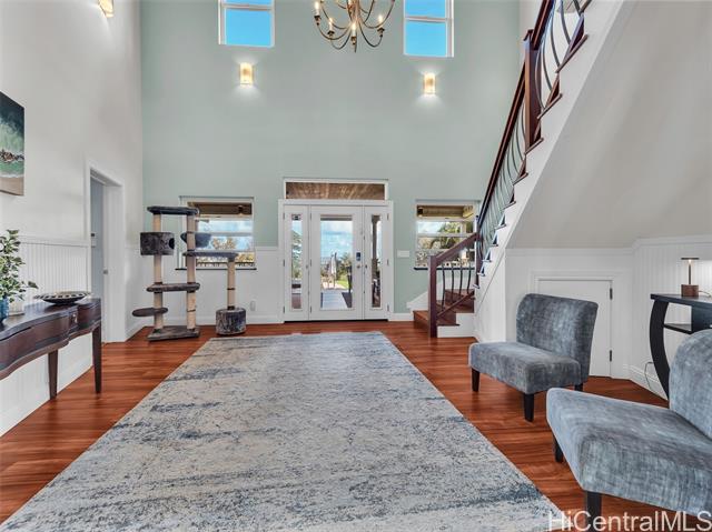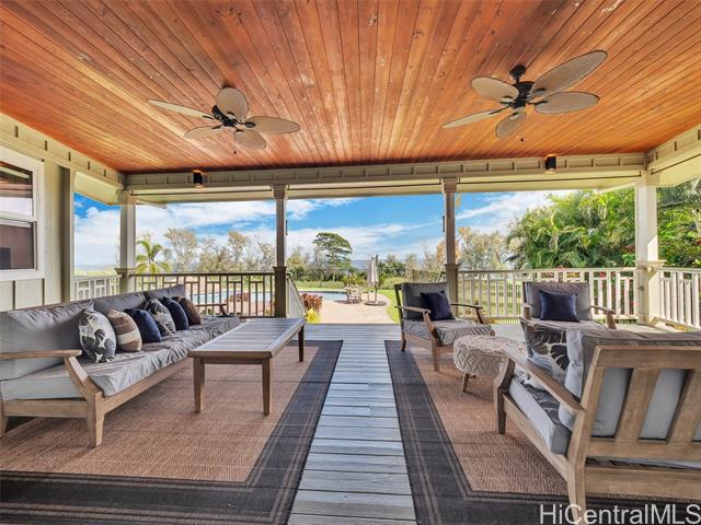 Set on 2.42 acres of pristine oceanfront, this 4-bedroom, 5-bath estate offers elegance and island serenity in one of East Hawaii's most desirable communities. A dramatic foyer divides the home into two wings; The South Wing features three suites. Two upstairs and one on the main level. Each with a full bath, sitting area, split A/C and private lanai overlooking the ocean. The North Wing boasts a gourmet kitchen with custom mahogany cabinetry, quartz counters, double ovens, and a 6-burner DCS range with open living and dining areas framed by bay windows and endless ocean views. The primary suite includes a private entrance, spa-inspired bath, walk-in closet, and lanai. Designed for seamless indoor - outdoor living, the home offers 1,200 sq. ft. of covered lanais, a saltwater pool, lush tropical landscaping, and fruit trees. A detached 2-car garage adds laundry, bath and storage. sustainable features include 20 owned solar panels, solar hot water, and underground utilities - defining refined island living.