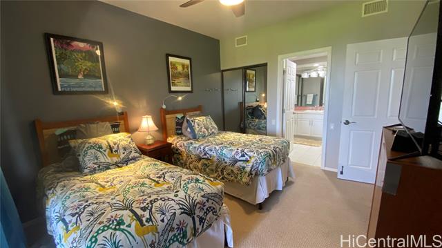 Rarely available air conditioned condo in the gated community of Waikoloa Fairways with fantastic views of the ocean,golf course, and Maui. This unit is totally turnkey with high end furniture, cable tv in every room, everything stays and fantastic views. Dedicated parking spot is just steps from the front door and private pool/jacuzzi with bbq fifty feet away. Golf course, tennis courts, pickleball, and community pool a two minute walk away. You will not find a more perfect place to live in all of Waikoloa Village so don't let this beauty get away. Won't last long!