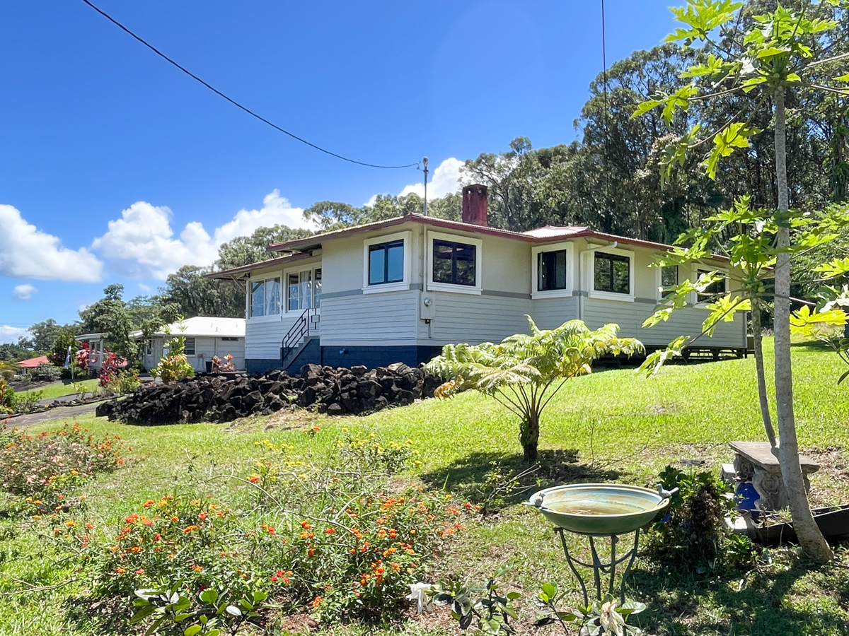 3-bedroom, 2-bath residence offers ocean views, a spacious 19,671 sq. ft. lot, backed by lush forest and fronted by Ainako Avenue.