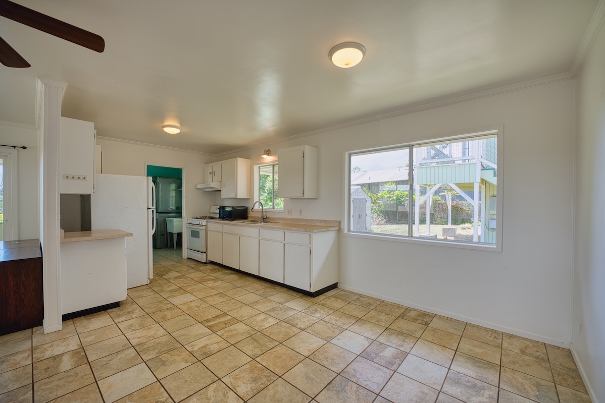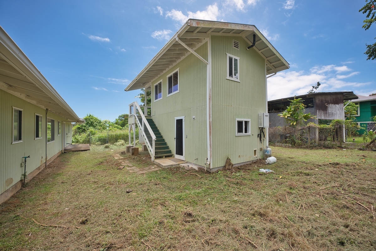 Set along the lush and scenic Hamakua Coast, this unique 3-bedroom, 2.5-bath home offers space, flexibility, and opportunity. The main residence is complemented by a detached 4th bedroom cottage with its own additional bath, kitchenette and sitting area–ideal for guests, extended family, or rental potential. Enjoy ocean views and refreshing trade winds in a peaceful setting just off the scenic route in Papaikou. The Hamakua Coast is known for its dramatic coastline, waterfalls, and tropical beauty, offering a slower-paced lifestyle while still being conveniently close to Hilo’s shopping, dining, schools, and medical facilities. The property’s RS-20 zoning opens the door to potential subdivision or future development, making it not only a comfortable home but also an investment opportunity. With paved access, the property strikes a rare balance between privacy and convenience. Located in Lava Zone 8, this area is considered one of the lower-risk zones on the island. Whether you're looking for a multi-generational living setup, income potential, or room to grow, this property offers versatility in a highly desirable location.