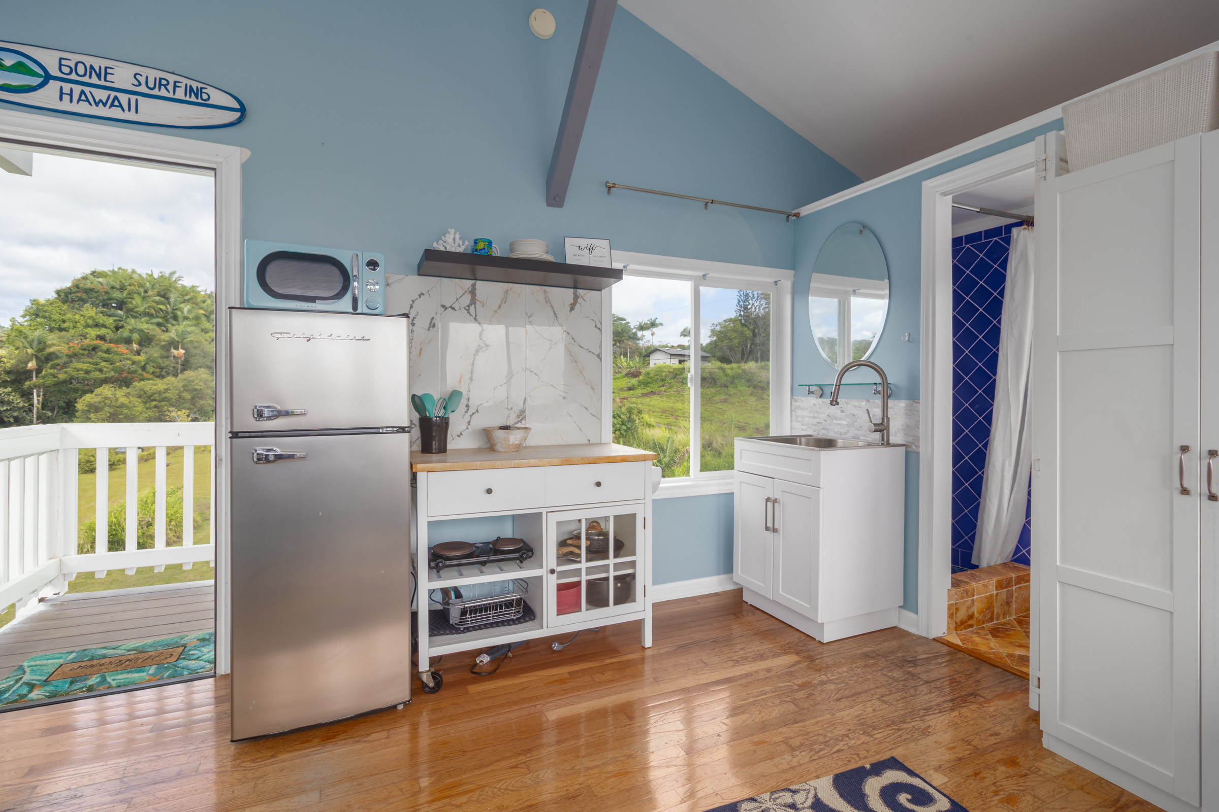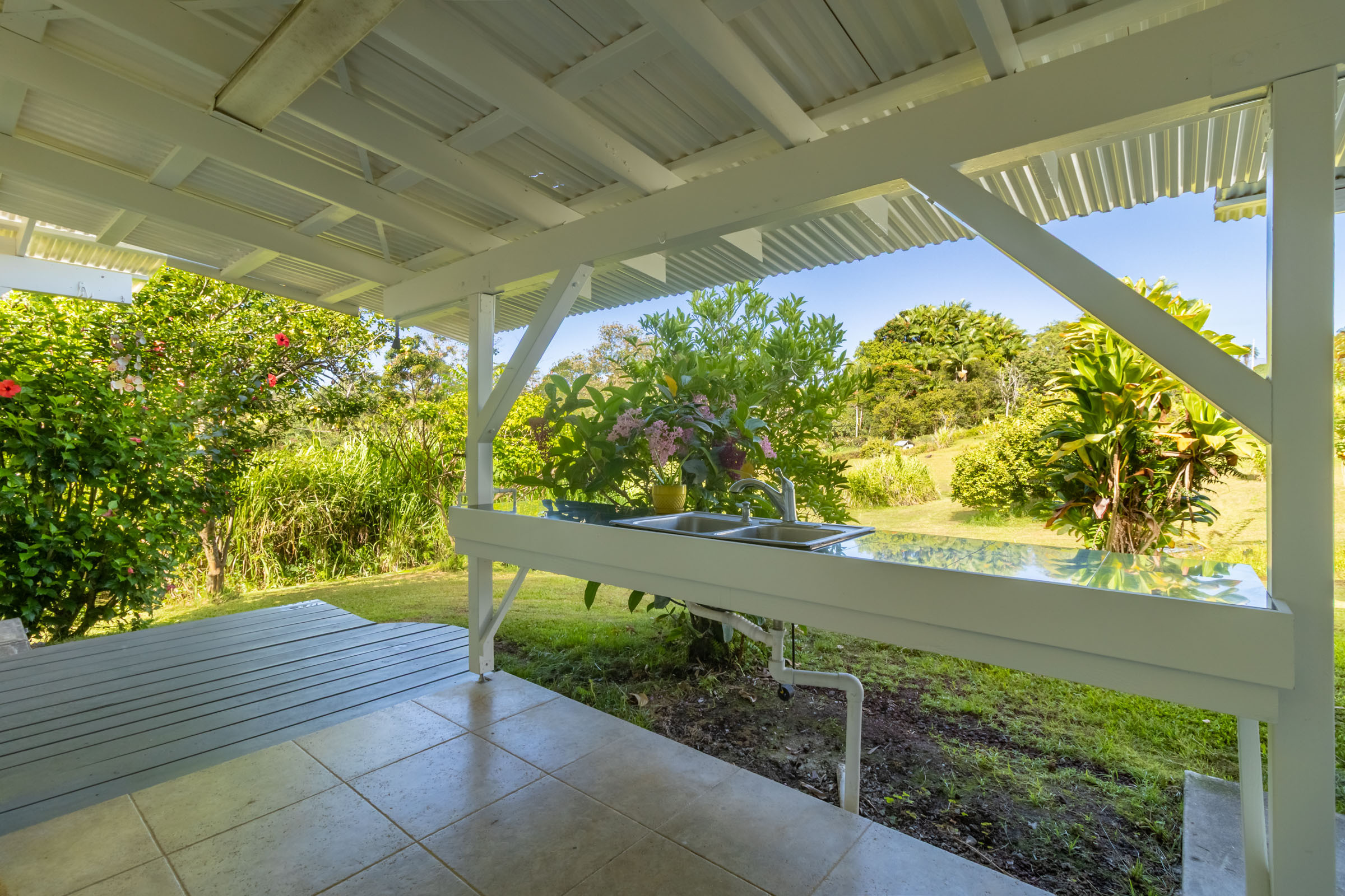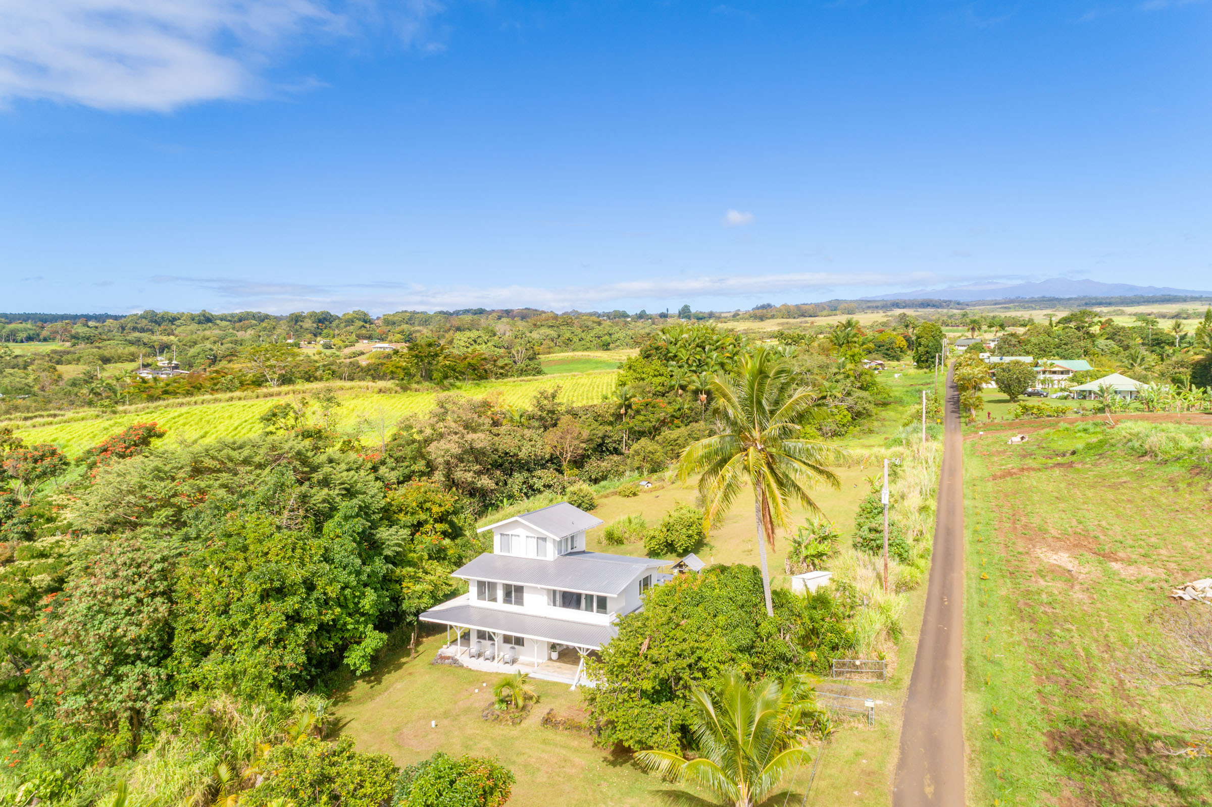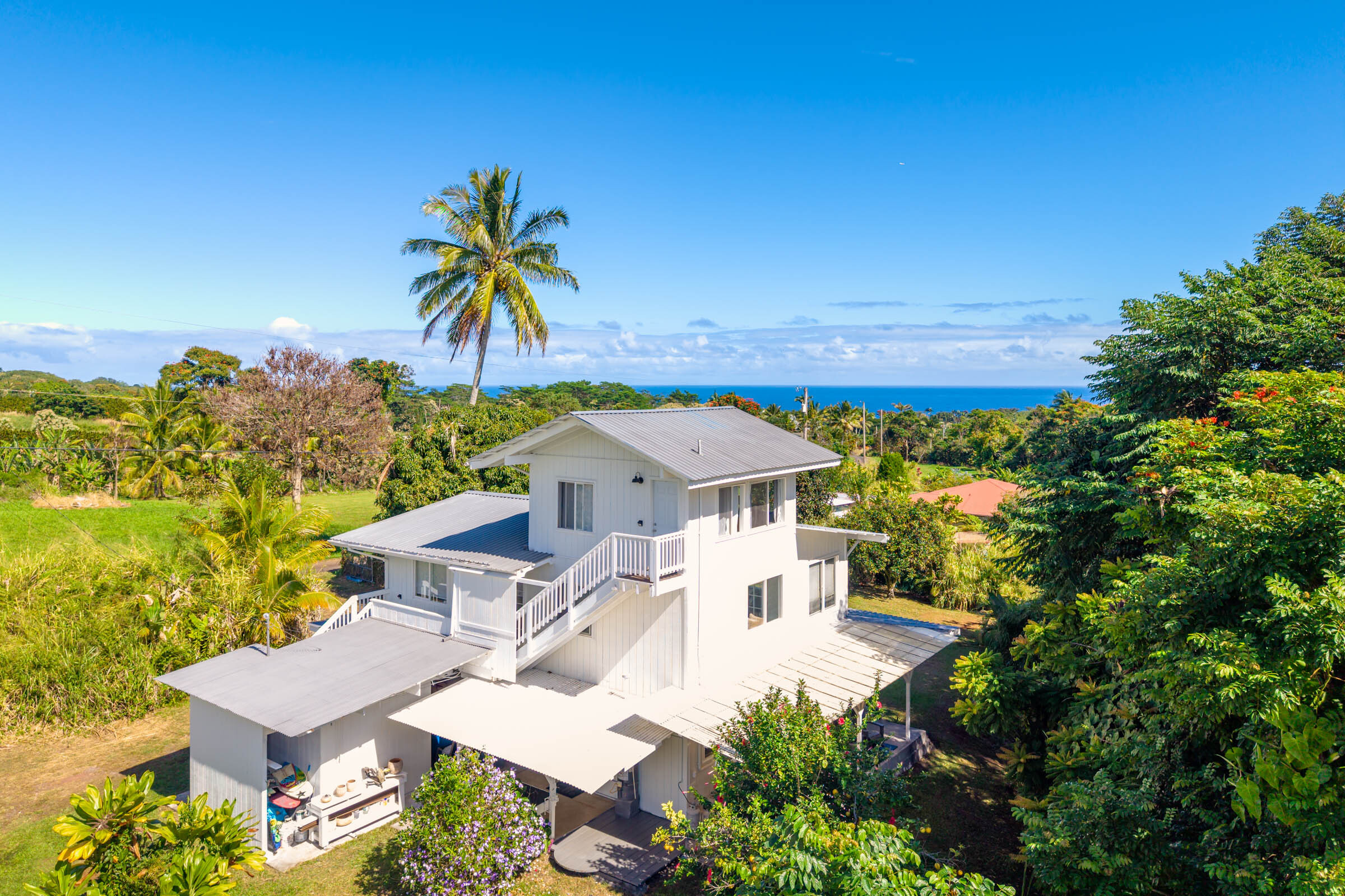 Nestled on 1.33 acres, this custom 3-bedroom, 3-bath home offers stunning ocean views and abundant natural light throughout. From the Brand new open kitchen and living areas on the main level to the third-floor studio, every space feels bright and welcoming. Conveniently located less than 10 minutes from downtown Hilo, you’ll have quick access to shops, restaurants, the airport, and the hospital. The property features county water and electricity, sits on a private paved road, and is just minutes from the popular Honoli'i surf spot. The fertile land is perfect for gardening and is already home to a rich variety of fruit trees including avocado, mango, coconut, soursop, pineapples, multiple citrus types (such as Tahitian lime and lemons), papaya, kefir, kumquat, starfruit, lychee, rambutan, longan, and more. An outdoor patio just off the kitchen is ideal for barbecues and entertaining, with plenty of yard space for everyone to enjoy. Don’t miss the chance to experience this tropical haven.
