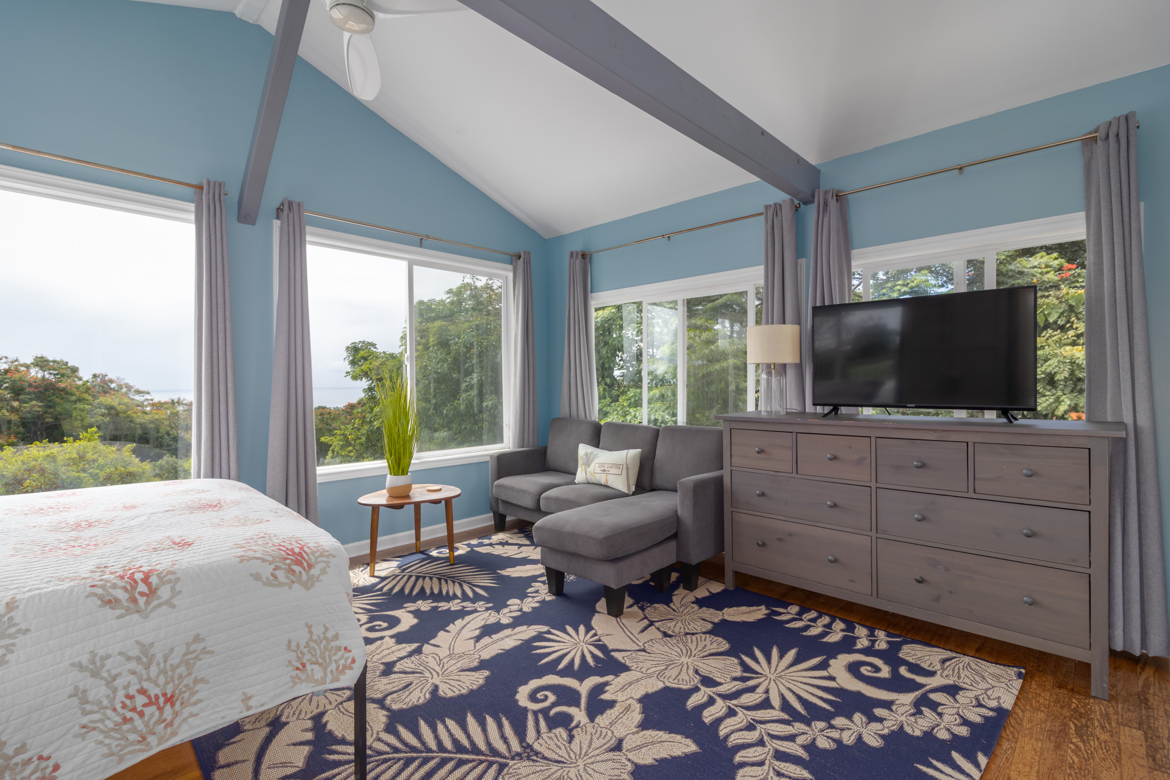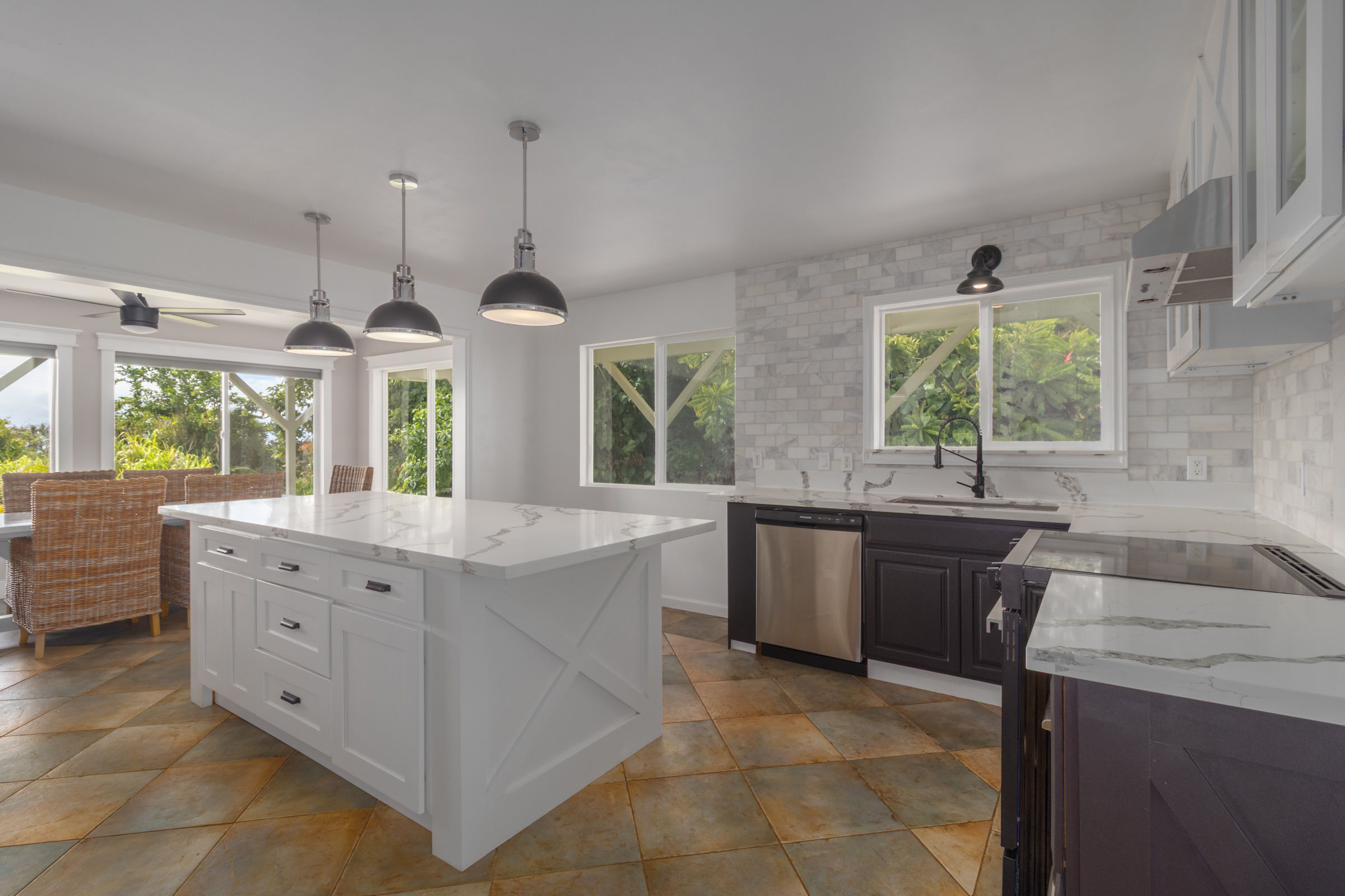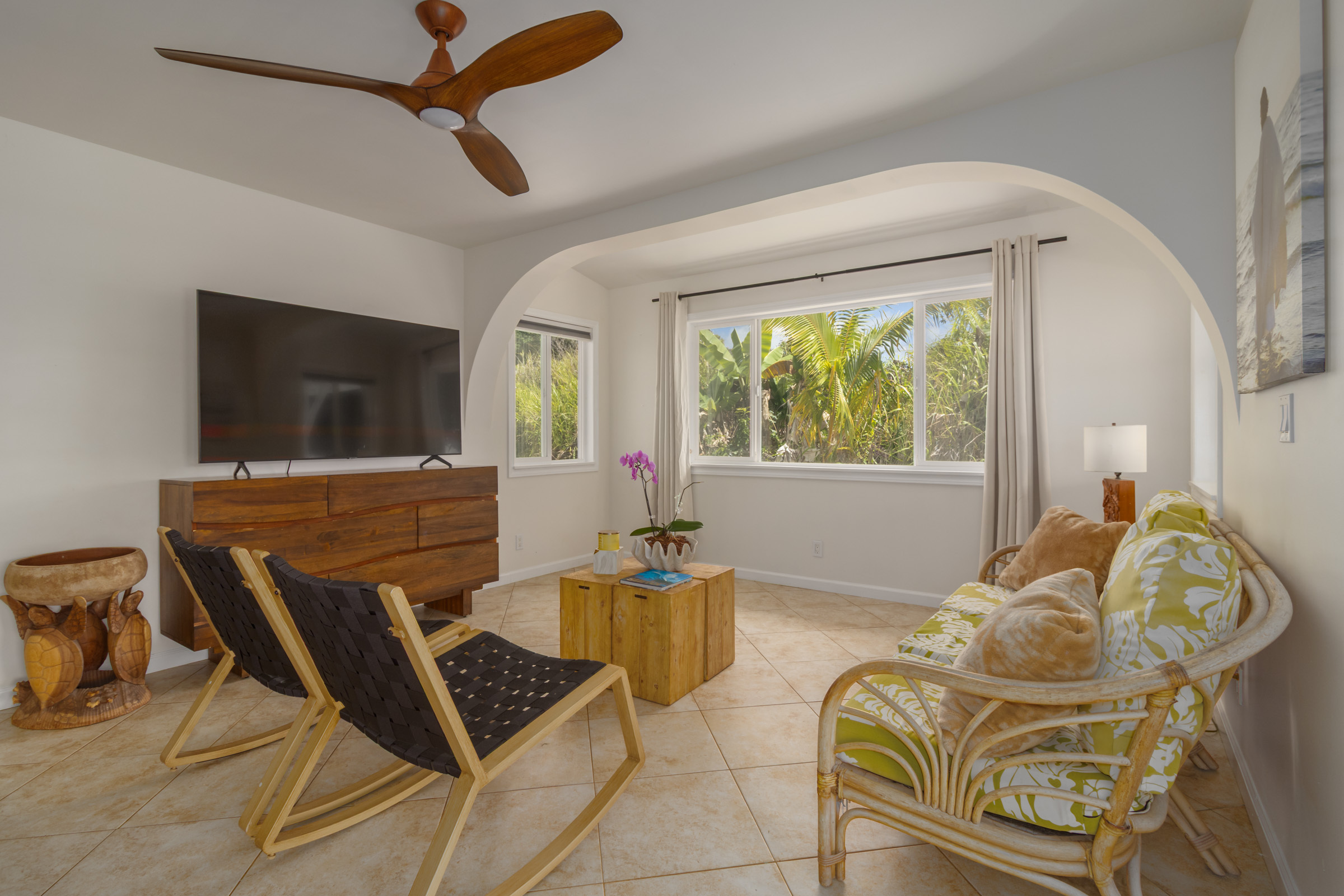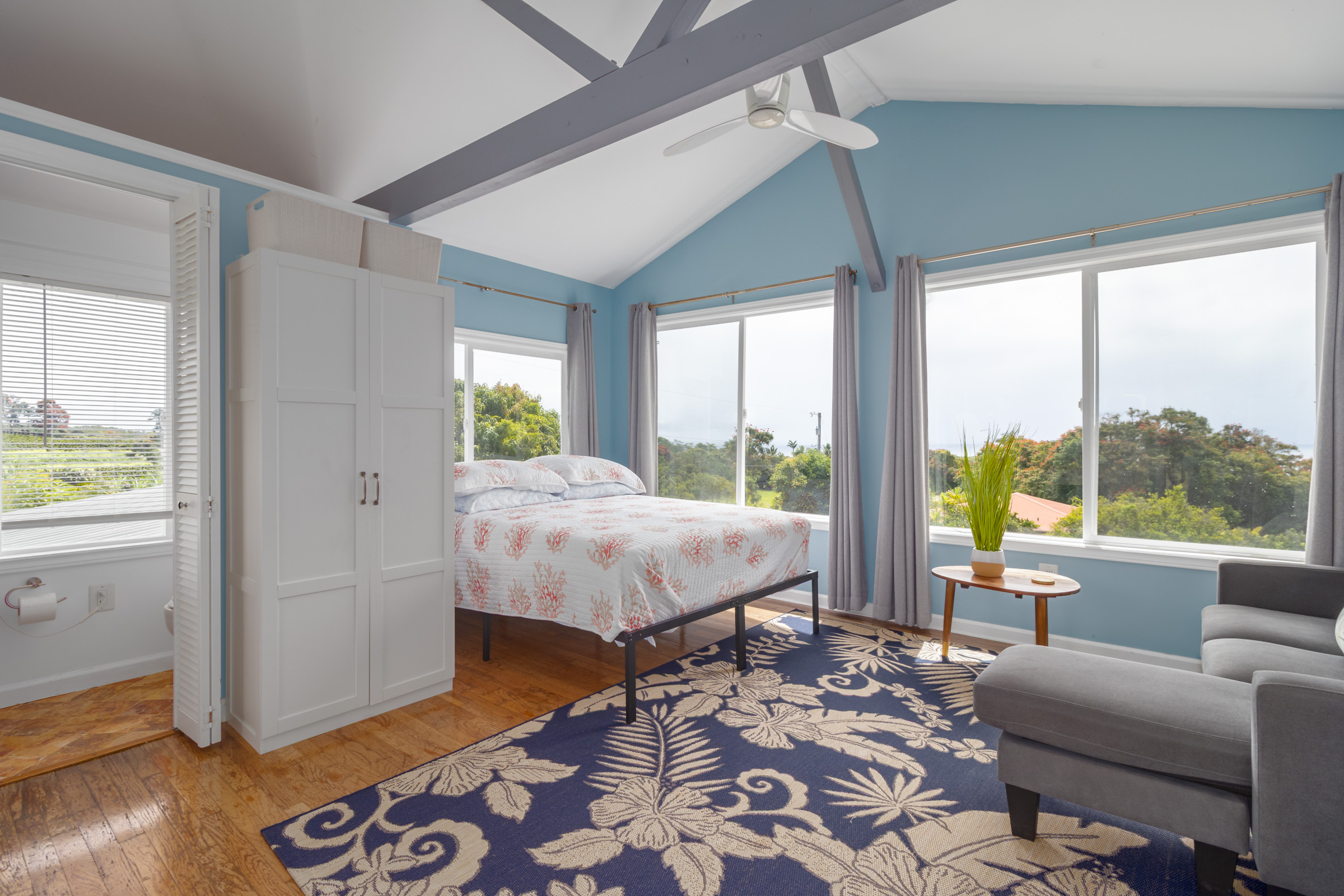 Nestled on 1.33 acres, this custom 3-bedroom, 3-bath home offers stunning ocean views and abundant natural light throughout. From the Brand new open kitchen and living areas on the main level to the third-floor studio, every space feels bright and welcoming. Conveniently located less than 10 minutes from downtown Hilo, you’ll have quick access to shops, restaurants, the airport, and the hospital. The property features county water and electricity, sits on a private paved road, and is just minutes from the popular Honoli'i surf spot. The fertile land is perfect for gardening and is already home to a rich variety of fruit trees including avocado, mango, coconut, soursop, pineapples, multiple citrus types (such as Tahitian lime and lemons), papaya, kefir, kumquat, starfruit, lychee, rambutan, longan, and more. An outdoor patio just off the kitchen is ideal for barbecues and entertaining, with plenty of yard space for everyone to enjoy. Don’t miss the chance to experience this tropical haven.
