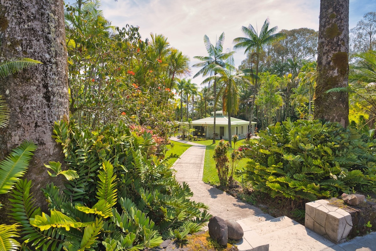 The property features a modest 1 bedroom, 1 bath home that features an open floor plan and full hip design. It was originally intended to be the guest cottage while the primary home would be built elsewhere on the property. A detached pagoda style outdoor lanai is ideal for entertaining or simply enjoying Hawai‘i’s year-round tropical climate. The estate-style landscaping features mature ornamentals, a variety of palms, native plants, and a greenhouse perfect for propagation, storage or specialty crops.