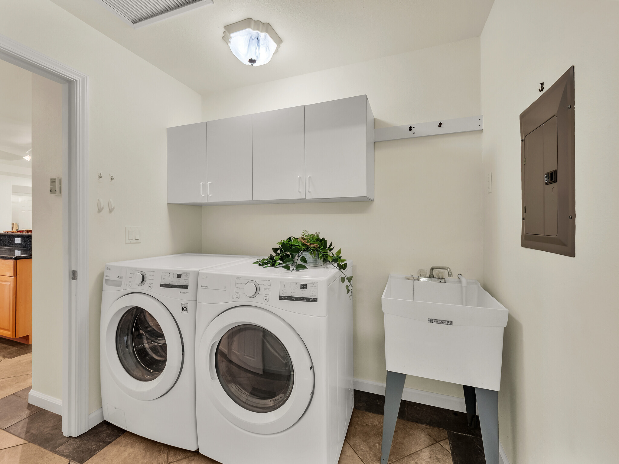 From the two-car garage, enter through the laundry room directly into the kitchen for smooth everyday access. The garage features automatic doors, a storage closet, and painted floor.