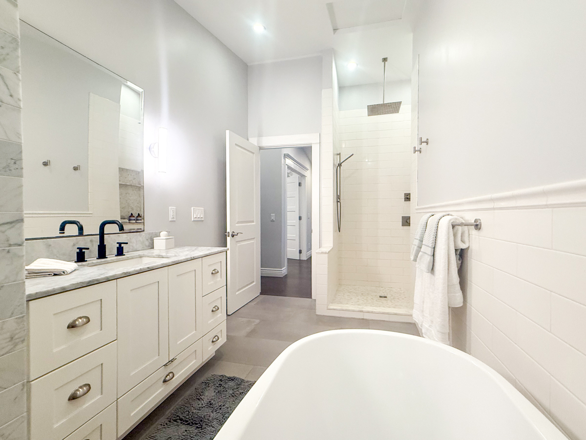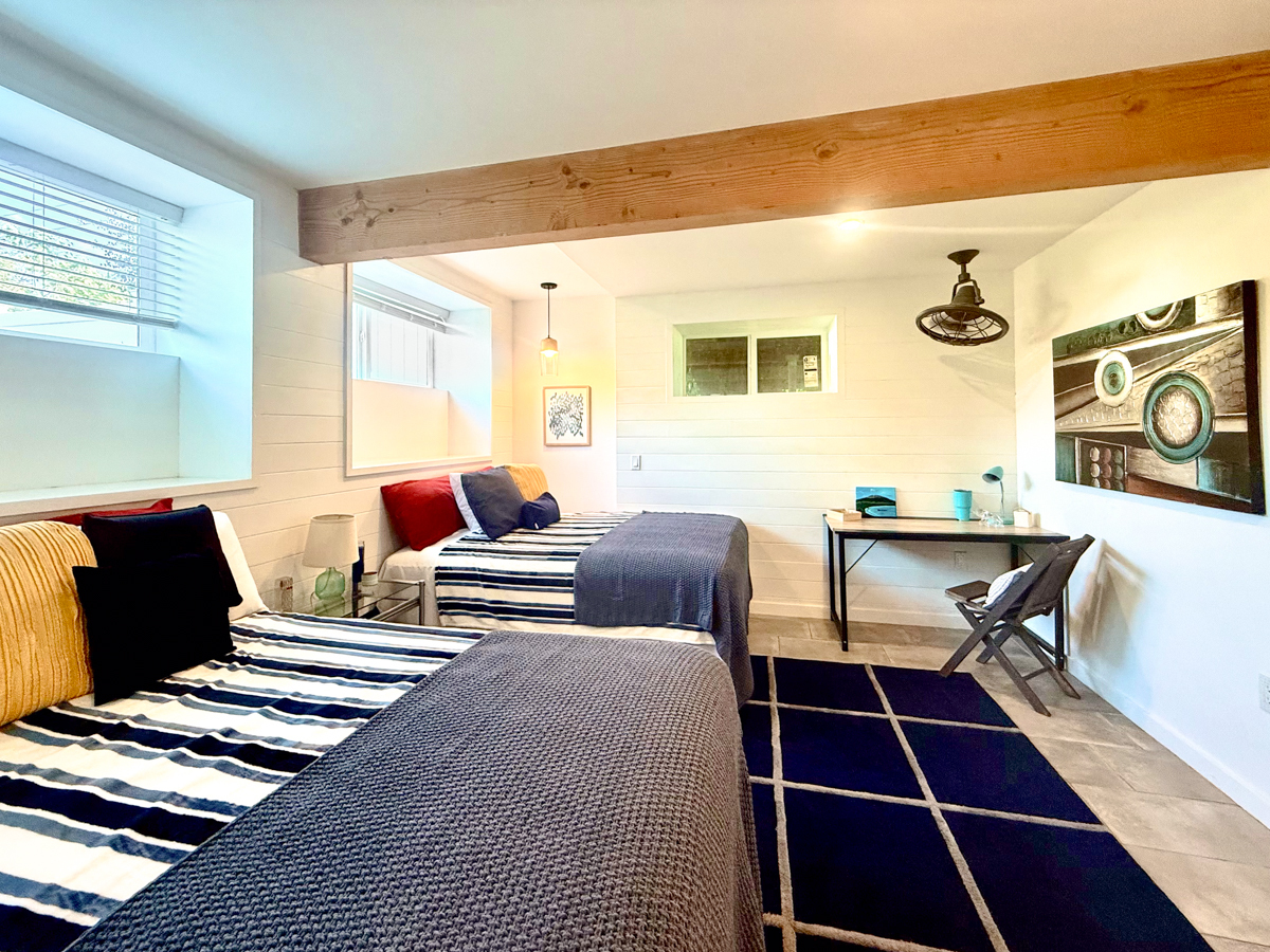 The lower level features an enormous bedroom which easily holds 2 queen beds, a laundry room w/mud-sink & new front-load washer & dryer. The lower-level bathroom shines with a huge wet-room style shower, seamless glass partition & standalone vanity. An extra-large unfinished room w a separate entrance is ready for your customization to suit any need - bedrooms, Ohana, Fam room?