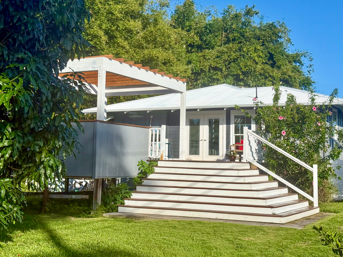 Meticulously renovated 3 bd, 2 ba home located in the sought-after Paukaa Village, situated above Honolii. This turn-key property boasts numerous upgrades & luxury features. A welcoming front porch leads to a spacious foyer...the magnificent culinary kitchen is a extraordinary highlight, featuring a cool concrete island with an inset sink & casual dining bar w/overhead glass pendant lighting, an abundance of full-height cabinets framed in grey-hue subway tiles, a six-burner gas cooktop w/an overhead chef's hood, built-in wine fridge, & finger-printless stainless fridge, and a unique open wood organizer with spinning shelves is an added treat for any chef! Open great room with gorgeous espresso LVP flooring, designer soft palate paint and custom moldings, equipped w/split AC, designer ceiling fan & hard wired for your media devices. French doors walk out to the massive entertainment Trex deck, perfect for soaking in the views & stunning sunsets above Honolii Bay.