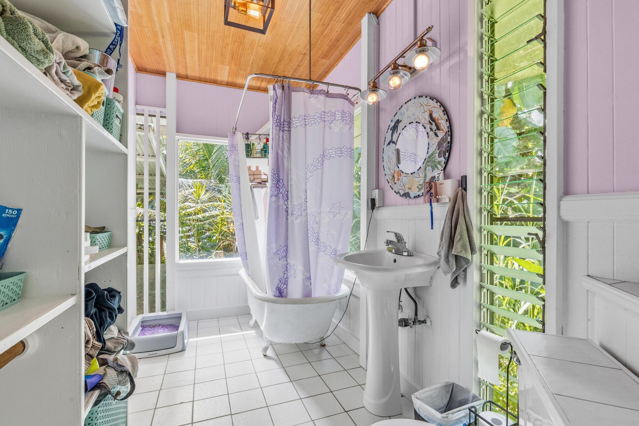 Tucked into a lush, tropical setting with ocean views, forest backdrops, and the tranquil Pahe‘ehe‘e Stream running the length of the lot, this property delivers the full Hawai‘i experience. Both homes are thoughtfully spaced for maximum privacy, and each unit offers its own lanai with elevated, treehouse-like ambience.