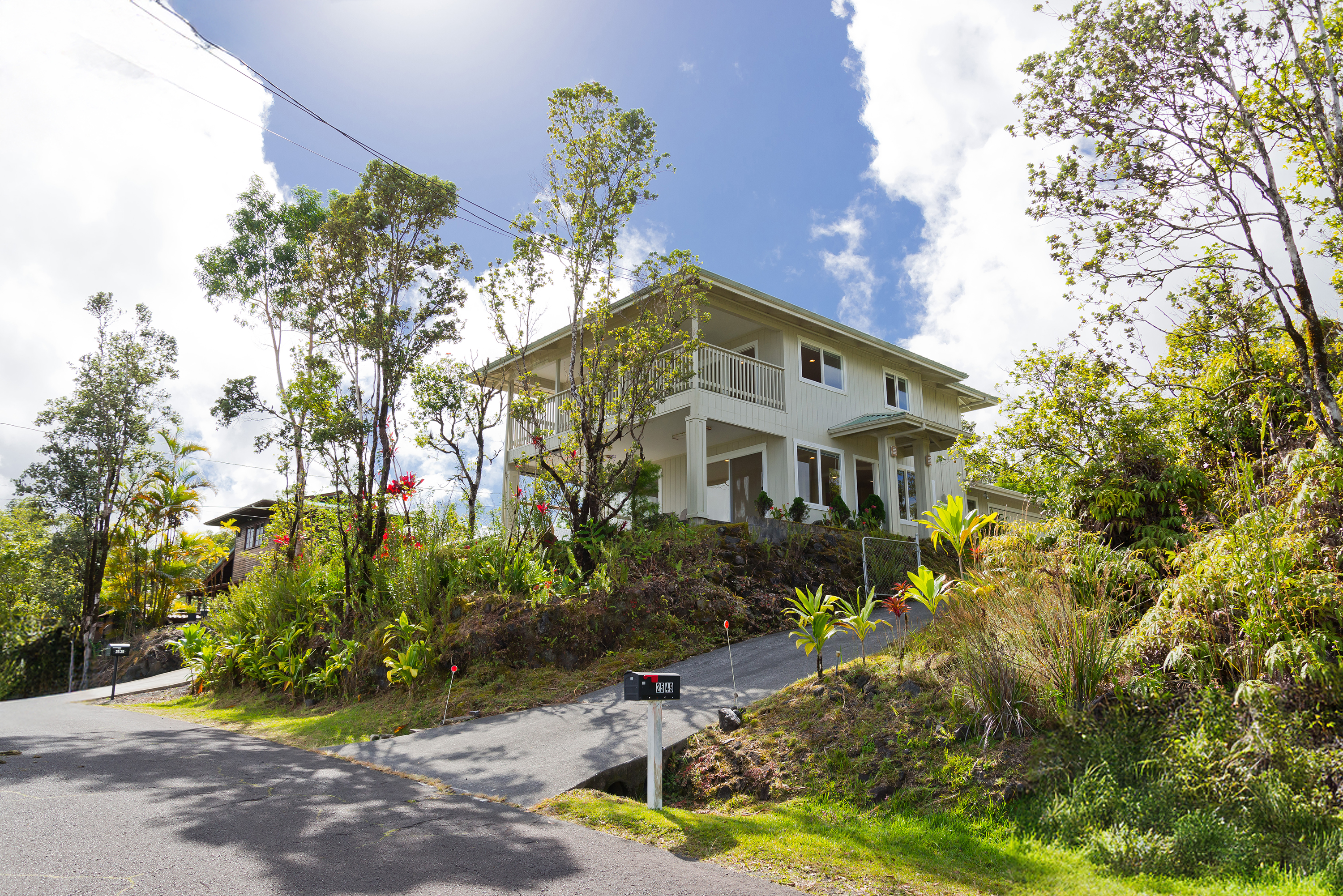Located at the highest point in Kaumana City, this 3-bedroom, 2-bathroom home perfectly blends modern comfort and the beauty of Hawai'i's natural surroundings. Spanning 1,628 square feet, this well-maintained residence is ideally situated at a 2,000-foot elevation, providing cool breezes, panoramic ocean and mountain views, and year-round comfort without the need for air conditioning.