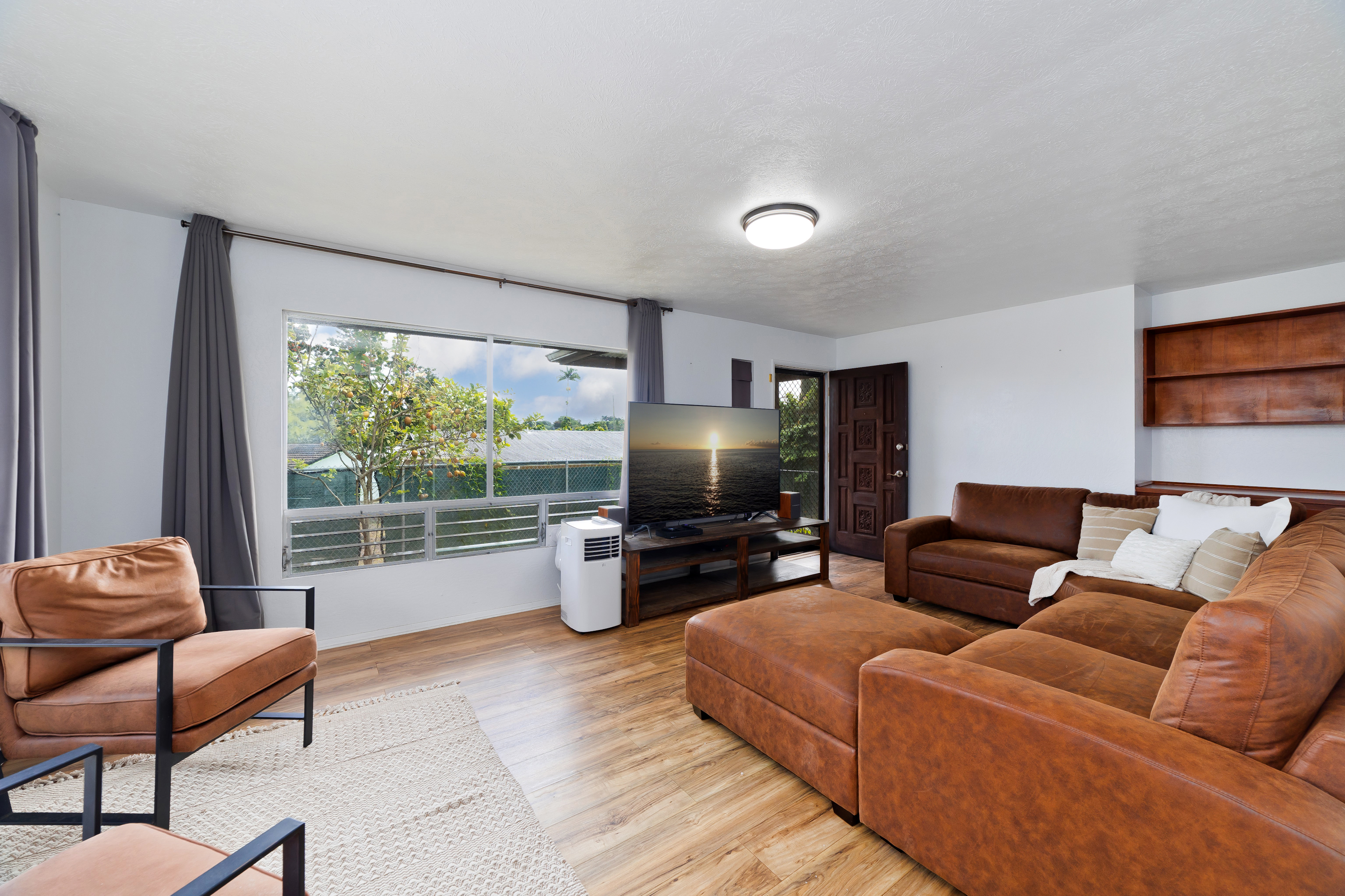 Charming 3-Bedroom Home on Kukuau — Fully Fenced Oasis with Fruit Trees & Modern Upgrades Welcome home to this beautifully updated 3-bedroom, 2.5-bath residence located in one of Hilo’s most convenient neighborhoods–just minutes from the hospital and police station. Thoughtfully designed for comfort and function, this property offers a perfect blend of privacy, style, and tropical living. Step inside to find new flooring throughout most of the home and a bright, spacious kitchen featuring brand new quartz countertops and ample cabinet storage. The open layout flows easily into the living spaces and out to the private, shaded lanai–ideal for relaxing or entertaining. Enjoy r-38 insulation installed in the attic space of the home except above the carport. Enjoy the island lifestyle outdoors with a refreshing outdoor shower, two separate fenced yard areas, and a mature mango tree providing generous shade. The lush yard is filled with fruit-bearing trees, including lime, starfruit, pear, lemon, mango, avocado and much more! Additional highlights include a fully fenced property, electric front gate opener for easy access, and plenty of room for gardening, pets, or play. This home truly captures the essence of comfortable Hilo living–convenient, private, and surrounded by island abundance. Full Fruit tree list: Abiu Z-4, Avocado trees, Biew Kiew Longan, Brazil Plum, Brazilian Cherry, Ma’afala Breadfruit, Grapefruit: flame/star ruby, Variety of Orange trees: valencia, kau, moro, cara, lane late, Starfruit Kari, Tahitian Lime Seedless, Pink Eureka Lemon, Rollinia, Mountain Apple, Pakistan Fruiting Mulberry Cookes, Ice Cream Bean, Jaboticaba, Kaimana Lychee, Tangerine Satsuma, Large Mango Tree, Mango: Nam Doc Mai, Pomelo: Ben Hu/Chandler, Soursop, Alano Sapodilla, 20th Century Asian Pear, Ziman Pink Jackfruit, Mulberry!