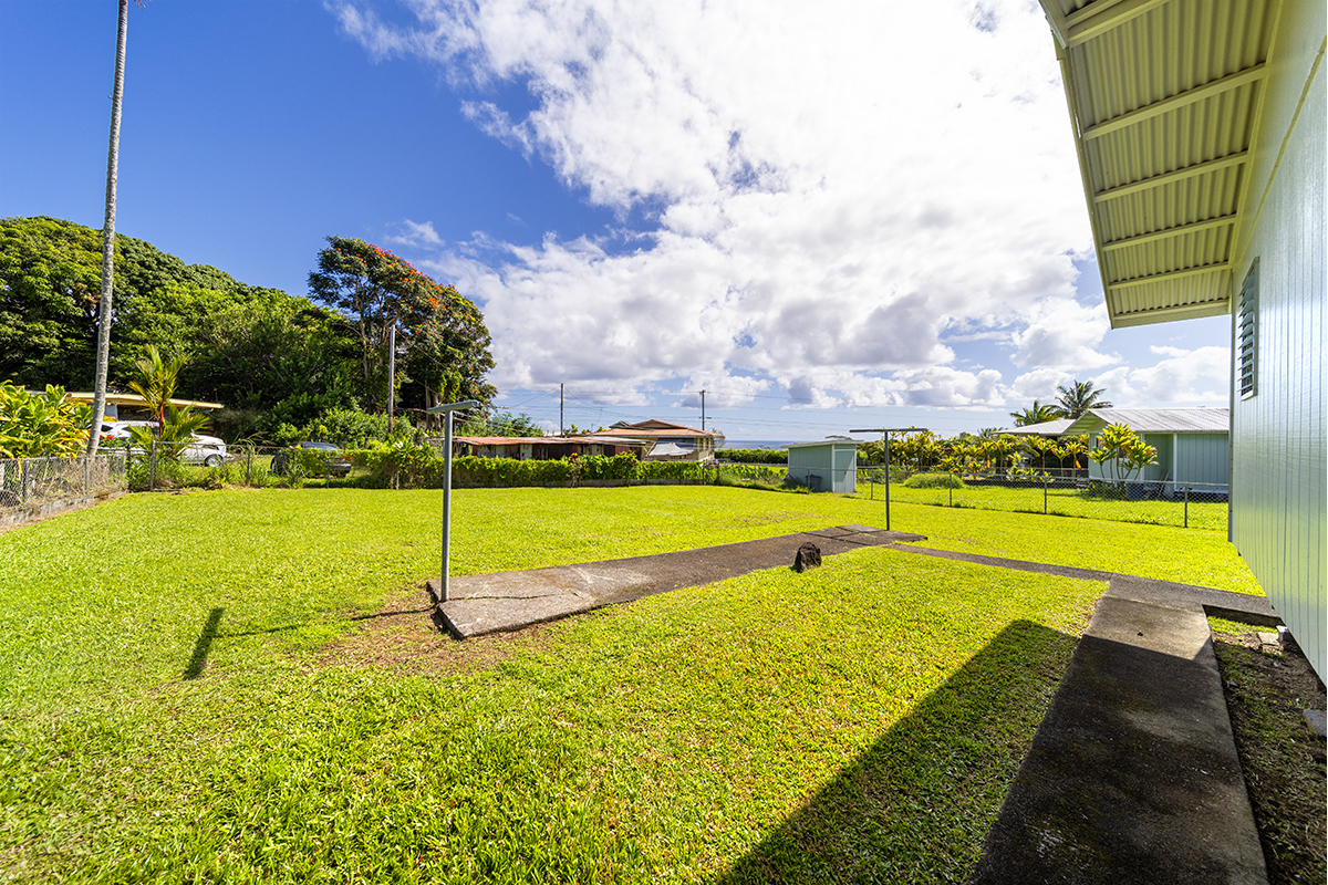 Perfect starter home with beautiful ocean views and views of Mauna Kea. Located on Ahua Street in the historic sugarcane town of Pepeekeo, this property offers a peaceful, tight-knit community surrounded by lush greenery along the scenic Hamakua Coast. Enjoy a quieter pace of life while remaining just a 7-minute drive to Hilo town, close to the hospital, shopping, dining, schools, and everyday conveniences. The property is situated within the Hilo High School district. This home offers a great opportunity to add your personal touch with cosmetic updates such as flooring and interior finishes. Additional features include a solar hot water heater, paved road access, and generous carport storage with multiple closet areas. Pepeekeo is known for its strong sense of community, cooler trade winds, and proximity to waterfalls, coastal recreation, and scenic drives, offering a rare balance of rural tranquility and accessibility. Information herein, while deemed reliable, may contain inaccuracies and is provided without warranty or guarantee of any kind. Buyer and Buyer’s Agent to perform due diligence and verify all material facts, including availability of utilities. Property sold As-Is, with no guarantees or warranties.