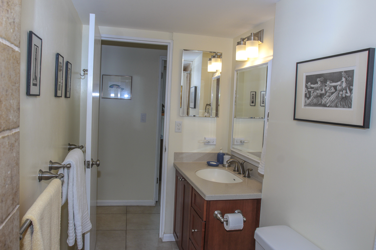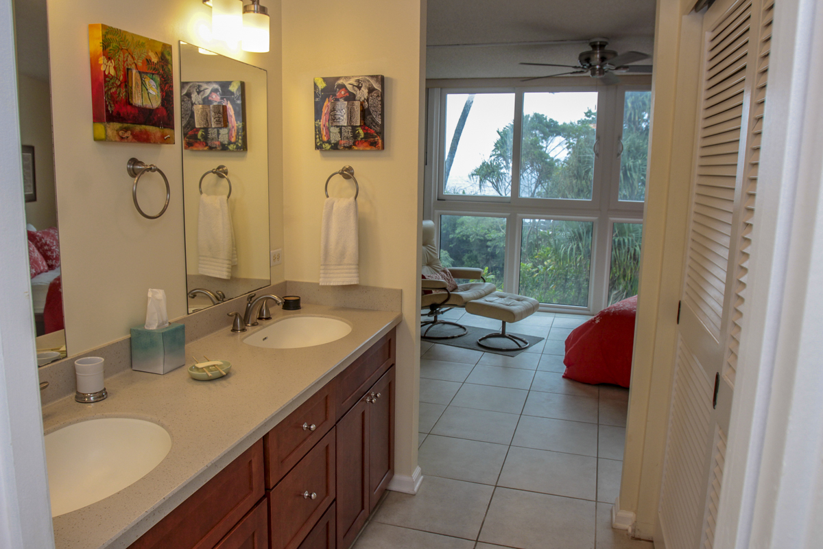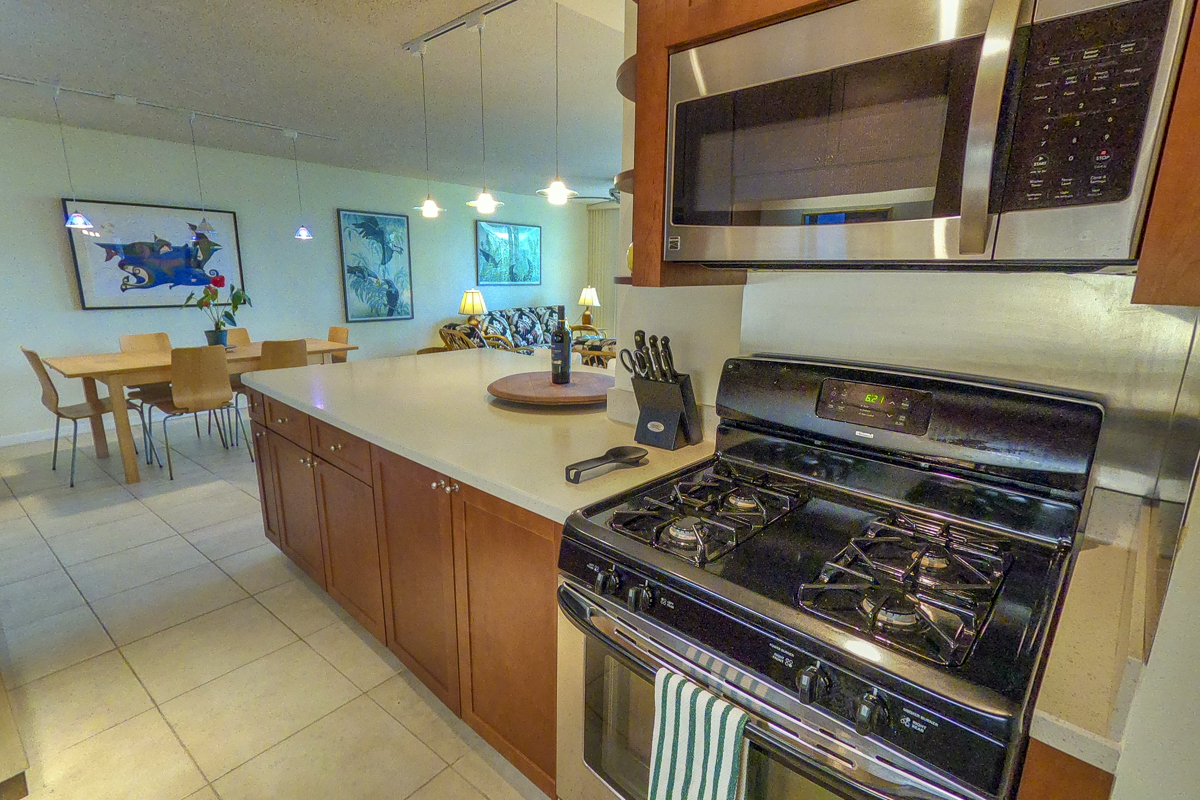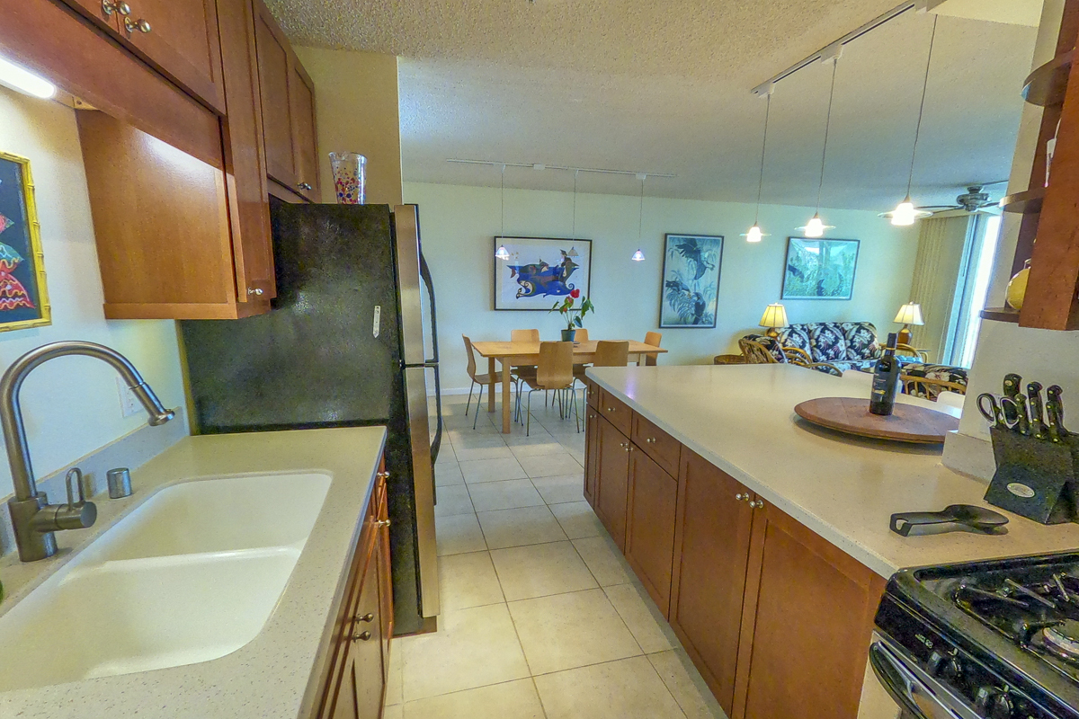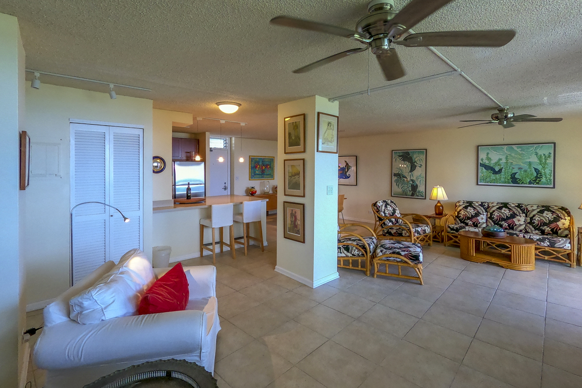 Ocean Dreaming? Make your dreams come true and set sail on a new adventure with this spectacular, ocean view unit. Whether relaxing on the spacious lanai, or lounging in bed, views of the ocean greet you, framed by palms and the community garden. Enjoy the breeze and soundtrack of the ocean waves, lookout for seasonal whales and dolphins, and lighted cruise ships gliding by. Prime location is adjacent to Richardson Beach Park on one side and Hawaii County land on the other. Ocean access for all types of watersports at Richardson Beach. Fully renovated, this unit is sure to please. Seller put thought and care into every aspect. Formerly a two-bedroom, the unit has been converted into a one-bedroom creating open living, dining & kitchen. Bright and airy, you can enjoy the flow and view throughout. The kitchen boasts a peninsula style, galley kitchen setup with extra wide counter space, bar seating, Thomasville cabinets, and full array of appliances. The bedroom features enormous slider windows, an en suite bath w/dual vanities, and custom tile shower. Amenities and Info: - Fully renovated including inside flooring, fixtures, cabinetry, windows, lanai deck and rails, doors & bathrooms. - Fully furnished. - Corian counters in kitchen & bathrooms. - Custom blinds, approx. five years old. - GE Washer/Dryer combo - new in 2024. - Frigidaire dishwasher - new in 2025. - Gas stove & dryer. - Track lighting, Hunter brand ceiling fans. - Multiple closets throughout unit. - All assessments paid in full, and all Association required & recommended updates are complete to date. - HOA controlled security monitoring. - Maintenance fee covers the electric, gas, water, pest, internet & association insurance. HOA provides hot water. - 2nd floor w/easy access to stairs and assigned parking stall, #18 in immediate proximity. - Inground pool. - Close to beach parks, snorkeling, shopping, dining and airport.