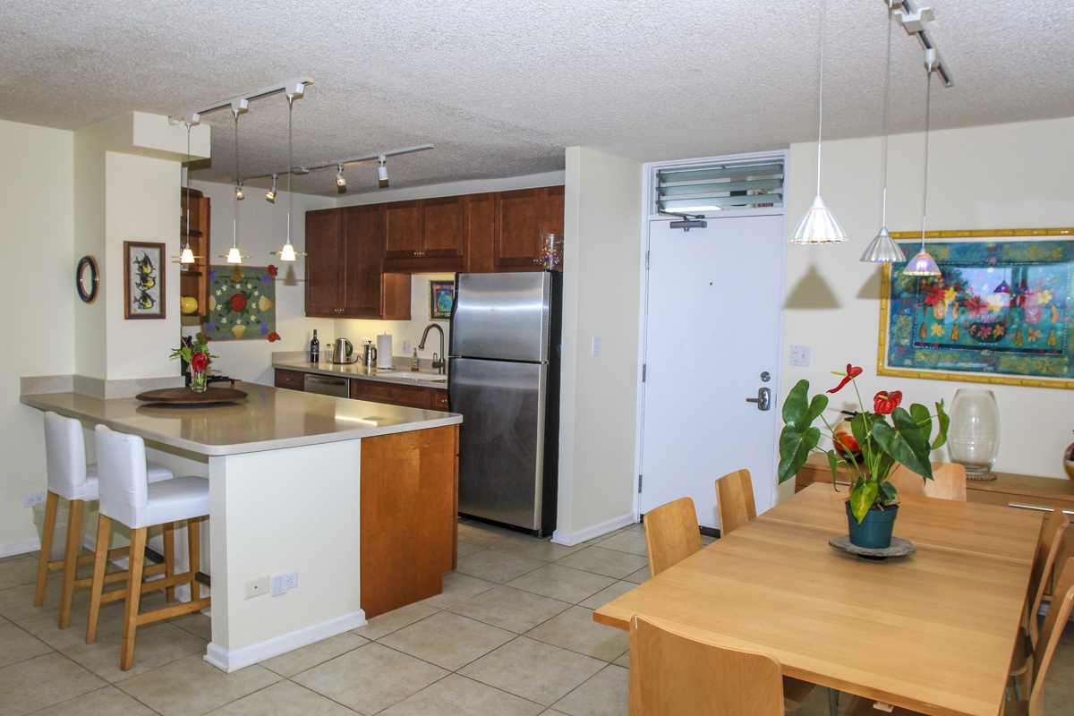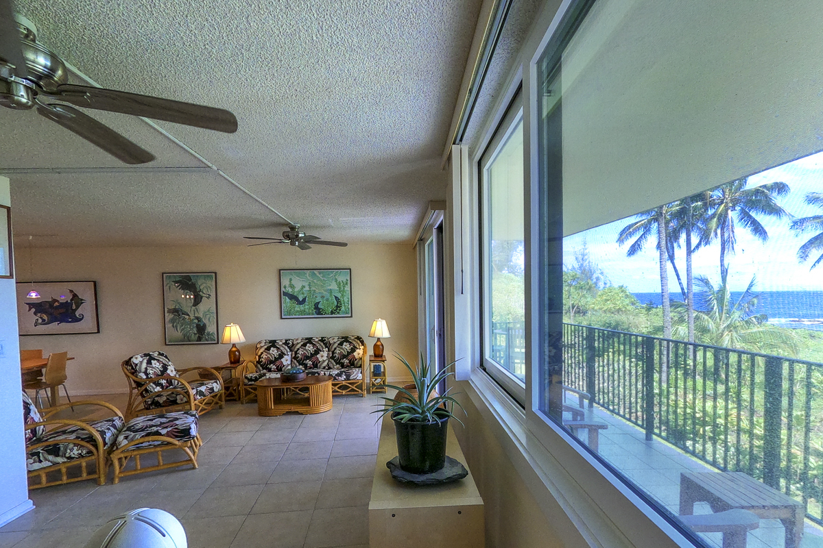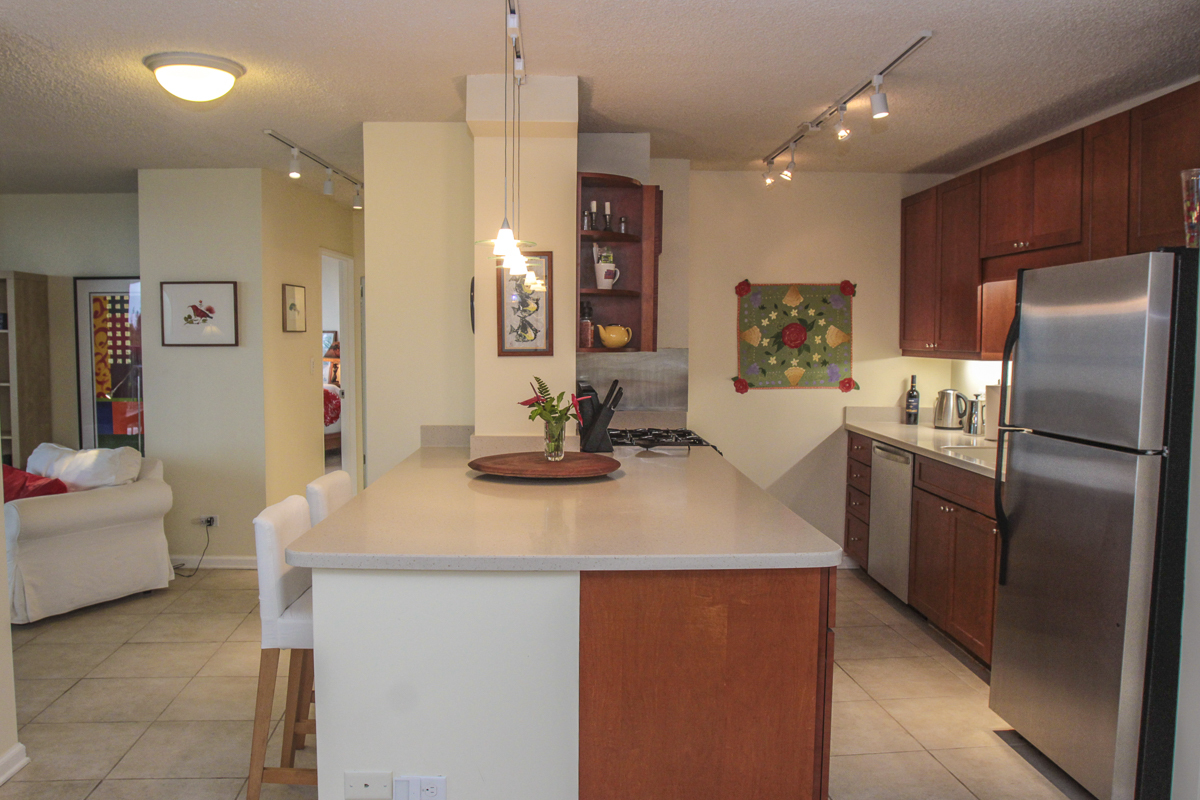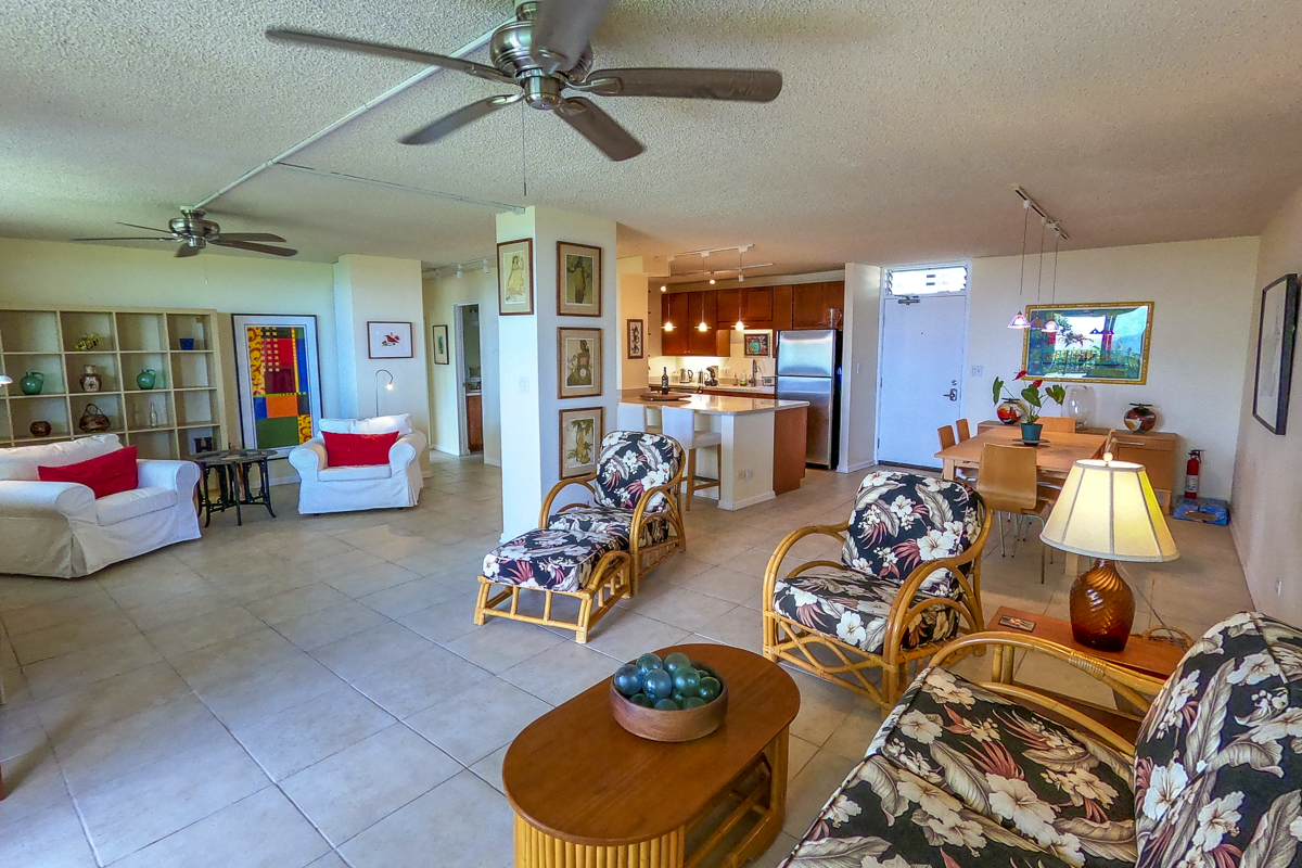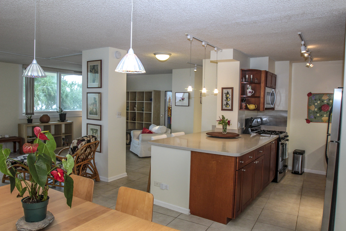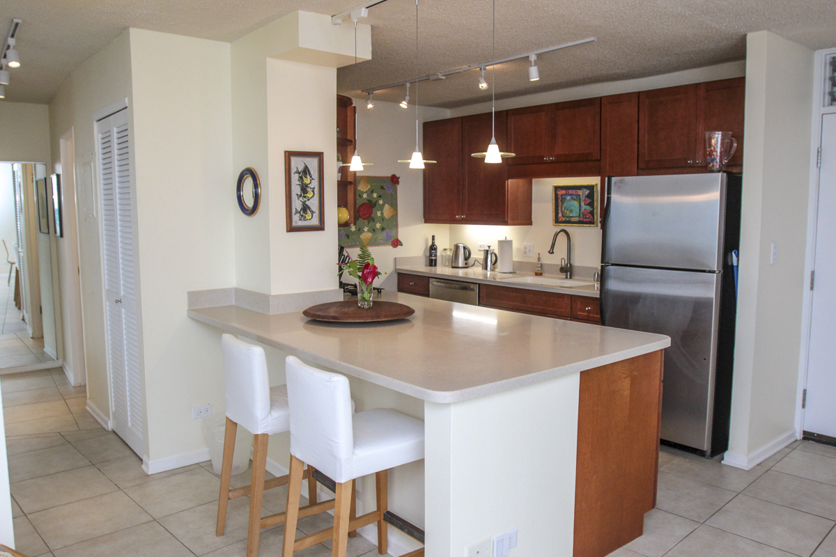 Ocean Dreaming? Make your dreams come true and set sail on a new adventure with this spectacular, ocean view unit. Whether relaxing on the spacious lanai, or lounging in bed, views of the ocean greet you, framed by palms and the community garden. Enjoy the breeze and soundtrack of the ocean waves, lookout for seasonal whales and dolphins, and lighted cruise ships gliding by. Prime location is adjacent to Richardson Beach Park on one side and Hawaii County land on the other. Ocean access for all types of watersports at Richardson Beach. Fully renovated, this unit is sure to please. Seller put thought and care into every aspect. Formerly a two-bedroom, the unit has been converted into a one-bedroom creating open living, dining & kitchen. Bright and airy, you can enjoy the flow and view throughout. The kitchen boasts a peninsula style, galley kitchen setup with extra wide counter space, bar seating, Thomasville cabinets, and full array of appliances. The bedroom features enormous slider windows, an en suite bath w/dual vanities, and custom tile shower. Amenities and Info: - Fully renovated including inside flooring, fixtures, cabinetry, windows, lanai deck and rails, doors & bathrooms. - Fully furnished. - Corian counters in kitchen & bathrooms. - Custom blinds, approx. five years old. - GE Washer/Dryer combo - new in 2024. - Frigidaire dishwasher - new in 2025. - Gas stove & dryer. - Track lighting, Hunter brand ceiling fans. - Multiple closets throughout unit. - All assessments paid in full, and all Association required & recommended updates are complete to date. - HOA controlled security monitoring. - Maintenance fee covers the electric, gas, water, pest, internet & association insurance. HOA provides hot water. - 2nd floor w/easy access to stairs and assigned parking stall, #18 in immediate proximity. - Inground pool. - Close to beach parks, snorkeling, shopping, dining and airport.