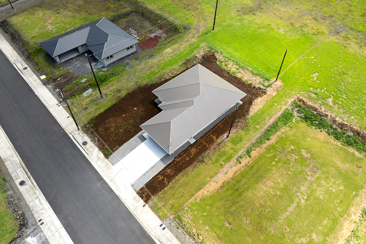 Don't miss this rare opportunity to own a brand-new modified HPM home in Waiakea just 3 miles from Hilo's shops, restaurants, and local attractions. Enjoy refreshing ocean and mountain breezes, nearby surf spots and year-round river access in this peaceful island countryside setting. Thoughtfully designed to complement its surroundings, this elegant home sits on a concrete foundation and comes complete with modern features and island inspired charm. The open lanai provides this home with a fantastic feel with the added benefit of enjoying cool mountain breezes. Set up some tables and invite the gang. Or just enjoy a peaceful quiet dinner looking at the slopes of Mauna Kea. The total square footage of 2371 sq ft. makes this a fantastic deal at $350 per square feet for a new home.
