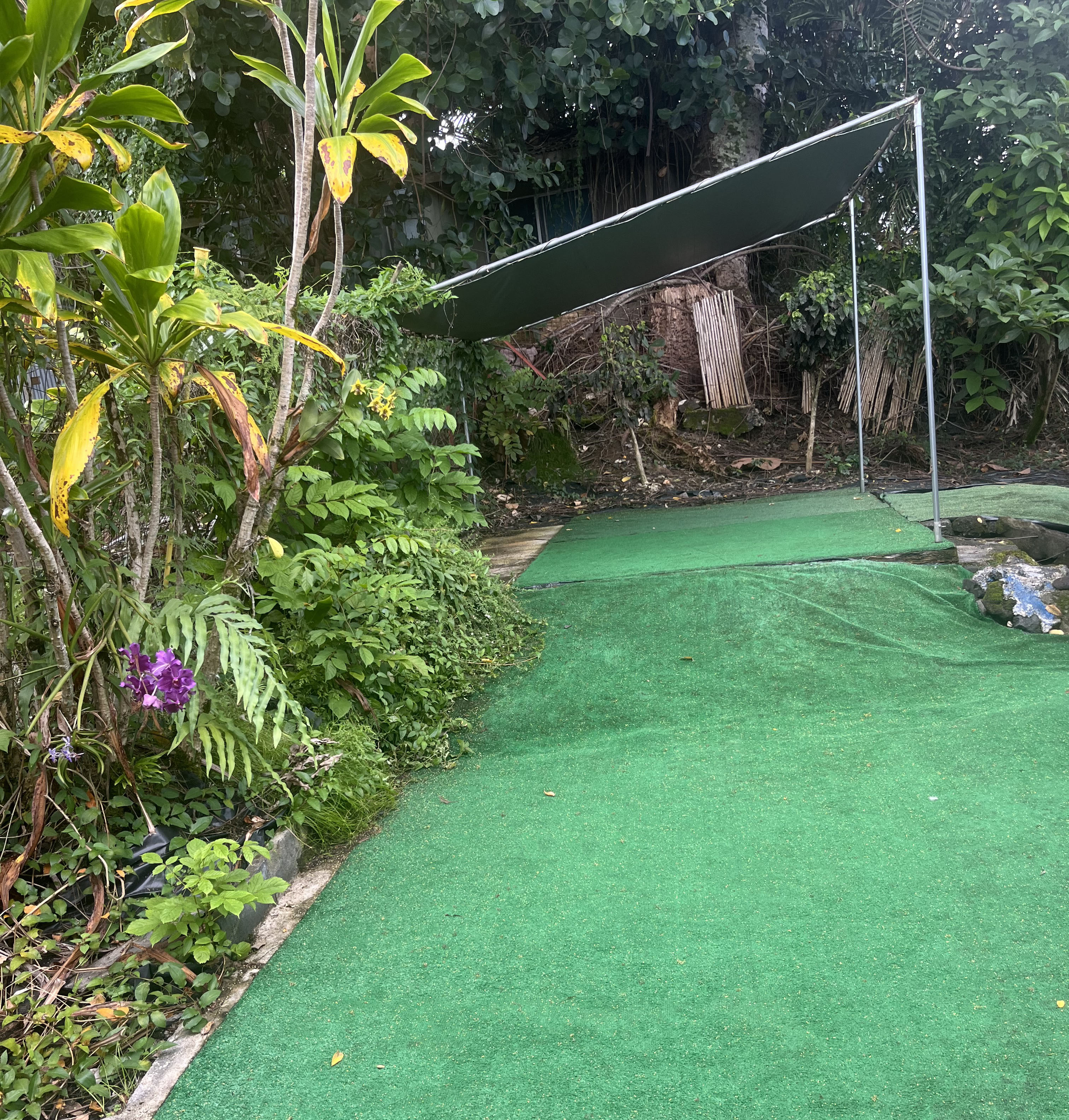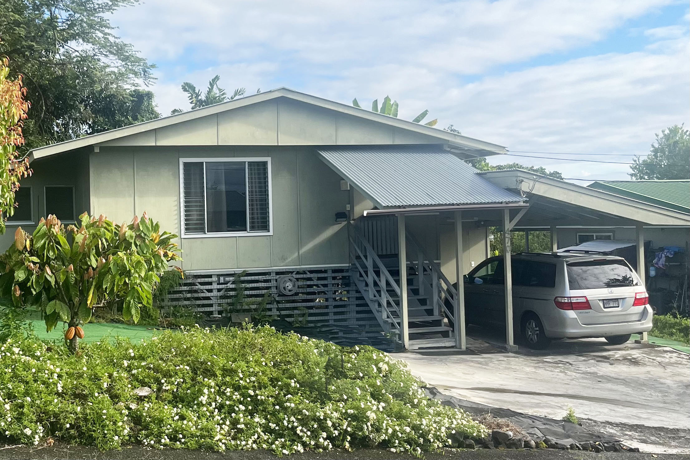 Outside there’s lots of fruit and a low maintenance yard. You can enjoy Navel oranges, Papaya, Avocado, Yuzu, Coffee, Dragon Fruit, Cacao, Pineapple and Aloe. Hilo is in a tropical rainforest, so everything grows fast, even the weeds, so most people have to pay over $100 a month or work in the garden to control the weeds, but not here.