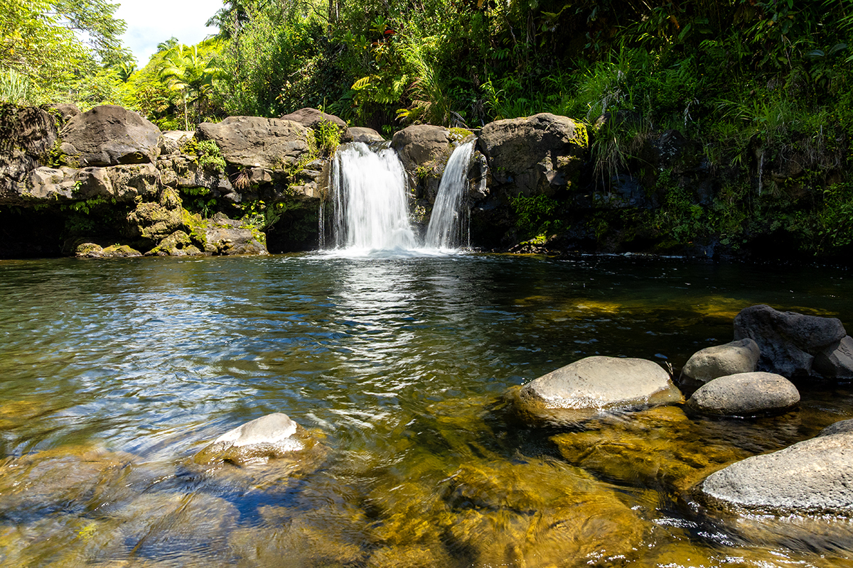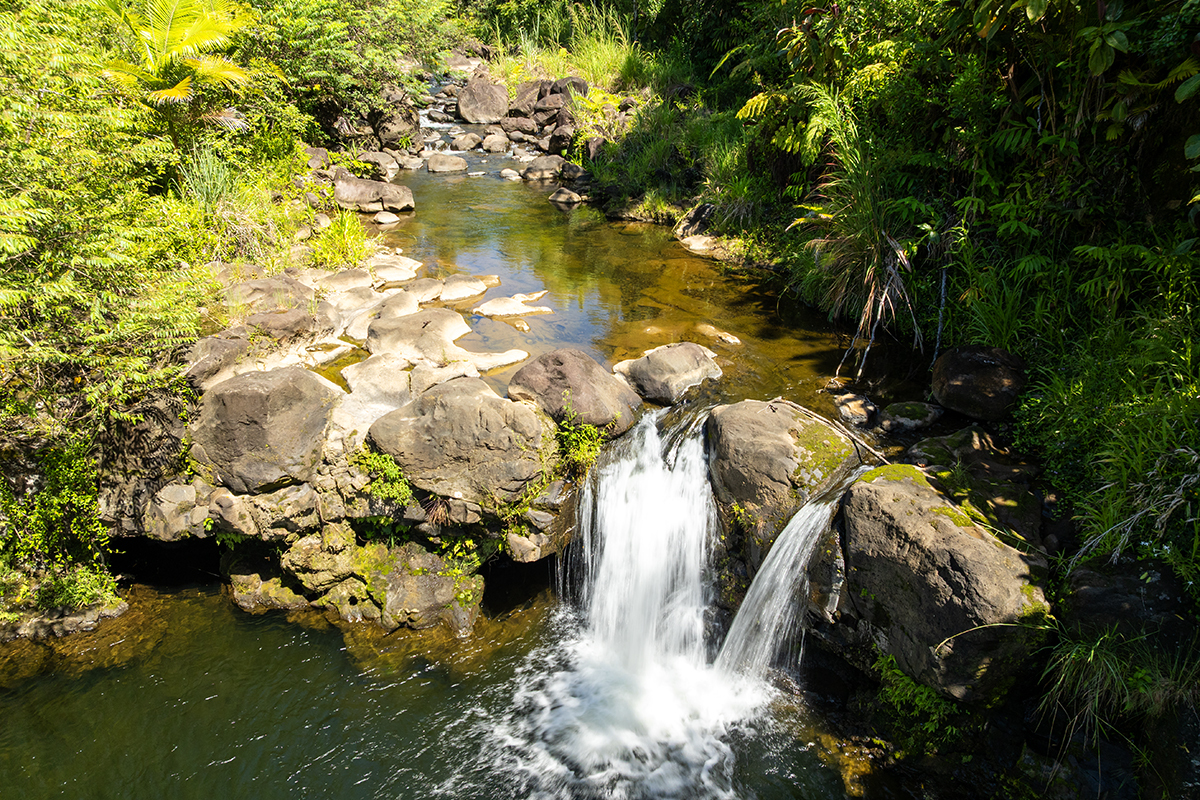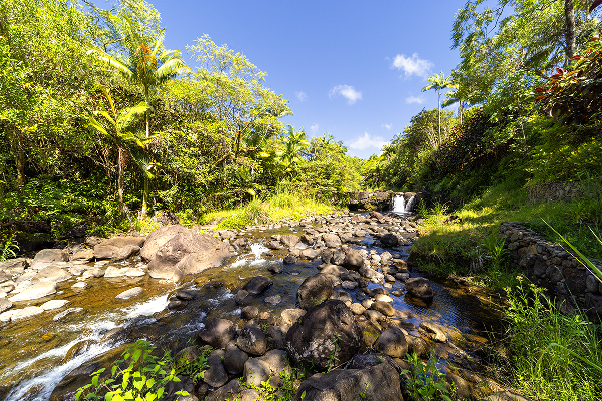 This extraordinary 20-acre estate is embraced by two freshwater streams: a spring-fed creek along its upper edge and the year-round Hanawi Stream, where cascading waterfalls tumble into a crystal-clear natural pool.