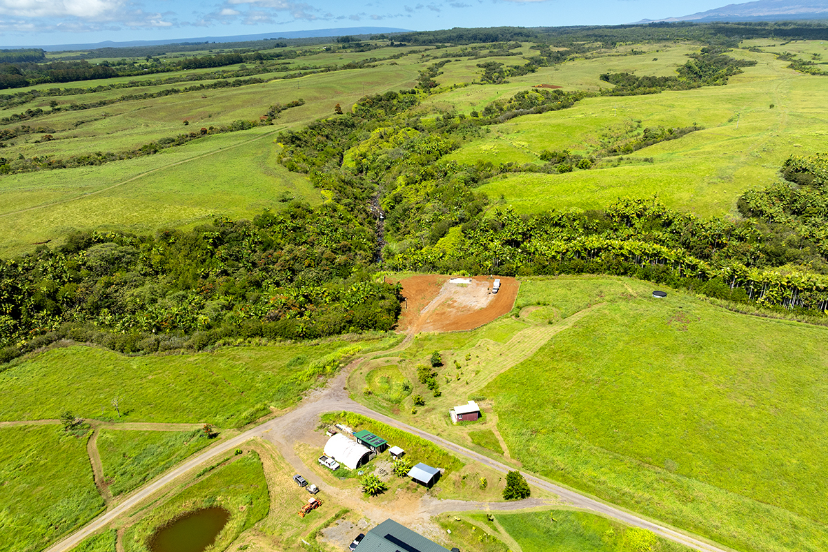 Several prime building sites command unobstructed vistas of the sapphire Pacific, Hilo Bay, multiple waterfalls, and the snow-capped summit of Mauna Kea. A dramatic promontory offers panoramic upriver views into the lush gorge. Included in the sale are fully permitted plans for an exquisite multifaceted post & pier residence, artfully sited to showcase both the waterfalls and the bay, perched elegantly on the slope’s edge.