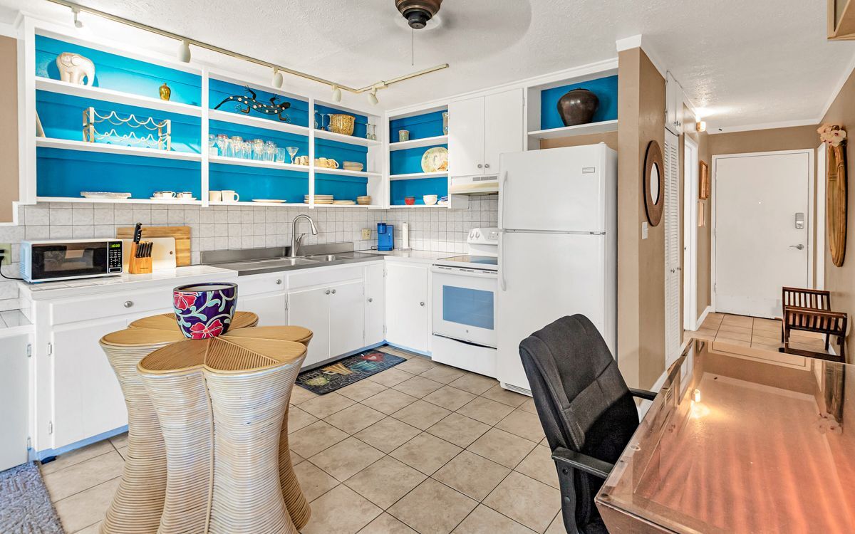 You really don't feel like you're in an apartment once inside this air conditioned unit. Views outside look to greenery in the front of the building with a small covered lanai area for outdoor seating. Hawaiian Telcom provides High Speed internet as part of the HOA fees. The unit comes completely furnished as it has been used as a vacation rental in the past......just bring your toothbrush and move in today! There's even boogie boards and beach chairs for you. Equipped with a Queen bed and 2 singles, living and dining furniture, all tastefully done. The 2nd 1/2 bathroom is a plus whenever you have a 2 bedroom unit.