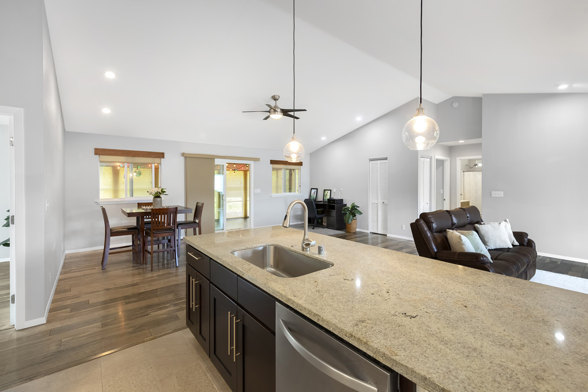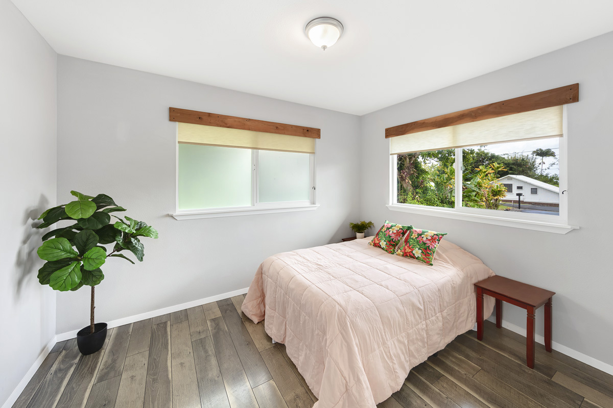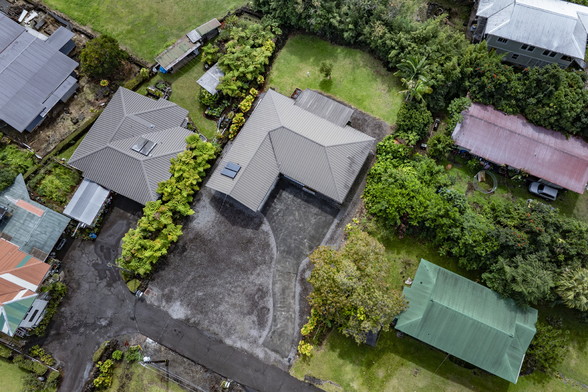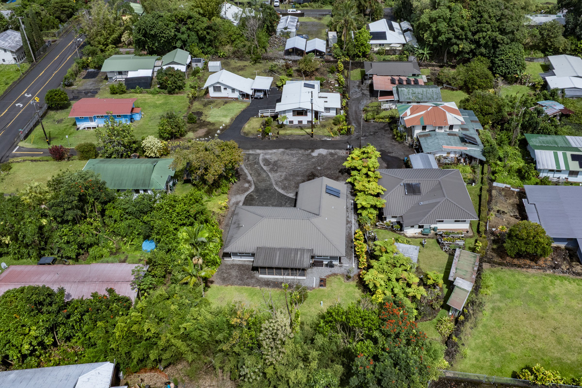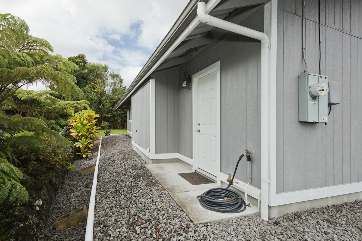 Ideally located near Hilo Hospital and De Silva School, this home offers easy access to the Mohouli Extension; putting Saddle Road, Downtown Hilo, and the University just minutes away. Lightly lived in and exceptionally well cared for, the home sits near the end of a quiet street surrounded by long-time neighbors, creating a peaceful and welcoming setting. The generously sized lot features a low-maintenance yard and paved driveway, perfect for a busy lifestyle. Even better, the home is being sold fully furnished with newer, lightly used pieces; making move-in simple and stress-free. Inside, you’ll find a popular split floor plan paired with a modern, open-concept living space. The kitchen is both stylish and functional, featuring solid surface countertops, stainless steel appliances, a walk-in pantry, and a side bar complete with a drink fridge, ideal for entertaining or unwinding after work. Vaulted ceilings enhance the airy feel and lead to a private, enclosed rear lanai for added living space. Two guest bedrooms and a full guest bath are located on one side of the home, while the primary suite is thoughtfully tucked away on the other. The primary bedroom includes a walk-in closet and an ensuite bathroom with a separate shower and soaking tub. Additional conveniences include a laundry area and extra storage located in the attached garage. The home has solar water heating and a septic system for wastewater. A great floor plan for a home that is less than 10 years old and barely broken in.