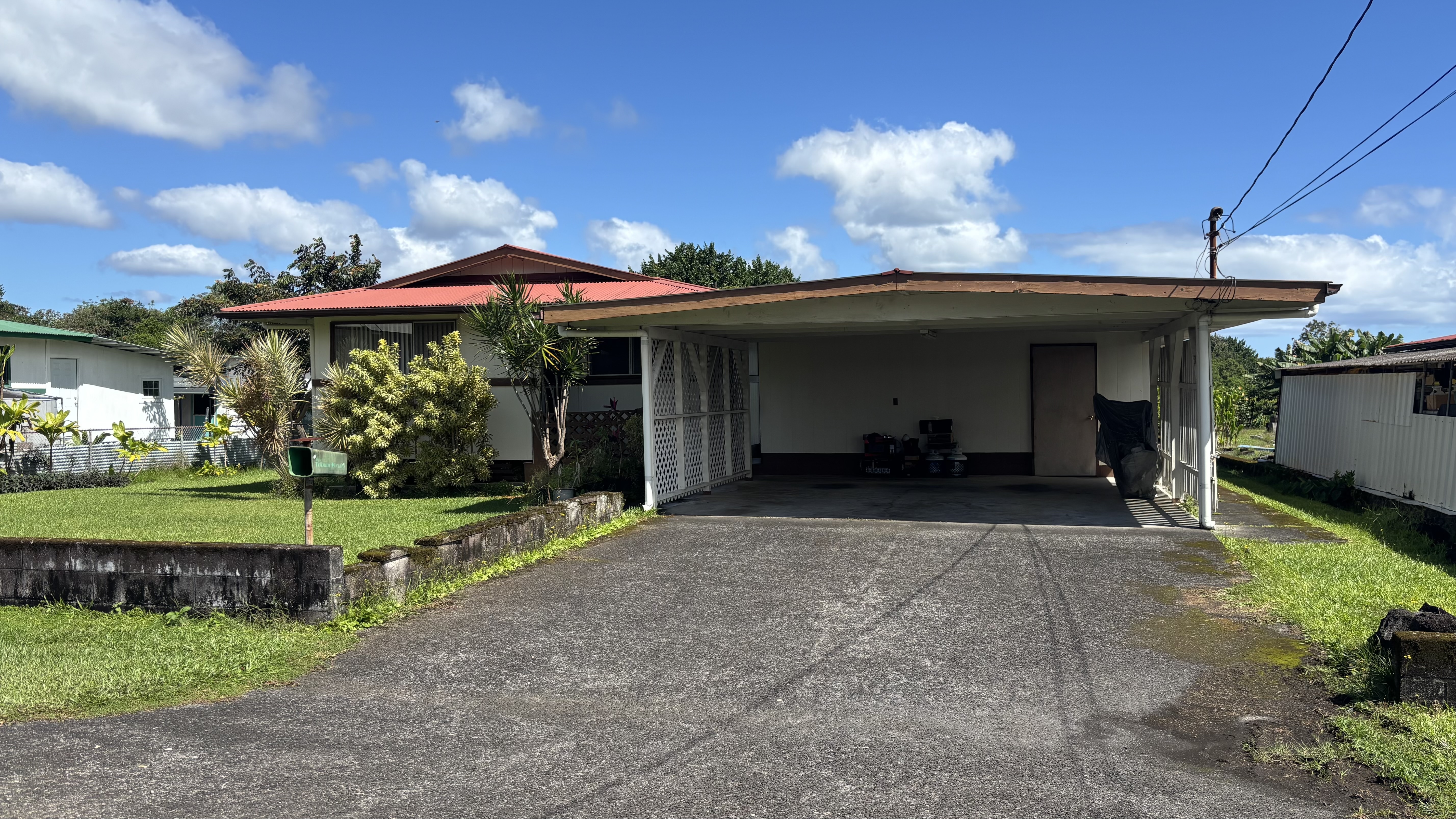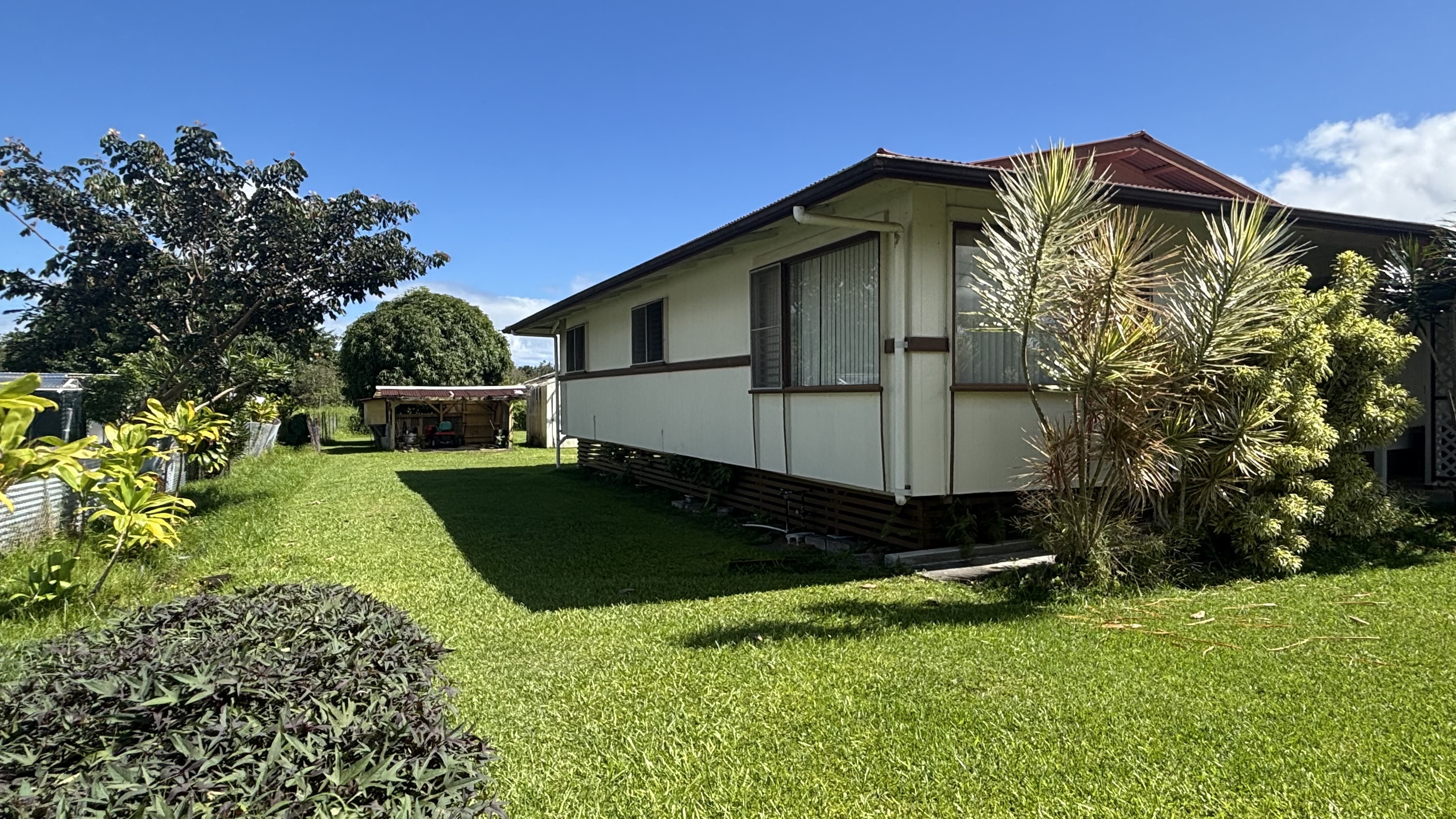 Located in Waiakea, this property offers an opportunity to own a home on a spacious 0.35-acre lot in a convenient Hilo location. The large yard provides ample room for outdoor enjoyment, gardening, or future possibilities. The home offers strong potential for a buyer ready to bring their own vision and improvements. Nearby Waiakea Uka Park has been newly renovated and offers ADA accessibility, a community center, gymnasium, pickleball courts, playground, restrooms, and sports fields. Conveniently located near schools, shopping, and the Hilo Municipal Golf Course. Property is being sold AS IS. -Gas Range -Tankless Water Heater -Utility Room with Shower & Bathroom -Large Covered Back Patio for Entertaining