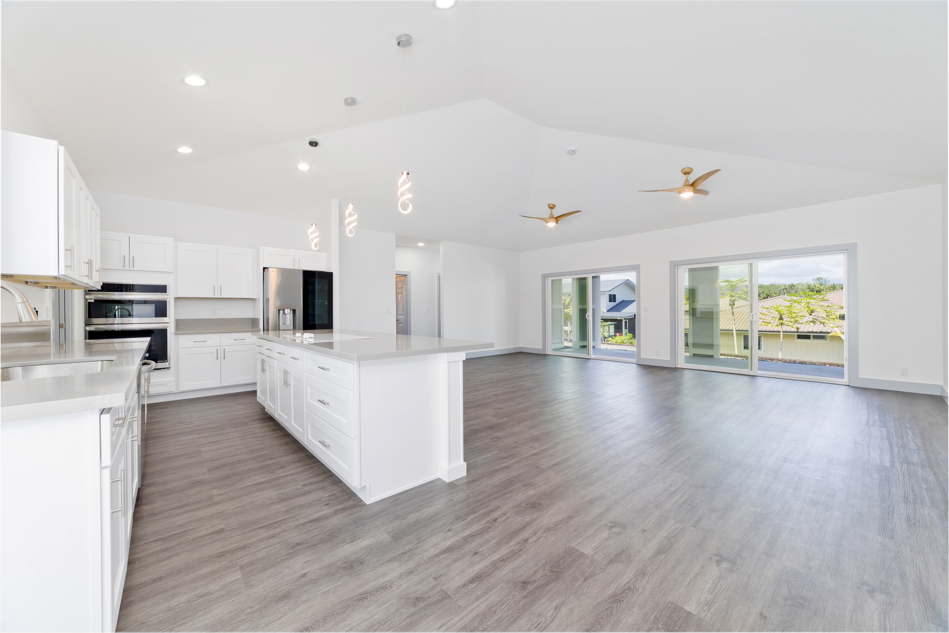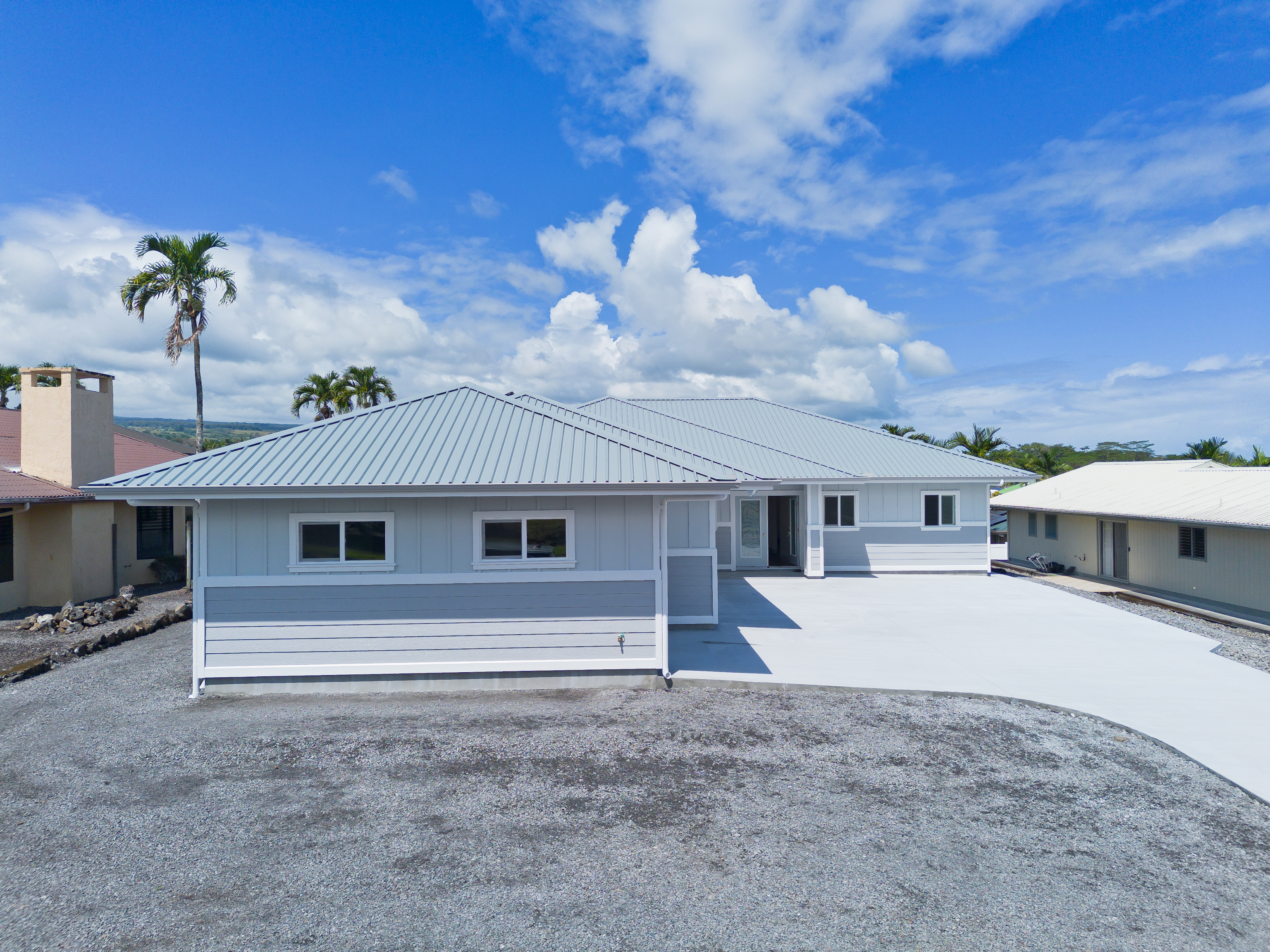 This brand-new build was crafted with care and attention to every detail. From the wood-wrapped windows and doors to the generous three-car garage with epoxy coated garage floor, quality shows throughout. The primary suite offers a spacious layout, complete with a walk-in closet and a beautifully finished bathroom. Enjoy views of Mauna Kea from your patio and the gentle breeze flowing through this home.