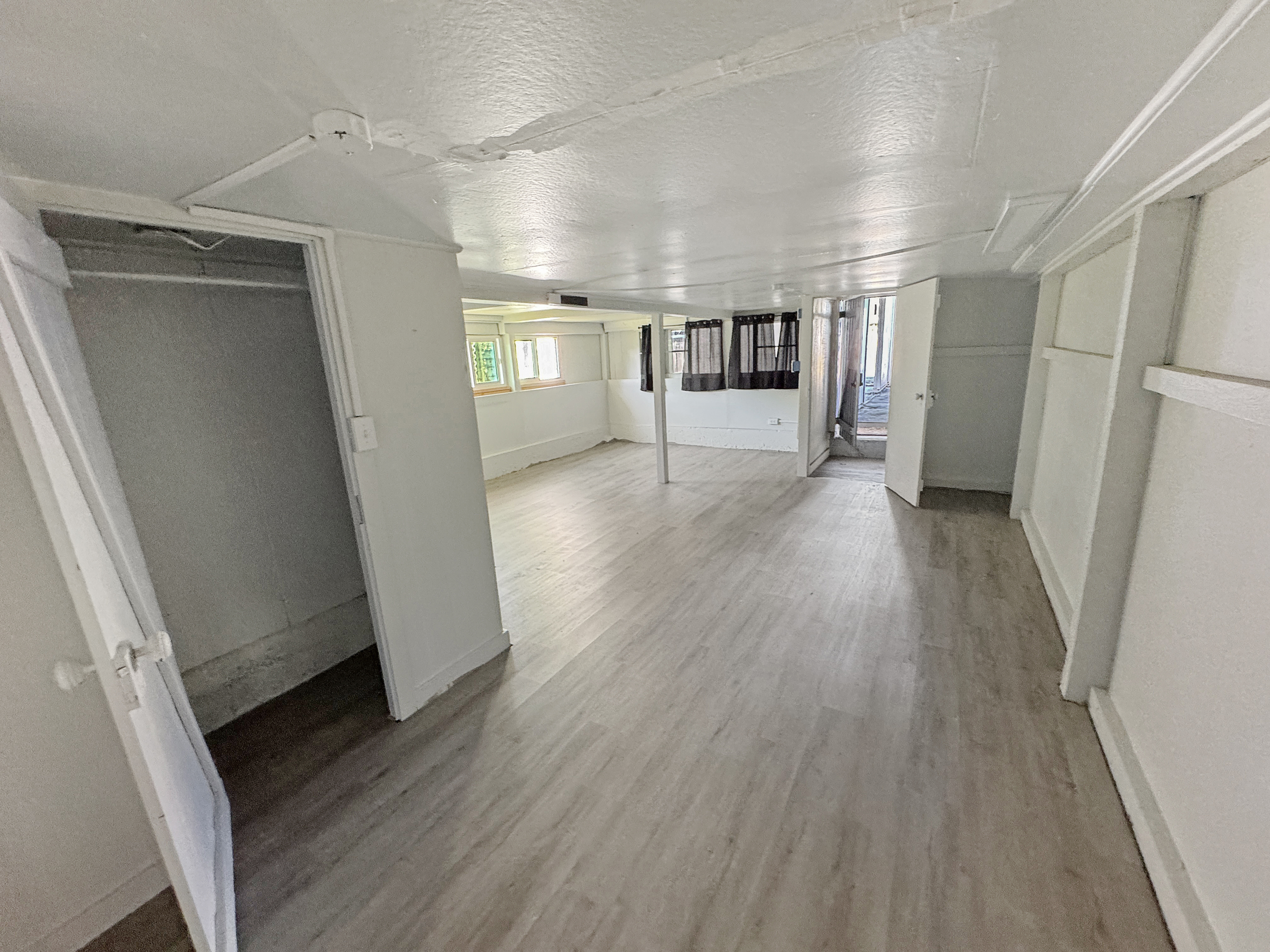 A standout feature is the vast basement, a versatile space ideal for a workshop, home office, or extended living area. The second bathroom, thoughtfully added to serve the basement, showcases modern elegance with a sleek tiled shower and contemporary fixtures, perfect for guests or multi-generational living.