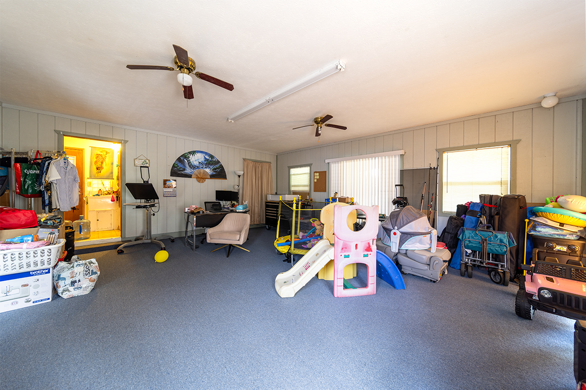 A large storage area and workshop on the property provide additional functionality and space for tools, projects, or hobbies.