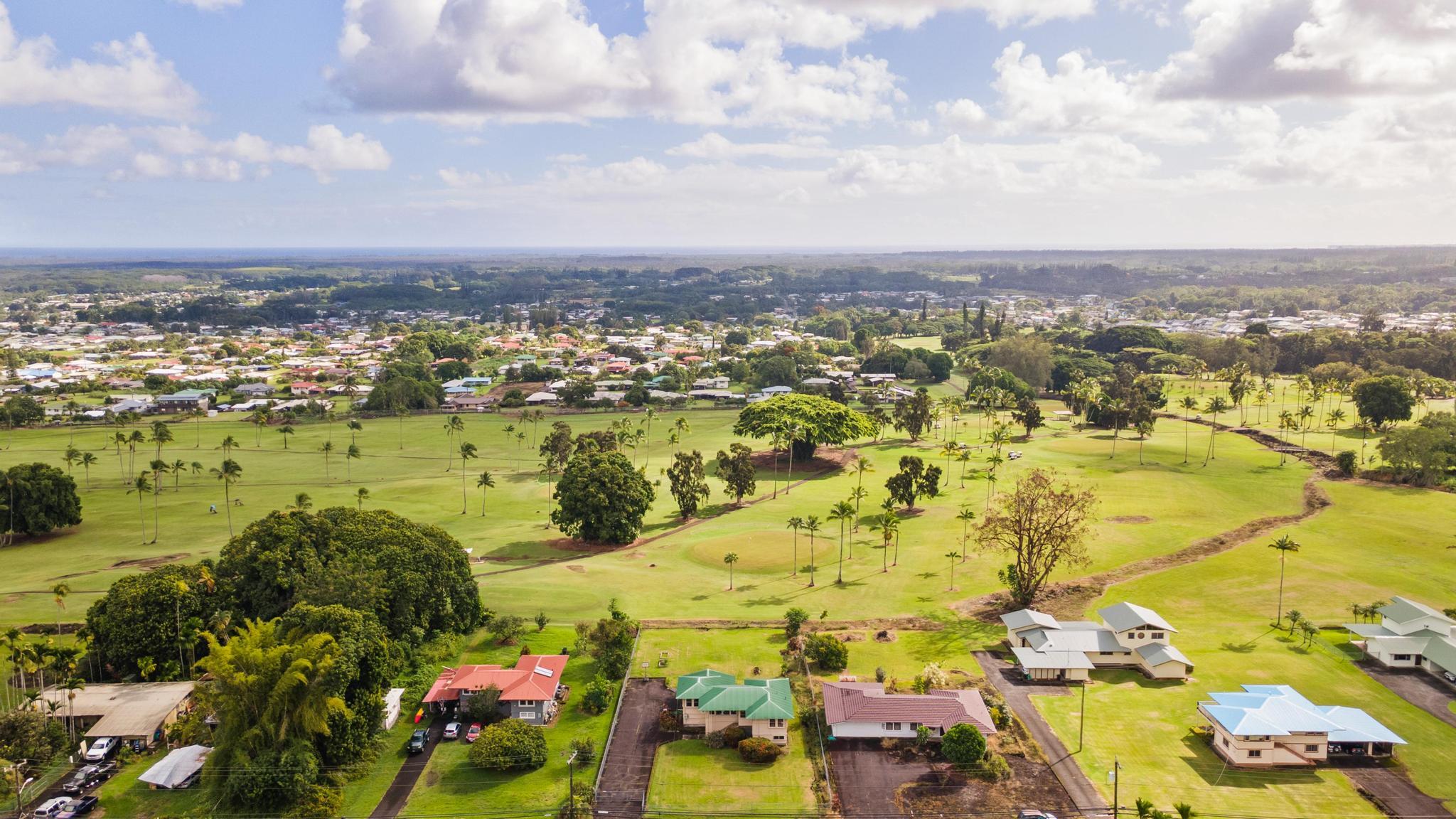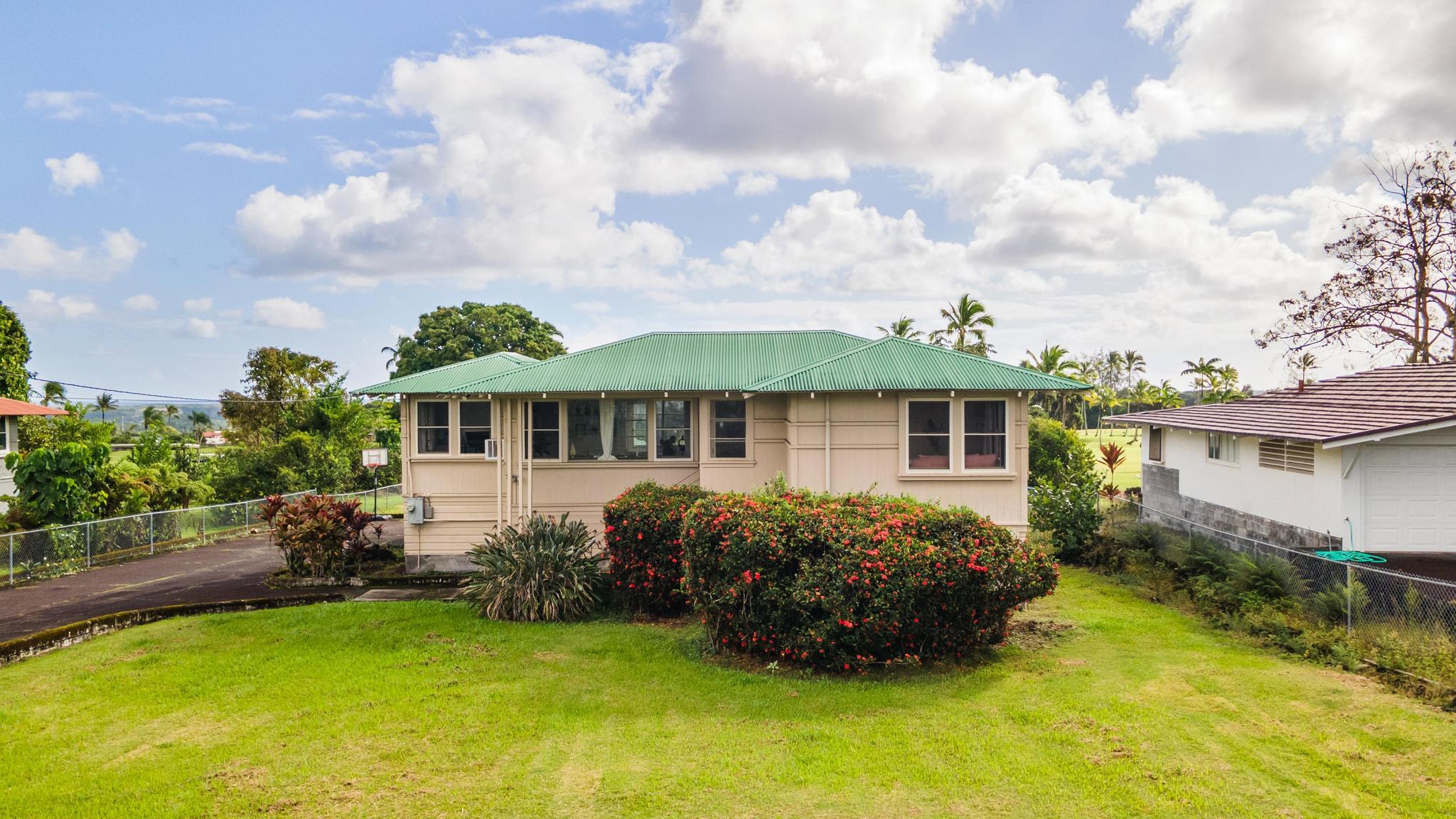 Bordering the Hilo Municipal Golf Course, the home enjoys a serene backdrop of open green space, providing a peaceful atmosphere and scenic views right from your yard. The setting feels tucked away while still being minutes from schools, shopping, and Hilo amenities.