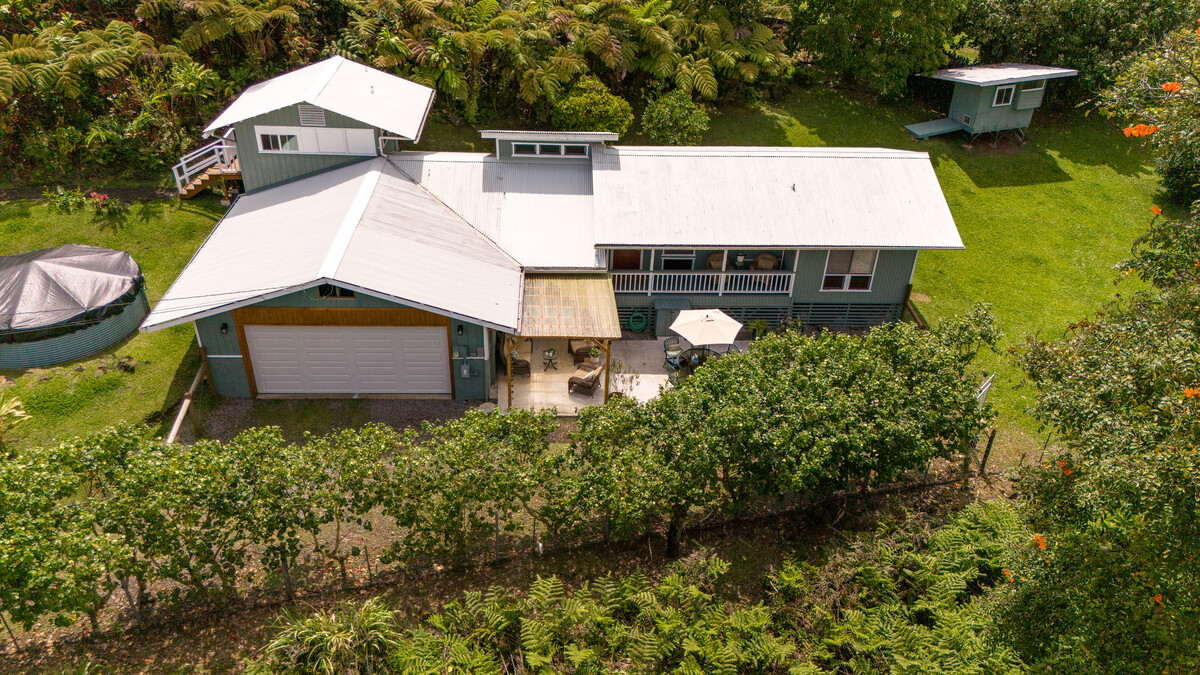 Welcome to the end of the road! With no thru traffic, this Ainalako Rd (long regarded as one of Hilo’s best kept secrets) home is nestled in a coveted corner of one of the most desirable parts of the planet. Come inside and you’ll be immediately charmed by views of the lush surroundings as experienced through a fixed wall of gridded windows (reclaimed and refinished to perfection) . The main home offers a warm, inviting space, where every corner is ready to give you a cozy welcome. The main dwelling offers two bedrooms, multiple sitting areas, and a central kitchen. Even though the home lives much larger than it is, guests will enjoy a delightful detached space with a private entrance and garden-facing lanai. It’s a perfect creative hideaway. Imagine sipping tea on the shaded pergola, surrounded by the sweet scent of blooming flowers, where time slows down and worries melt away. The property is a veritable garden of delight, with an abundance of fruit trees: lemons, oranges, mango, apple banana, papaya, and more, all growing alongside colorful flowers that bloom in symphony all year long. The fenced yard offers both privacy and piggy peace of mind, while the detached carport and enclosed garage provide ample space for your vehicles, storage, or hobbies. Whether you're gardening, relaxing, or hosting friends under the stars, this property is a charming blend of comfort and privacy, offering a little something for everyone. So, if downsizing is in your future, or you are looking for an affordable place to get started in town, take a look and see what decades of love and recent upgrades has to offer!