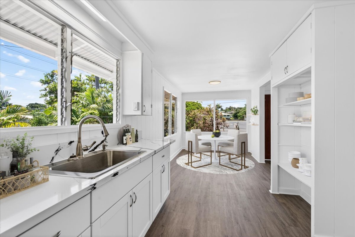 Rare opportunity in Hilo, ideally located off Puainako Street near the University of Hawai?i at Hilo–well-suited for multi-living spaces or added flexibility. Properties offering two separate dwellings are limited in today’s Hilo market, making this a compelling option for those seeking space and versatility. The unfinished basement, already fully wired, offers the potential to create additional living space. The main residence has been extensively remodeled with a complete interior overhaul. Upstairs features 3 bedrooms and 1 bathroom, along with a bright, refreshed living area. Improvements include new electrical throughout, a brand new roof, updated flooring, upgraded support beams, new kitchen countertops and cabinetry, and fresh interior and exterior paint. The lower level includes an unfinished basement configured as a studio space, offering flexible use options. The property provides ample parking with a 2-car carport, a separate 1-car carport, and a large, approximately 300 sq ft storage structure. Main House virtually Staged In addition, a spacious detached cottage–separately metered–features 3 bedrooms and 2 bathrooms with over 1,700 sq ft of living area and a covered lanai. The cottage is currently tenant-occupied at $2,500 per month. Detached cottages of this size are not commonly available in Hilo. Conveniently located just minutes from shopping, dining, and everyday conveniences. This property combines extensive upgrades, multiple dwellings, and a desirable location.