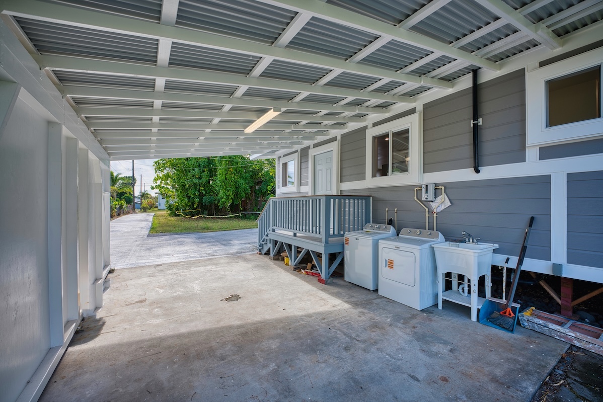 Newly installed concrete driveway and carport area make the house more accessible and more handsome.