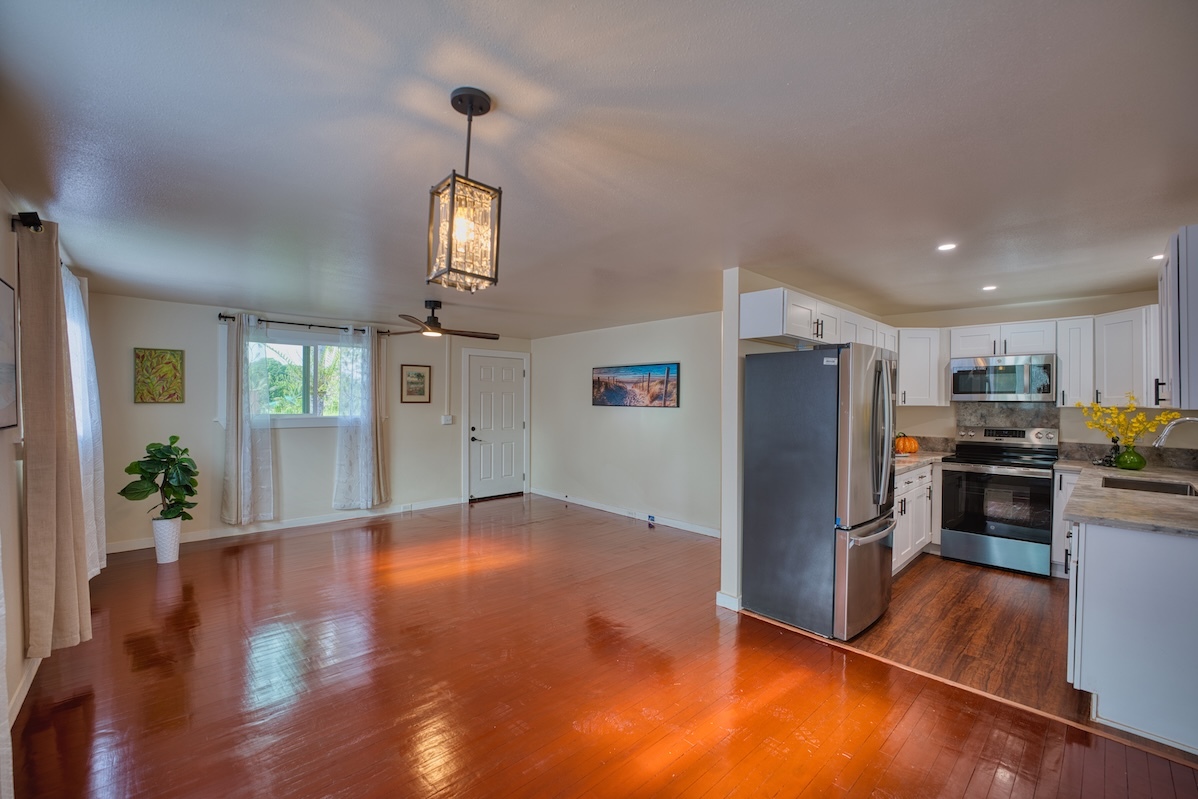 Tucked await on a quiet flag lot in the heart of downtown Hilo, this 3 bedroom and 1 bath charming home blends the character of its older roots with the freshness of thoughtful renovations. Recently updated, it offers a cozy and welcoming atmosphere, with modern touches that make everyday living easy while still keeping its original charm. New electic, plumbing, doors and sewer hook up, and a new waterline from the meter. It is like a brand new home. Bright natural light, breezy flow, and sweet details throughout create a space that feels both comfortable and up-lifting. With its private setting just minutes from Hilo's shops, markets and waterfront, this home is a little hidden gem: cute, sweet, and ready to enjoy.