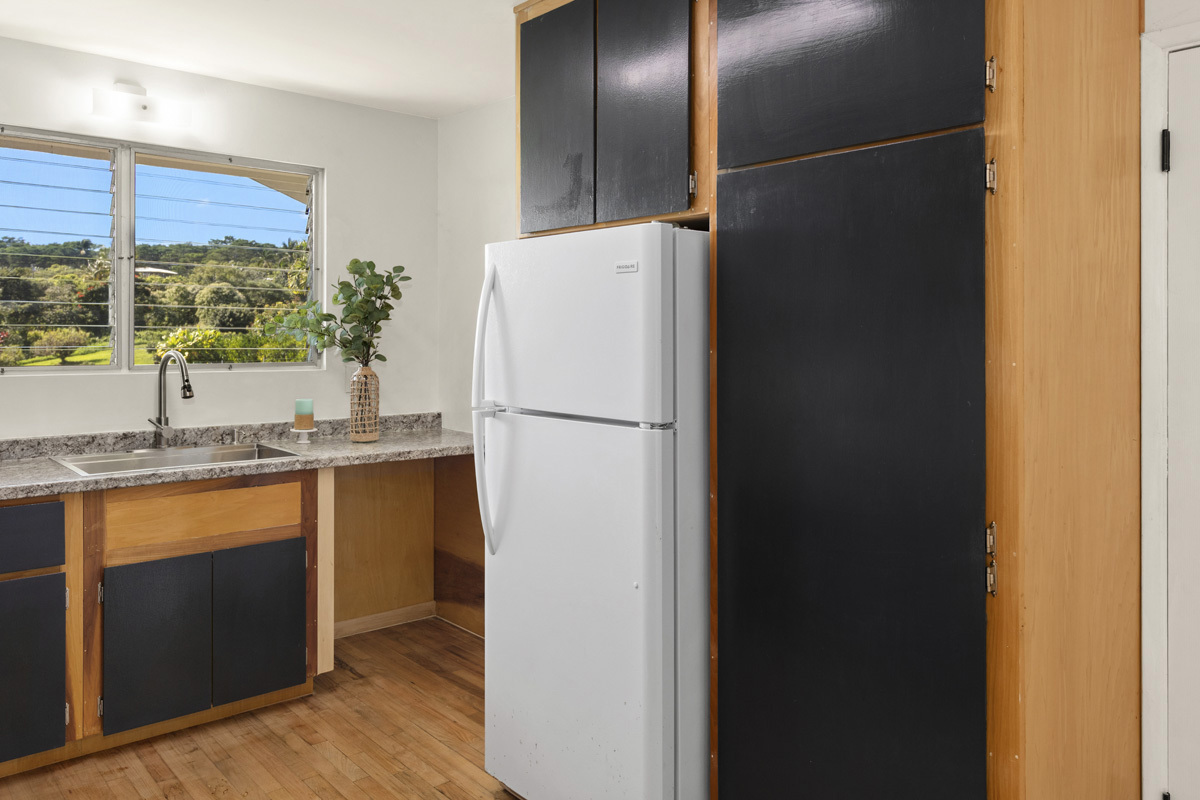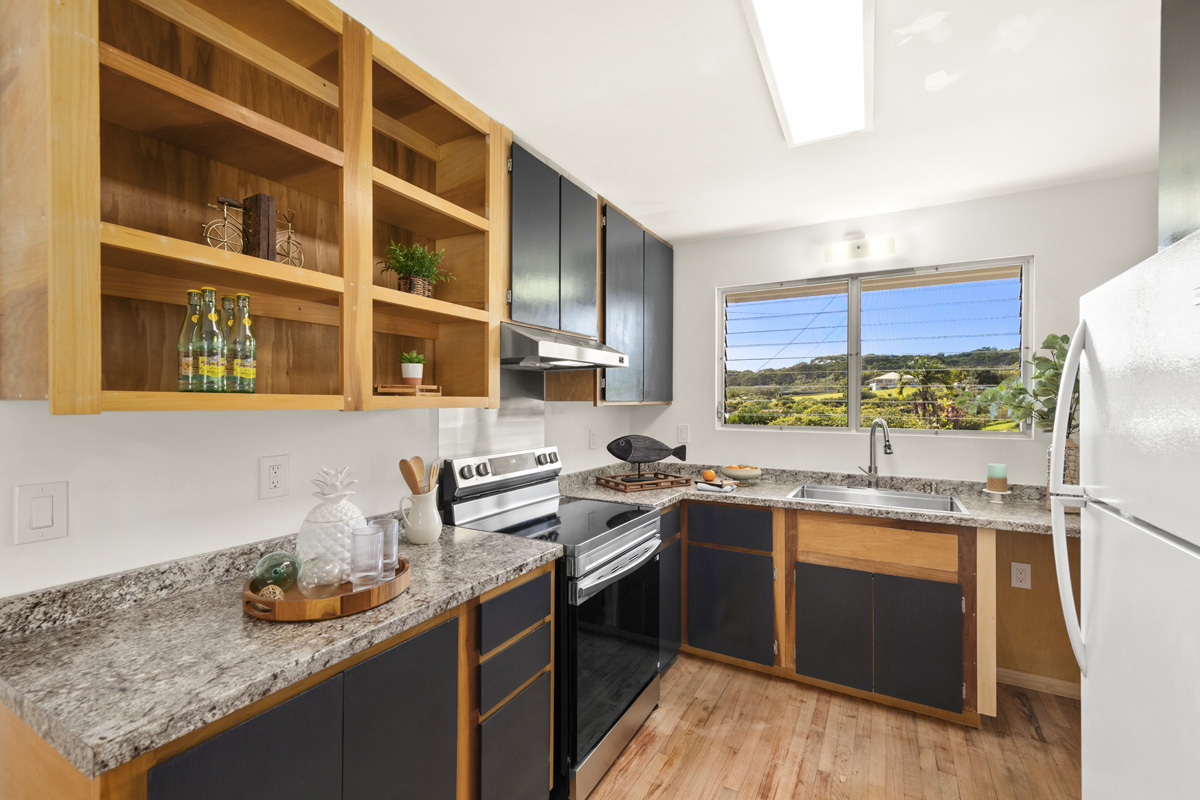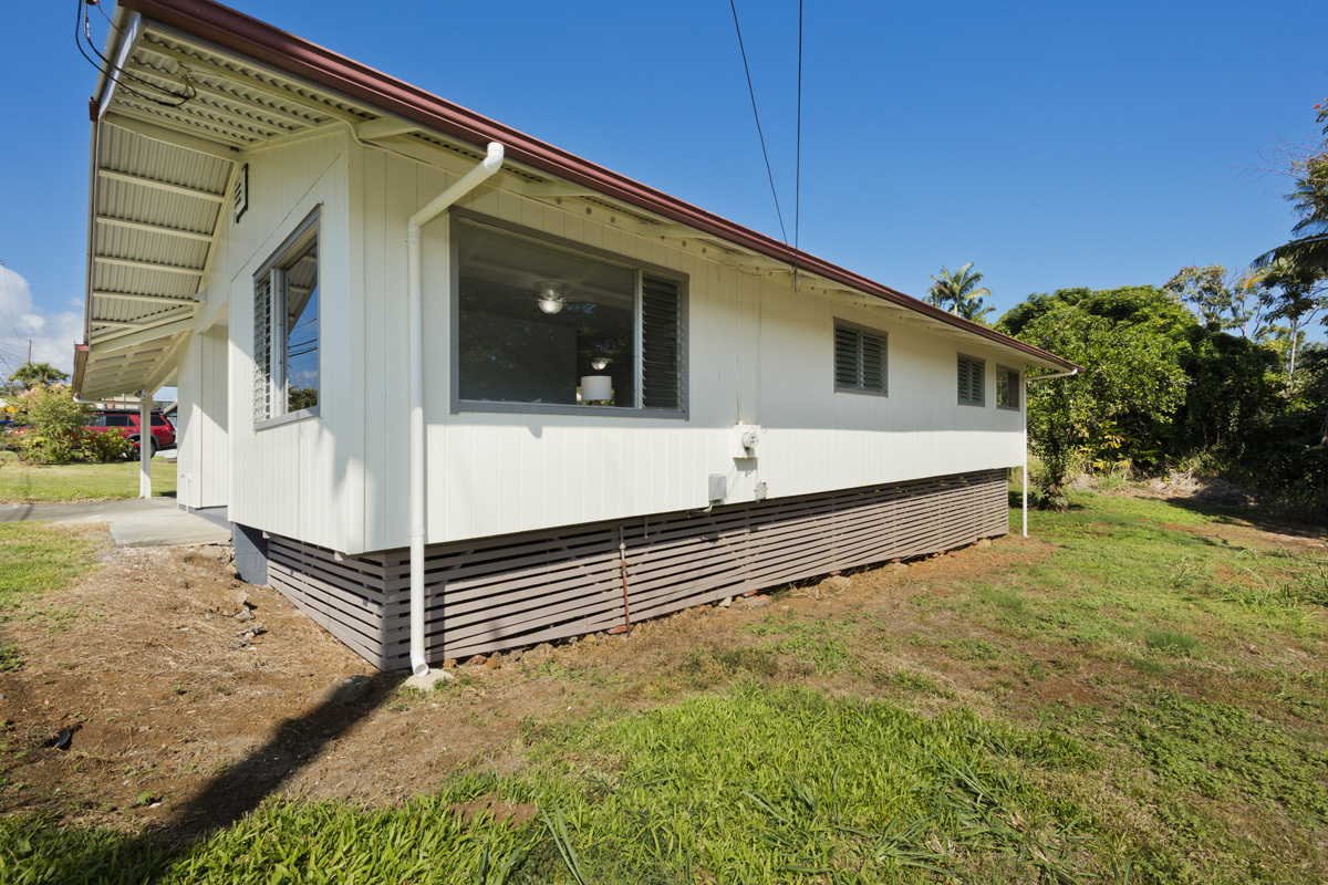 A sweet 3BR 1.5BA home on lower Kaiwiki Road in Hilo! Step into this bright home with refinished hardwood floors and an exhaust fan system for steady cooling all day. The kitchen boasts newly-installed wood cabinets, new stainless steel range/oven and hood, and laminate counter tops with a large stainless steel sink. Bathroom renovations include tiled walk-in shower, new toilets, vanity, and fixtures. The utility room updated with new water heater, tiled walk-in shower, new utility sink, and washer/dryer hookups for your convenience. The exterior has been well-maintained and painted throughout the years as well — an ideal opportunity to reside in the Haaheo Elementary School district! - Interior Living Area — 1,108 SF - Utility Room and Storage — 120 SF - Carport — 400 SF The land area is approximately 9,432 SF with a spacious yard offering room for gardening and outdoor activities. With recent refresh completed for you, this charming home is truly move-in ready!